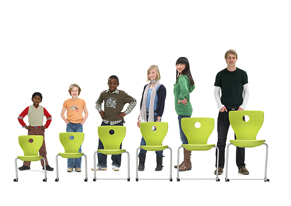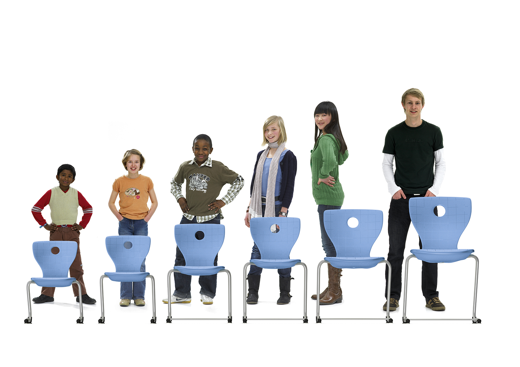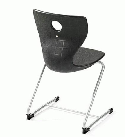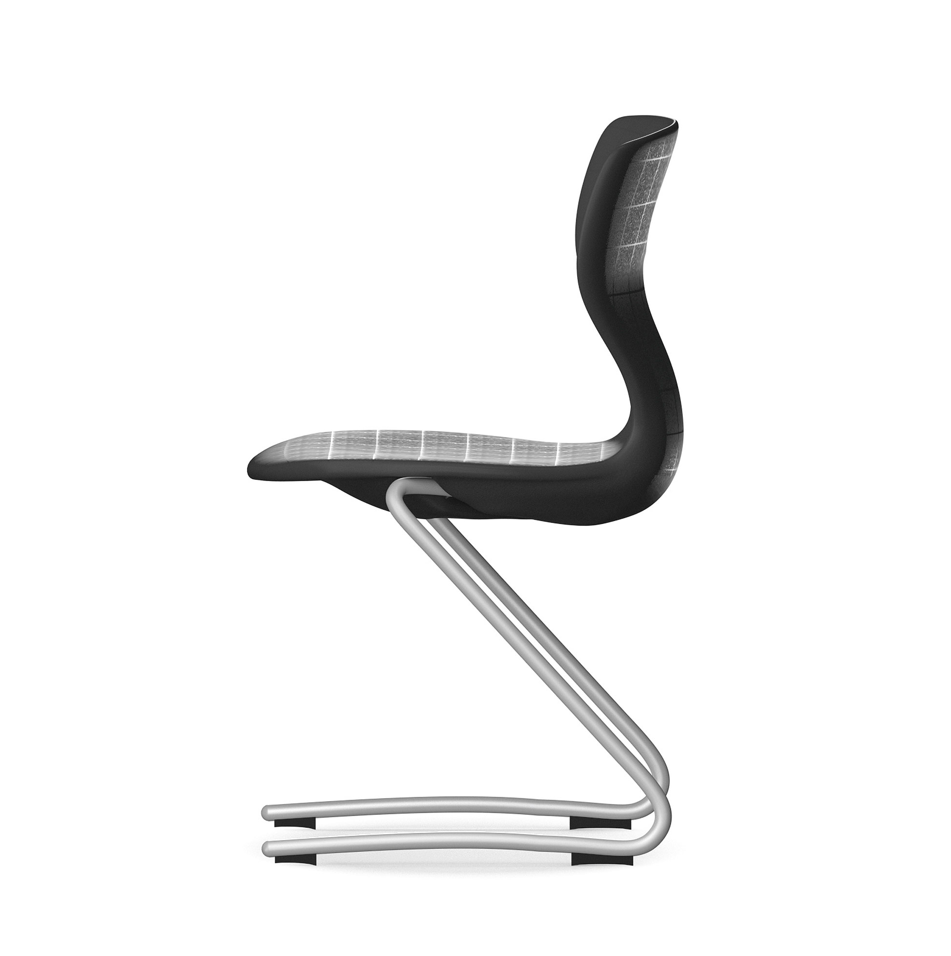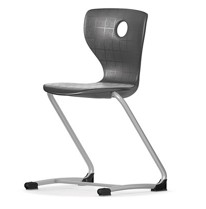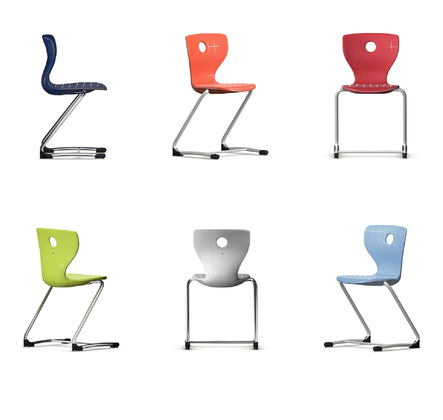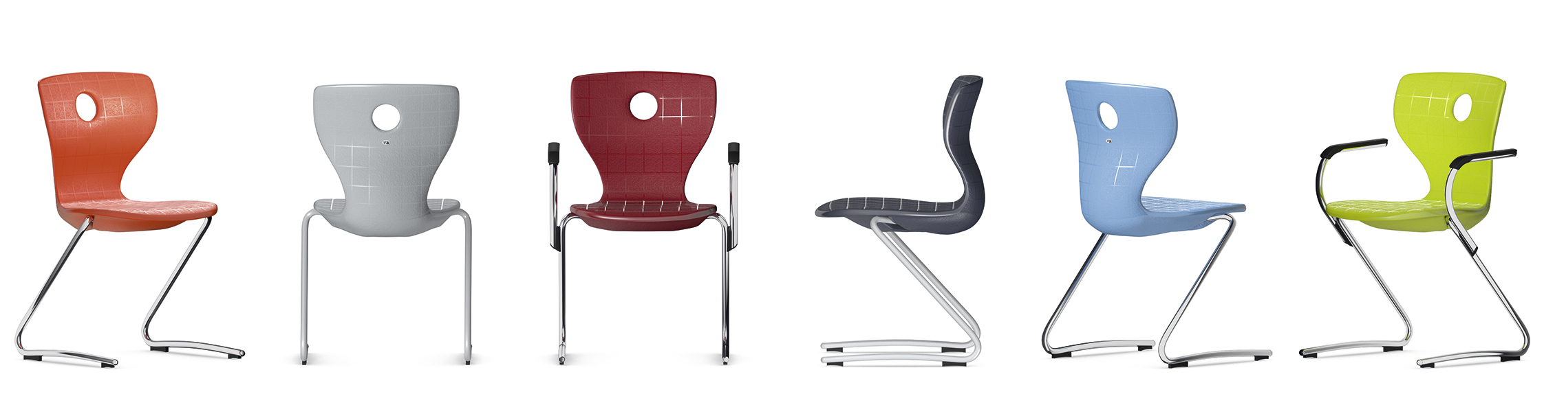 Swivel chair that springs forward. Frame made of bent, powder-coated or chrome-plated round steel tube. In sizes 4-7 with extra stable crossbar between the skids.