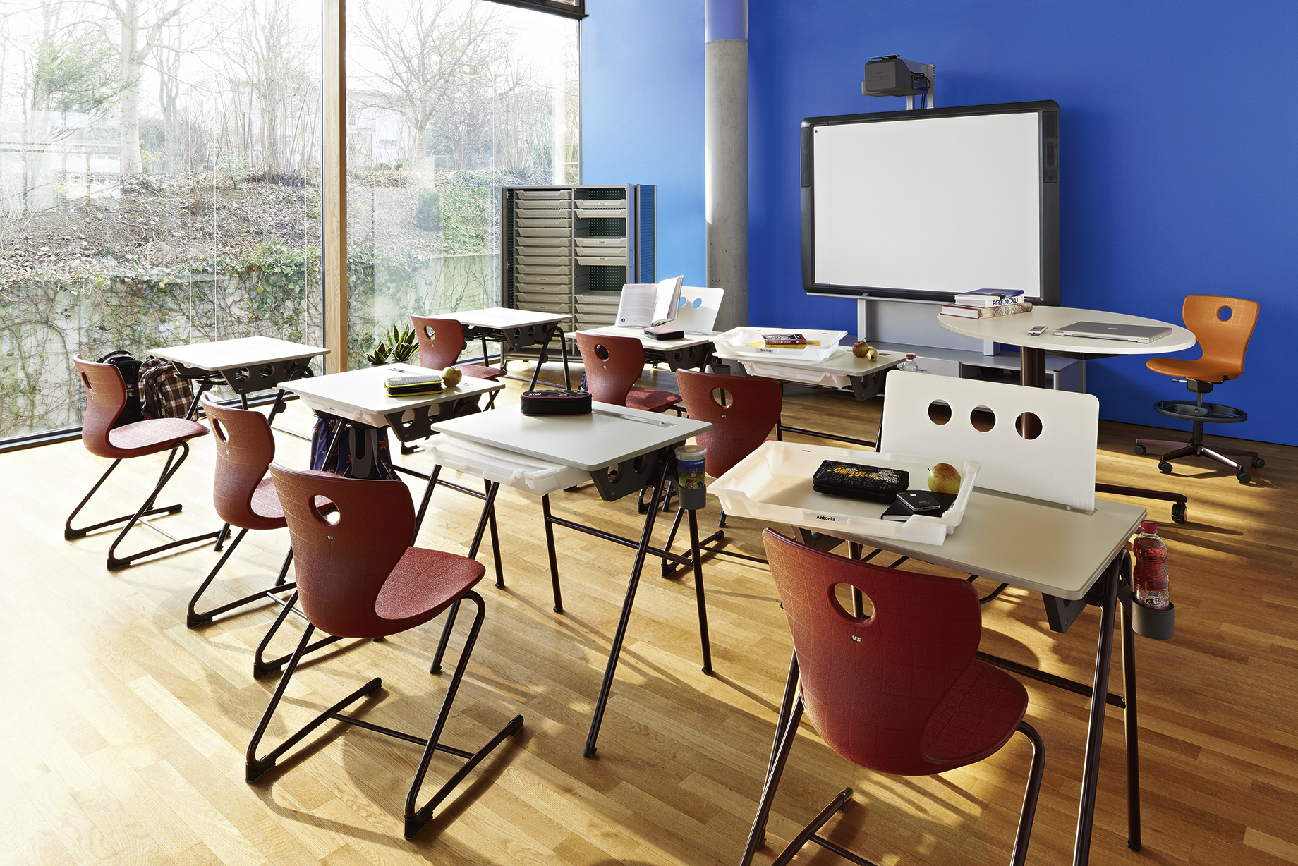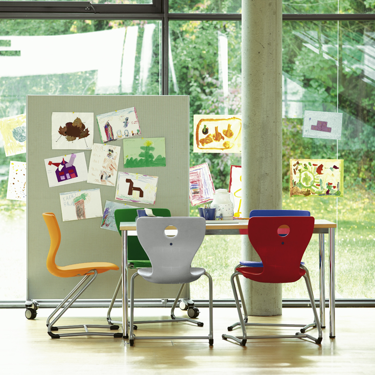 Equipment and options: Glides for hard or soft floors or 2K universal glides. Optionally with table edge protection for stacking on the table top.