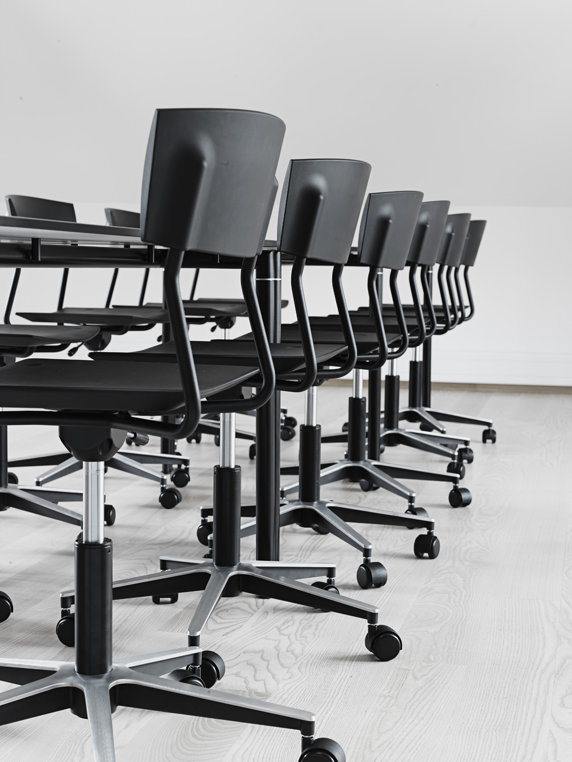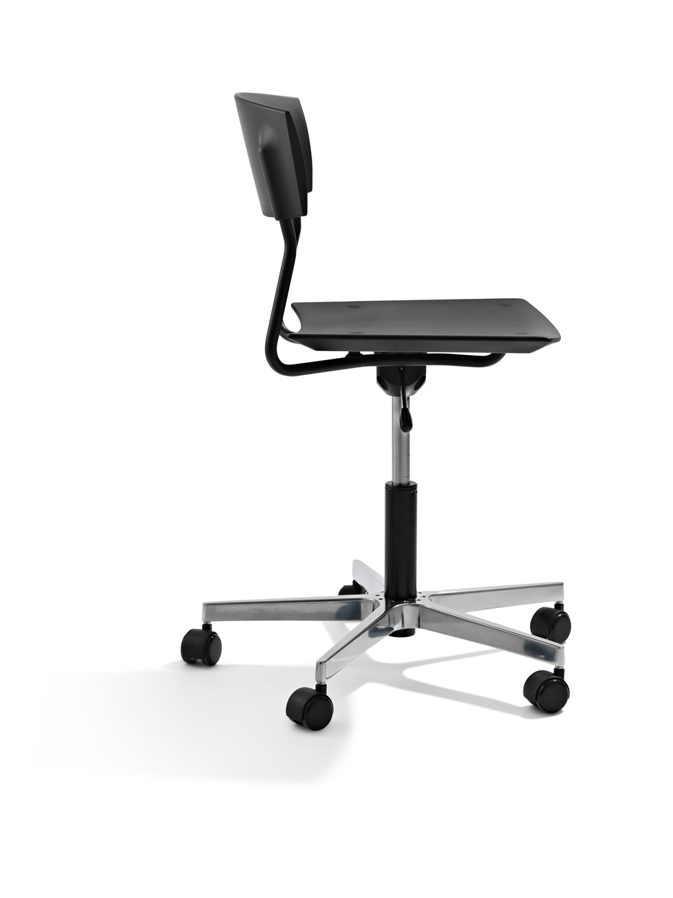 Pure X: Understellet er produsert i polert aluminium fotkryss, og med sort lakkert ryggbøyle. Stoloppheng for plassering under bord leveres som tilleggsutstyr, det samme gjelder vipp, ekstra høy gass-sylinder, hjul med bremse og glidere.
