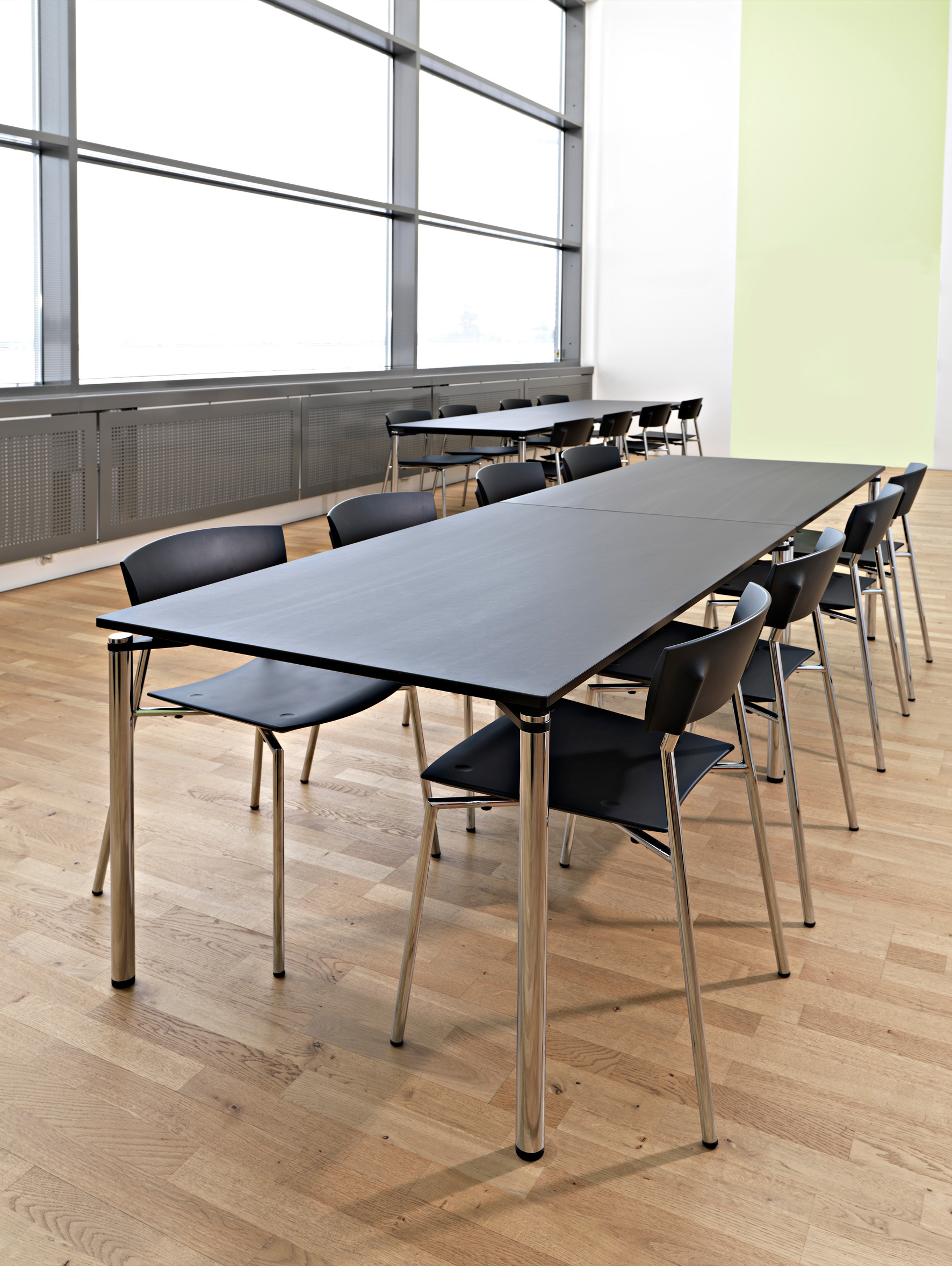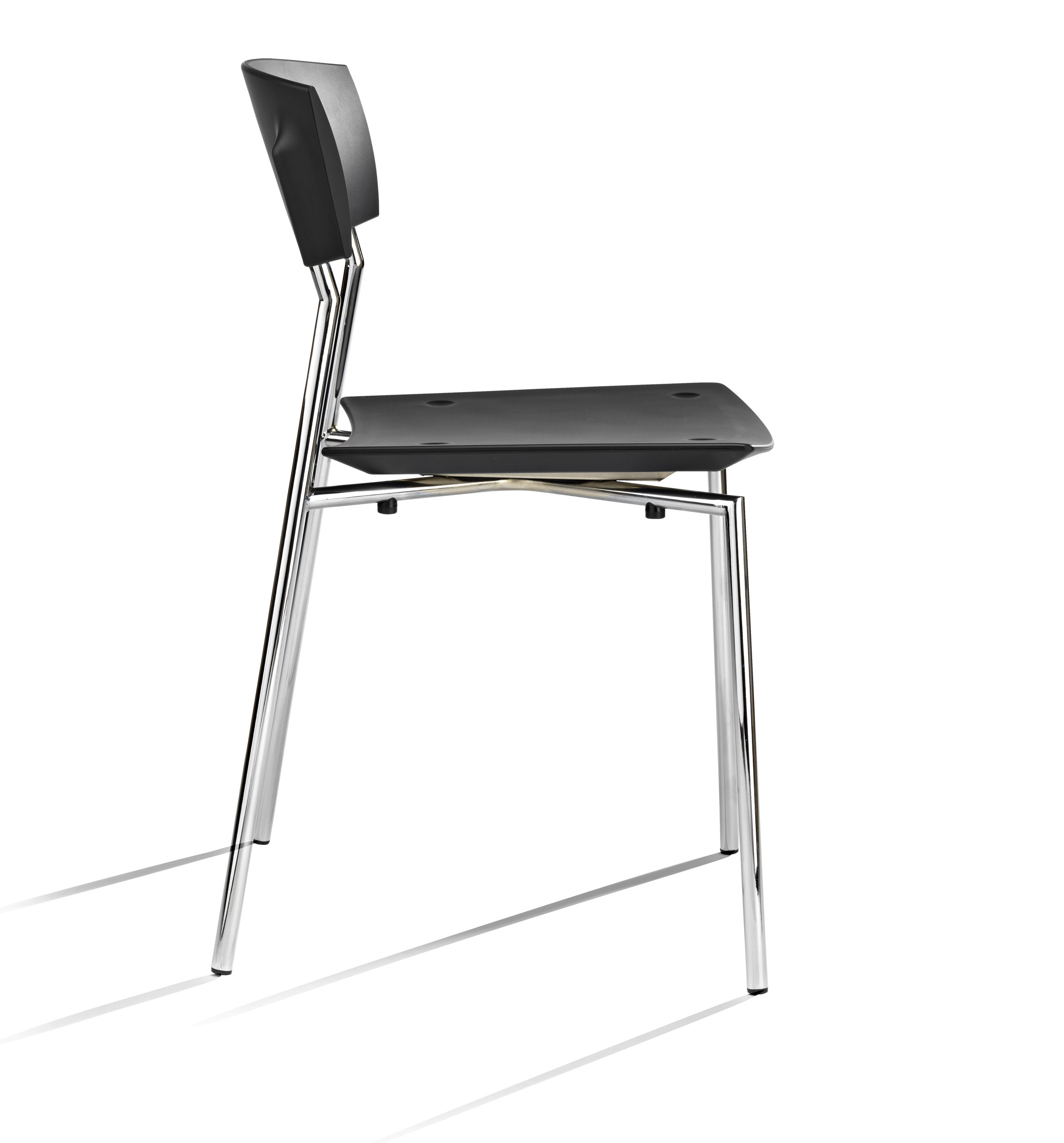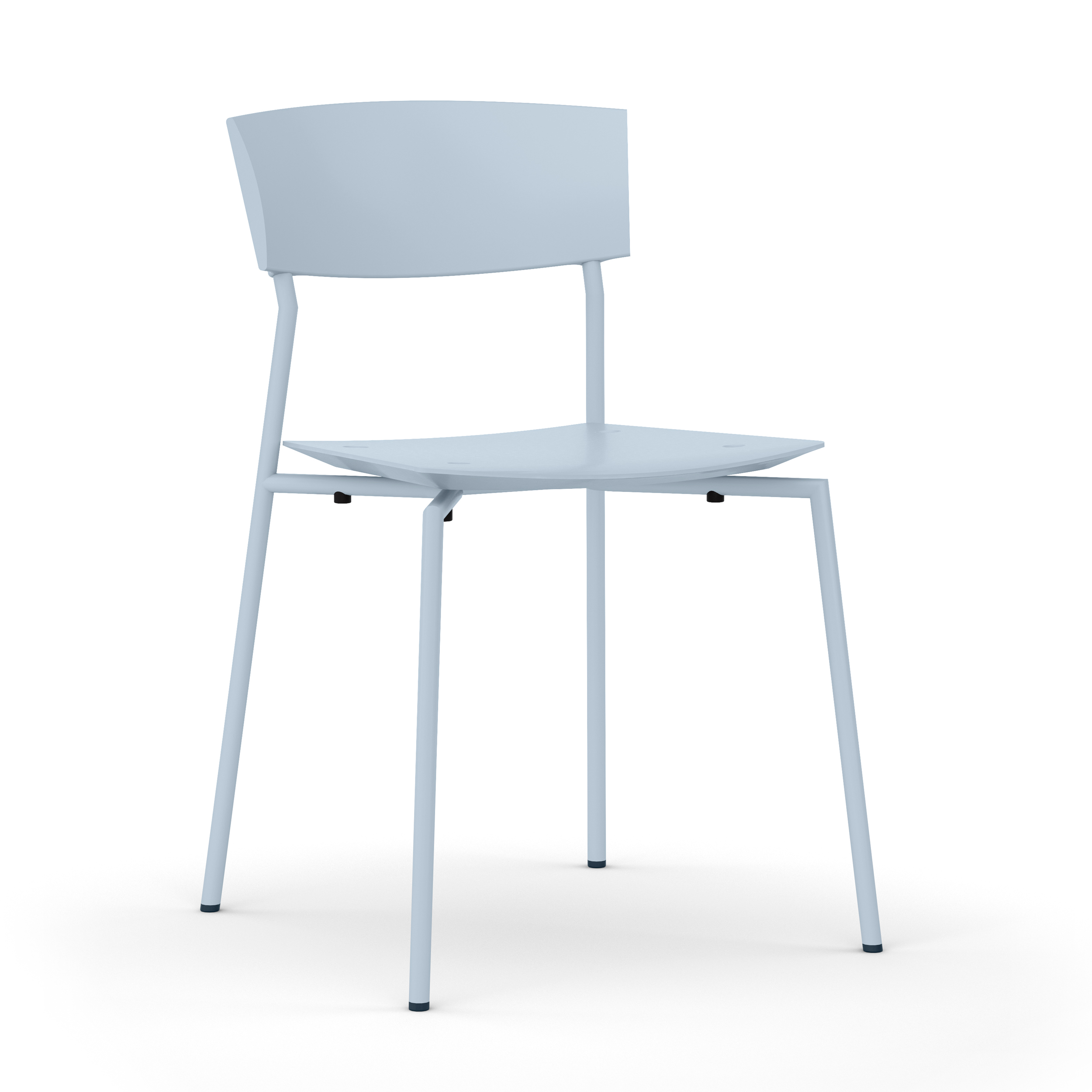 Pure: Understellet består av helsveist rør i 19mm, og fås lakkert i matchende farger som skallet samt i krom og satin. Stoloppheng for plassering under bord leveres som tilleggsutstyr. PURE stolen stabler 8 stk på gulv, 10 stk i vogn, som er tilbehør. PURE stolen kan leveres med filt knotter som tillegg
