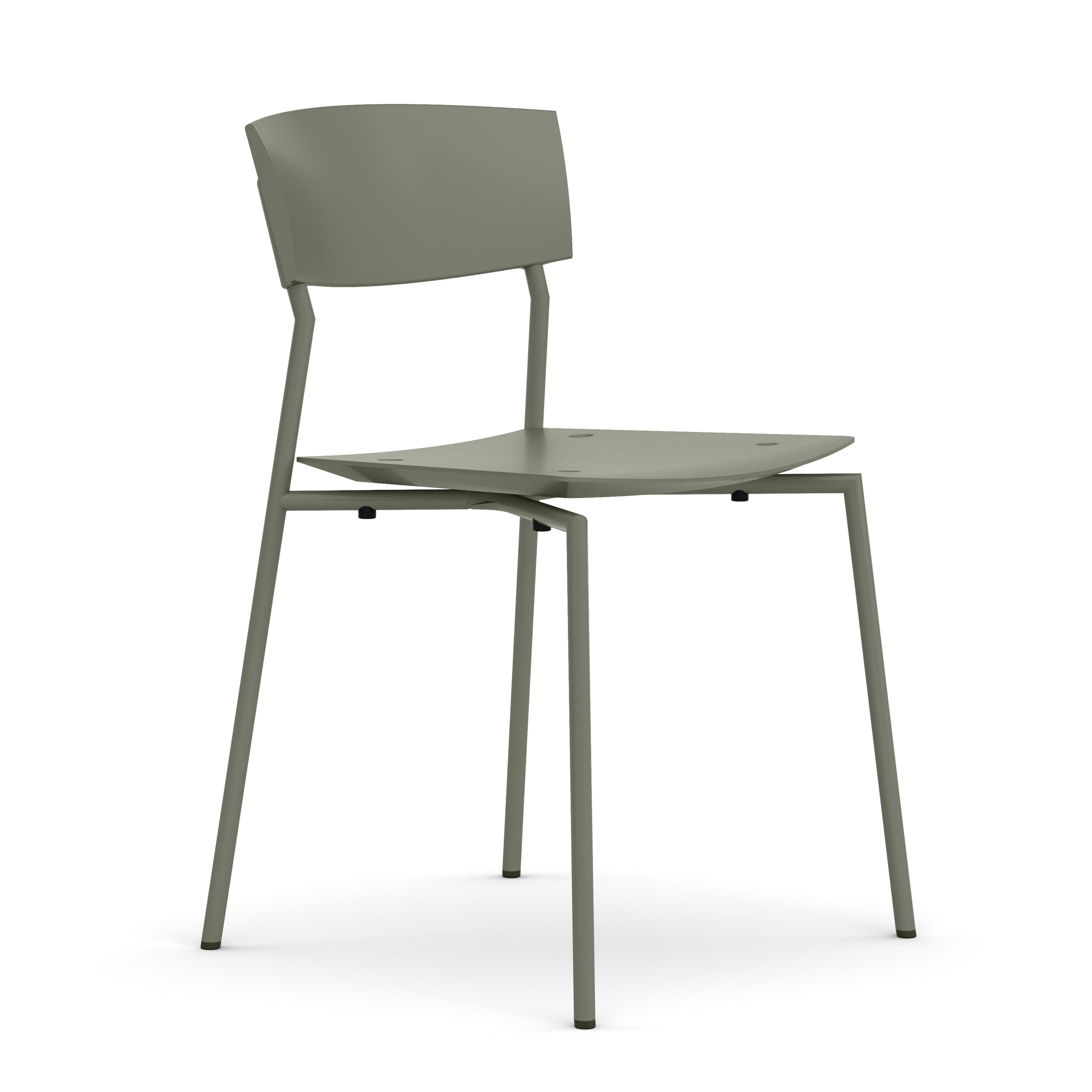Pure: Understellet består av helsveist rør i 19mm, og fås lakkert i matchende farger som skallet samt i krom og satin. Stoloppheng for plassering under bord leveres som tilleggsutstyr. PURE stolen stabler 8 stk på gulv, 10 stk i vogn, som er tilbehør. PURE stolen kan leveres med filt knotter som tillegg
