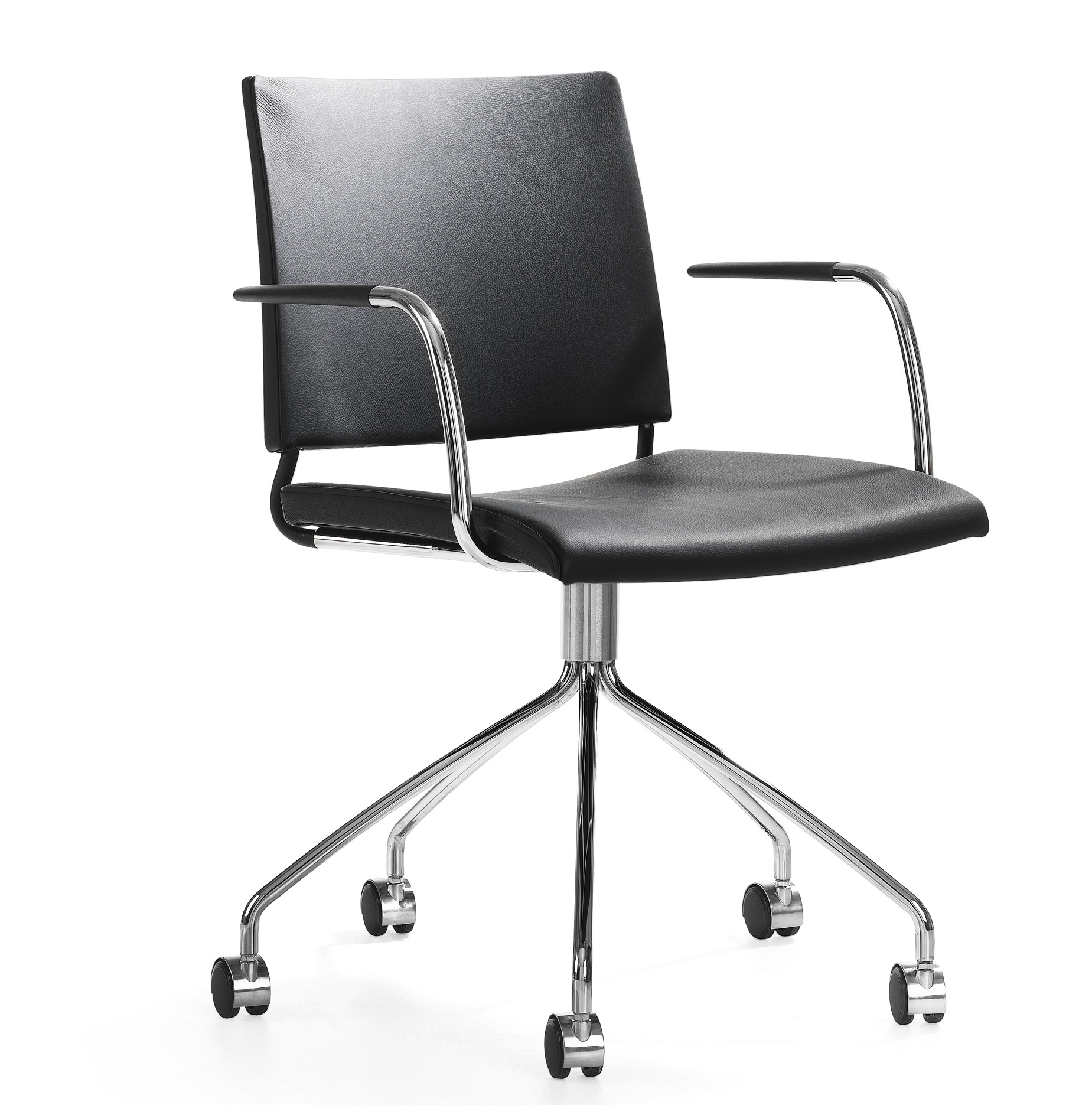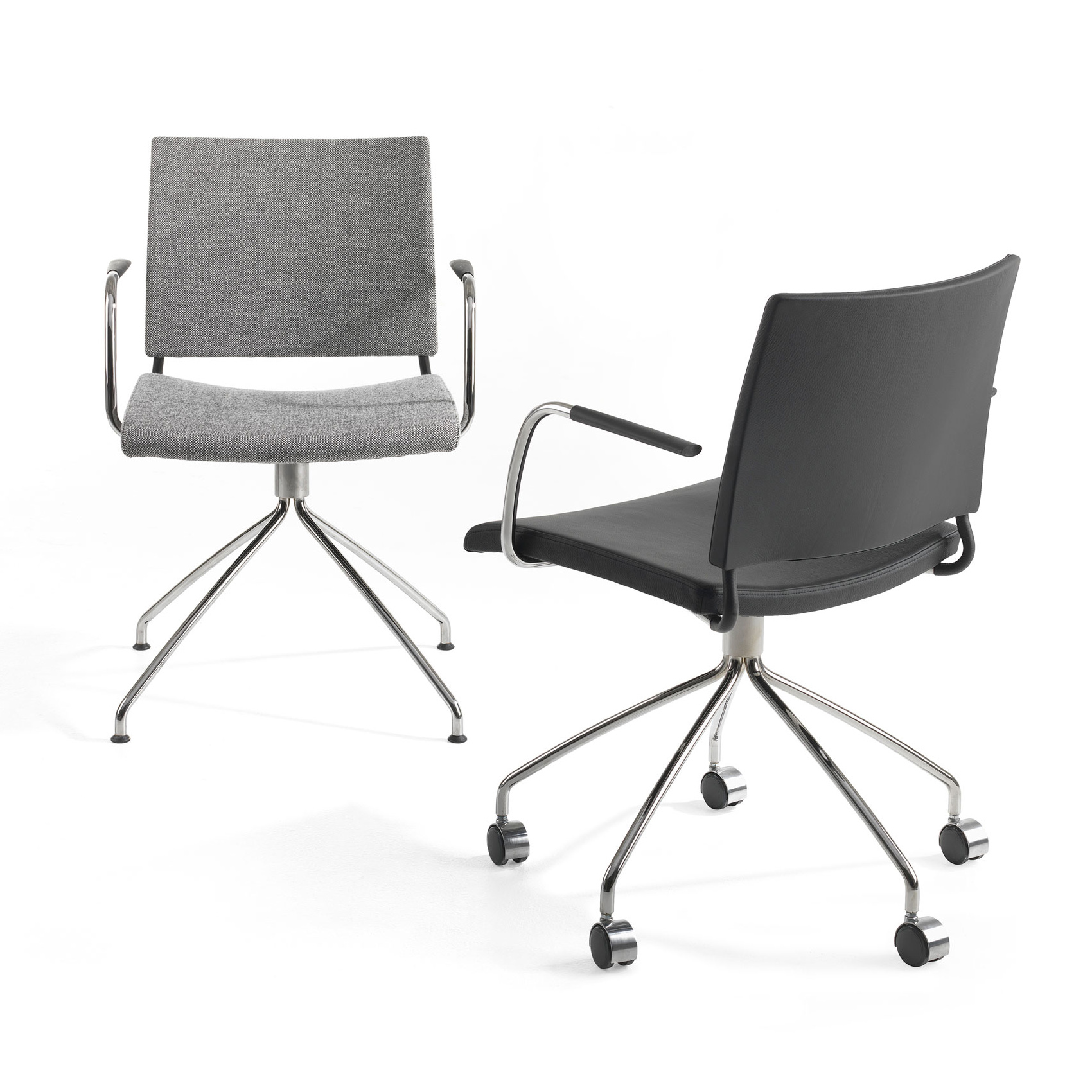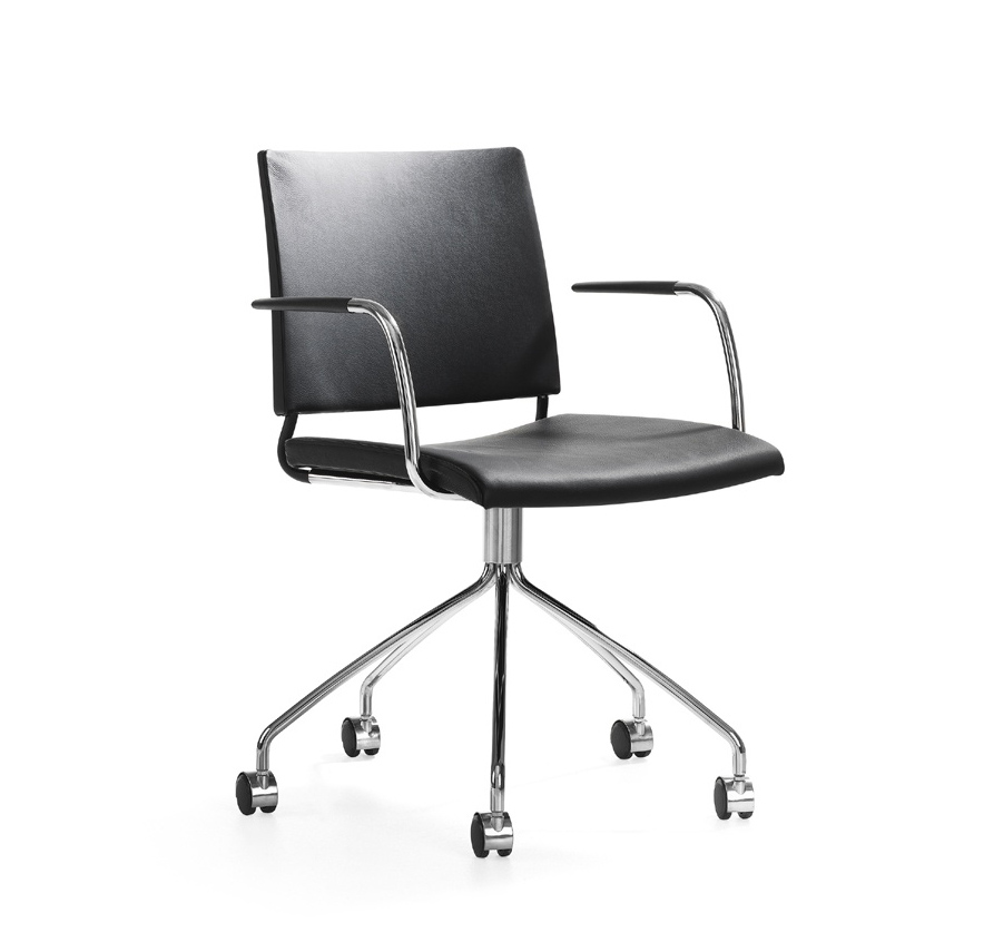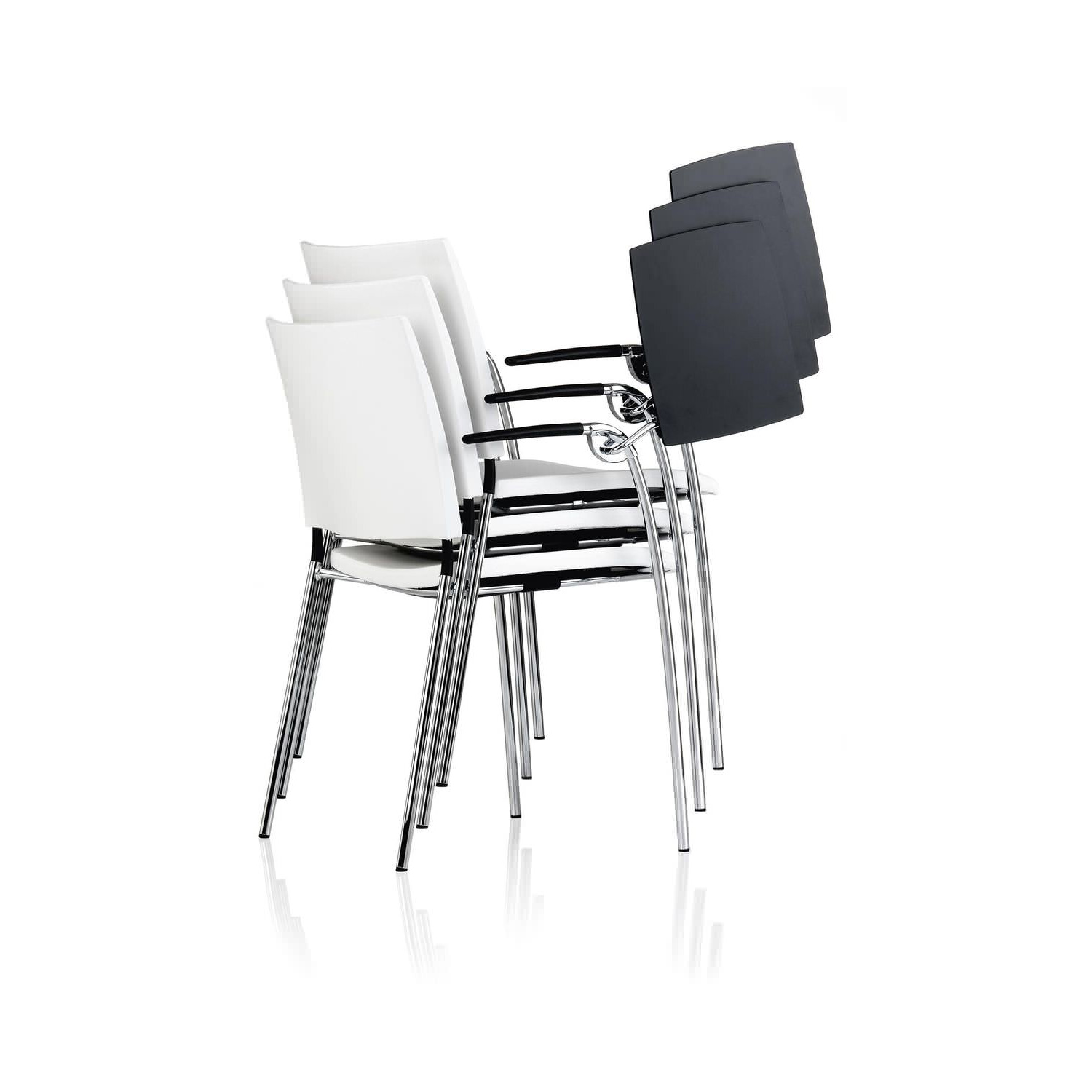 På kledd modell har stolen stabelbeskytter. Opsjon med koblingsbeslag og skrive-/laptopskive for feste på høyre eller venstre side. Stolen leveres med 4 ben med eller uten lener, 4-fot kryss m/glidefot og armlener og 5-fot kryss med hjul og armlener.