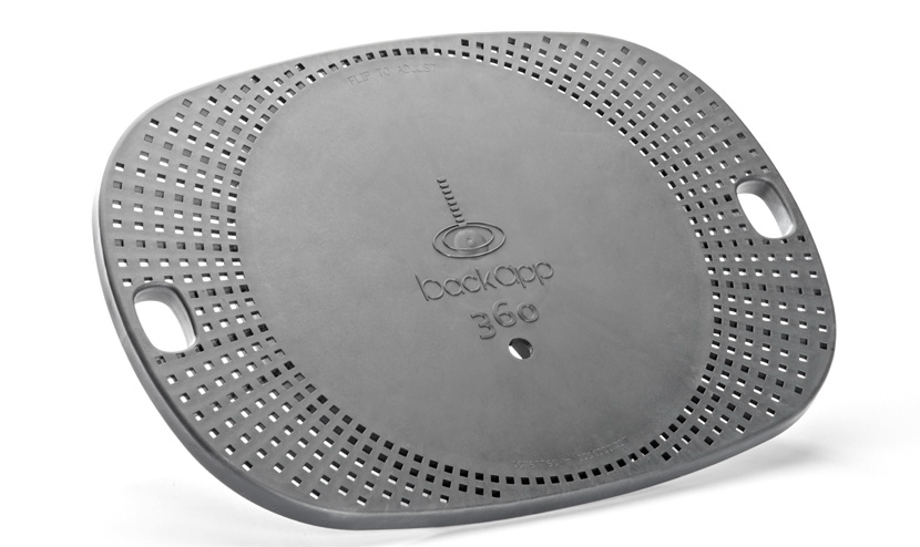 På Back App 360 står du og balanserer behagelig i alle retninger. Dette gir utfordring til muskler og ledd spesielt i ankel, legg, kne og hofte og gir treningseffekt hele veien opp til rygg og nakke. Back App 360 stimulerer blodsirkulasjonen i bena, spesielt i leggene. Back App 360 forebygger skader i ankler, knær og hofter. Ved å skru den røde knotten opp eller ned kan du enkelt justere nivået på vippebevegelsen. Den myke ringformede dempeanordningen gjør vippebevegelsen behagelig for alle brukere.