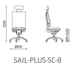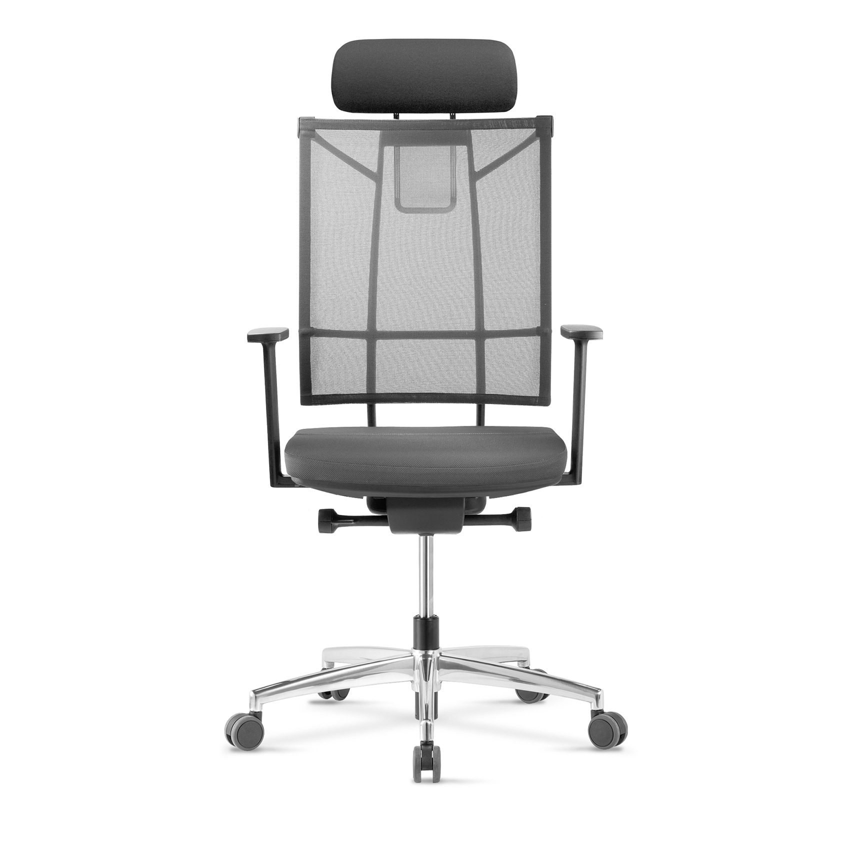 Sail kontorstol har høy rygg i mesh, hodehviler og armlener. hodehviler og armlener. Sail fås også med helpolstret rygg, Sail Plus.