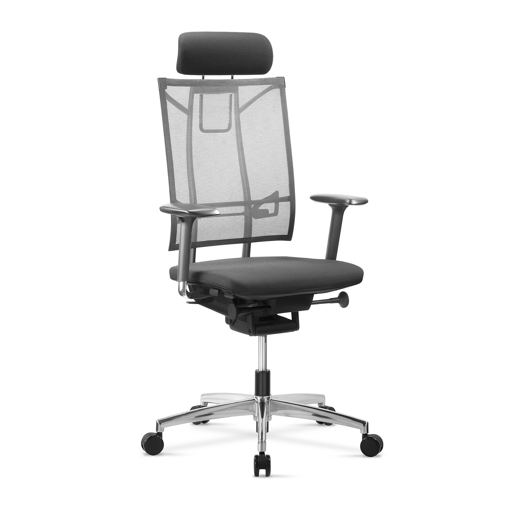 Sail kontorstol har høy rygg i mesh, hodehviler og armlener. hodehviler og armlener. Sail fås også med helpolstret rygg, Sail Plus.