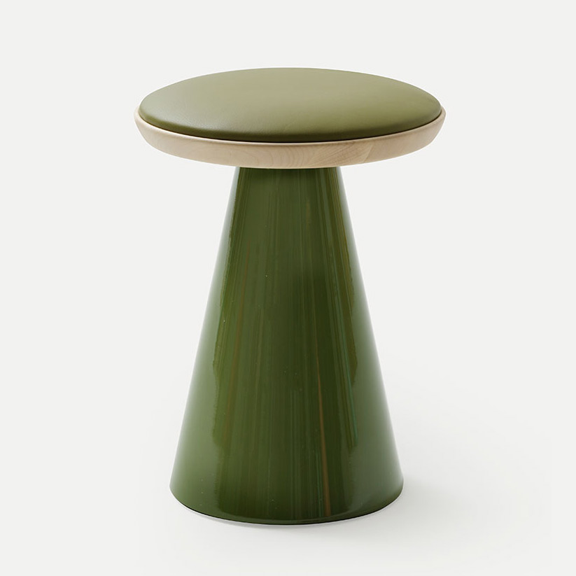 Pion Stool har en base som fås i følgende farger: Ice, Tobacco, Mustard, Olive, Peach, Sky-Blue, Shadow eller quarzite. Setet i skinn følger basens farge.