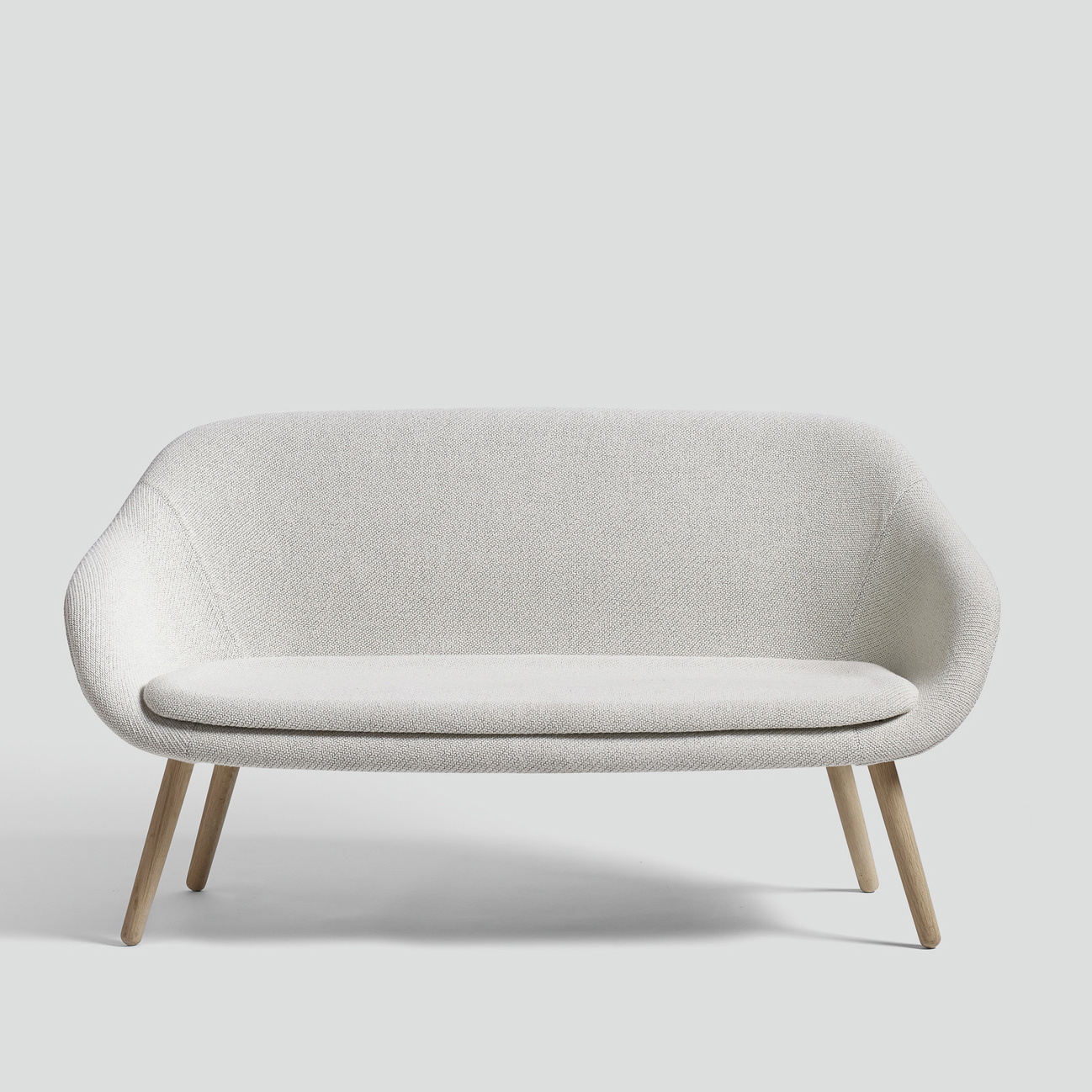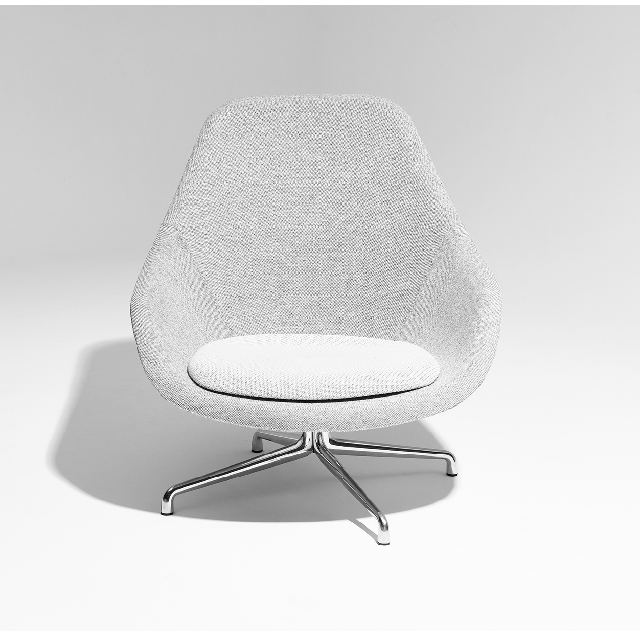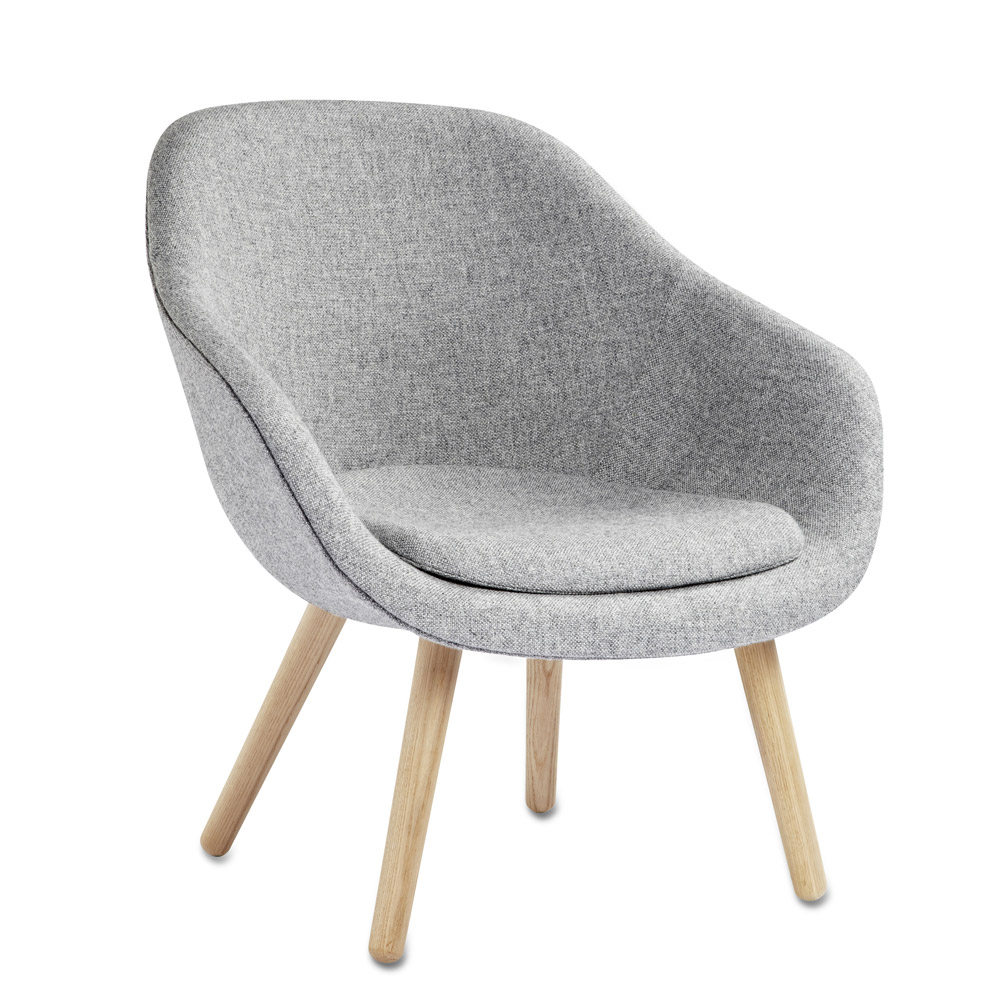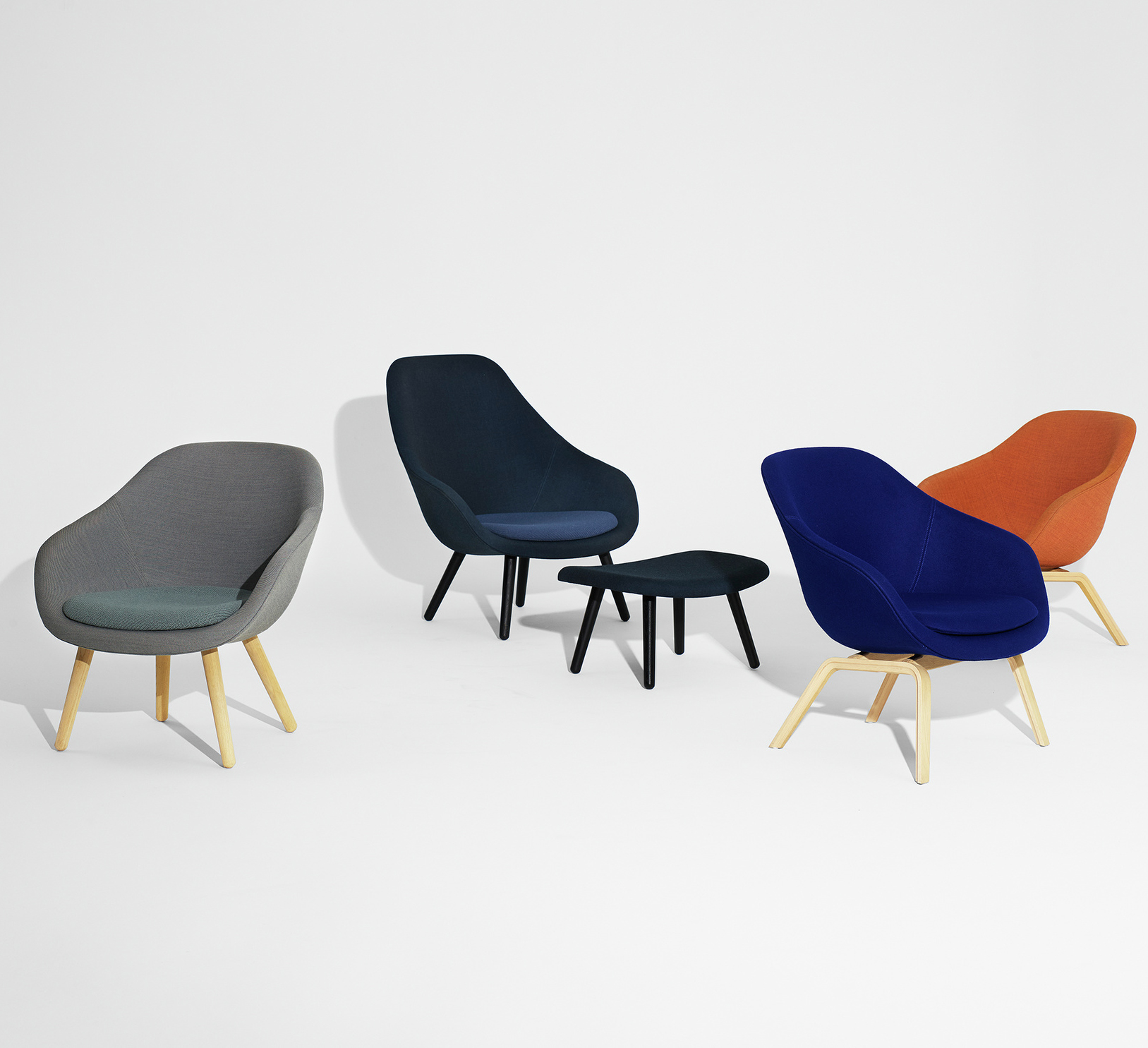 About a Lounge Chair High/Low fra Hay er en videreutvikling av den populære stolen About a Chair. Loungestolen har et flott organisk formet sete med med 2 ulike rygghøyder og armlen for god komfort. Bena fås i naturtre med enten kantede eller runde ben eller svingunderstell i polert eller lakkert aluminium. Stolen kan fås med eller uten ekstra setepute. I samme serie fås også en 2-seter sofa.