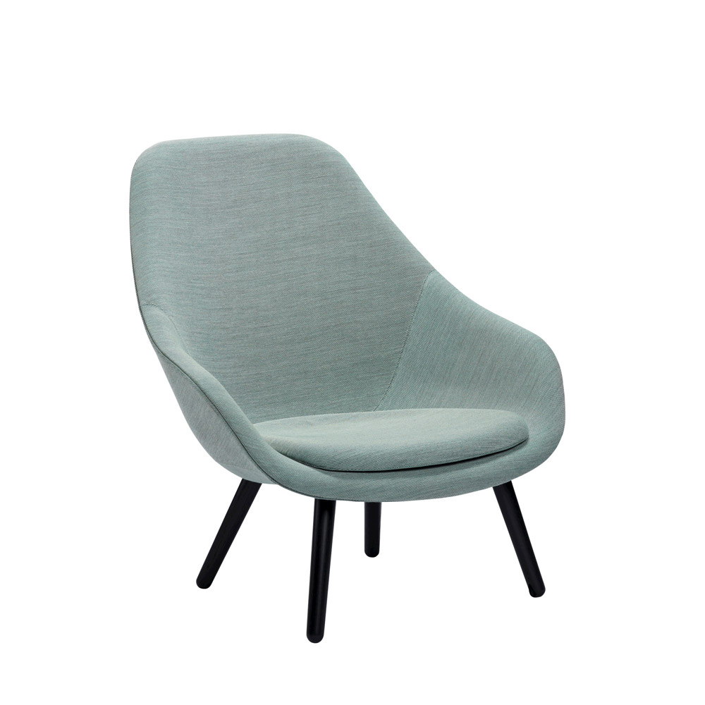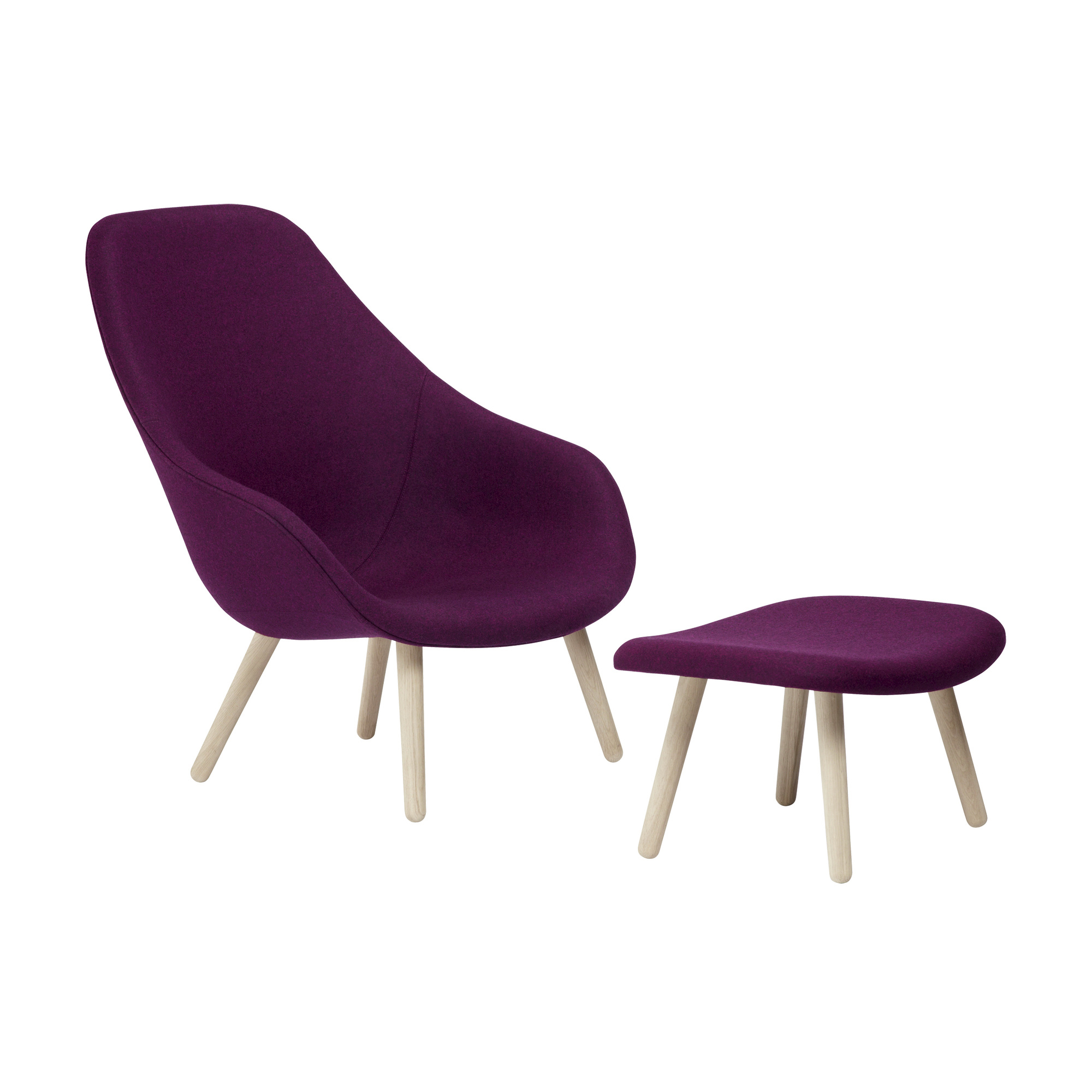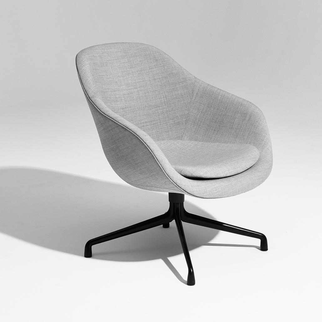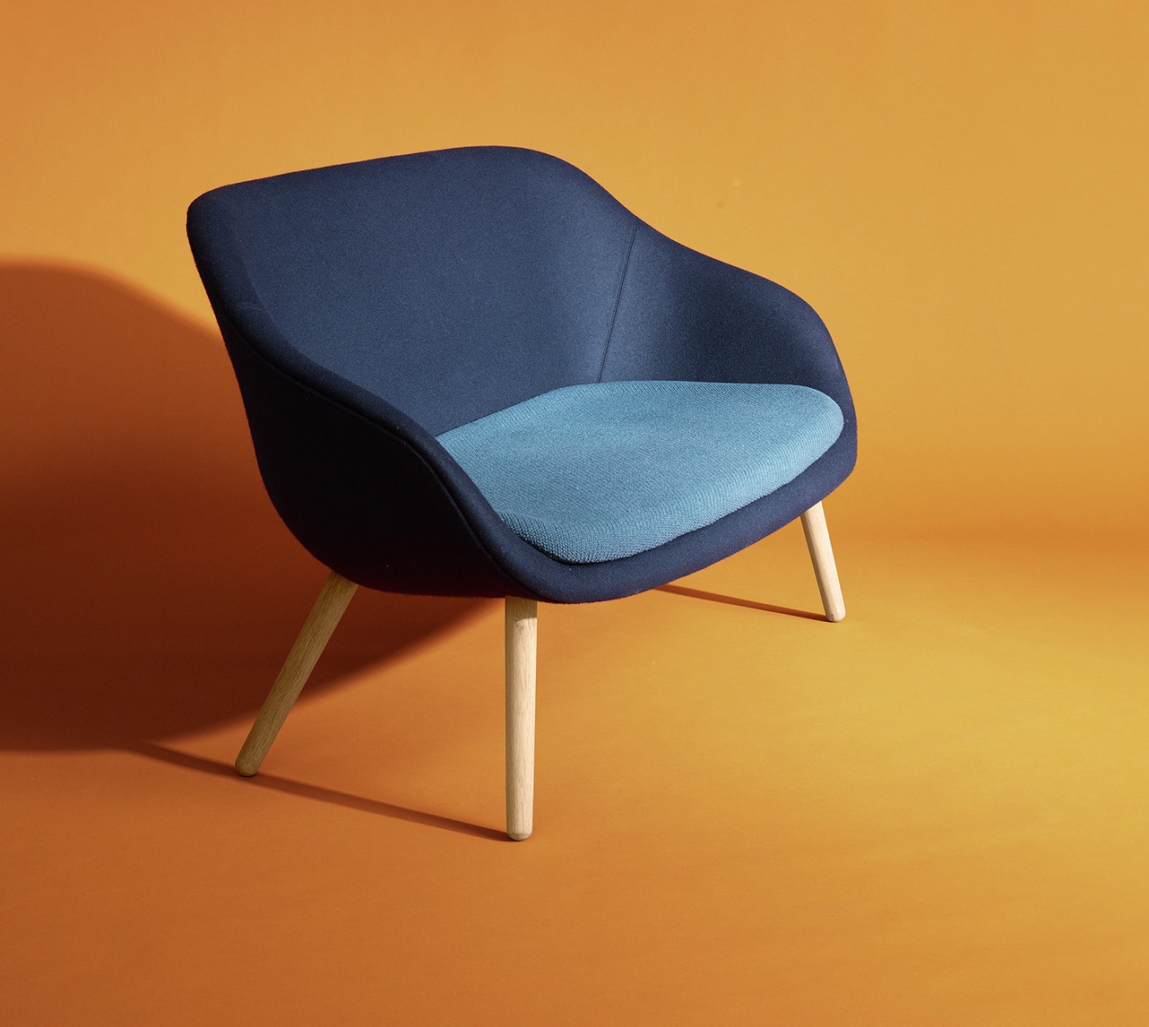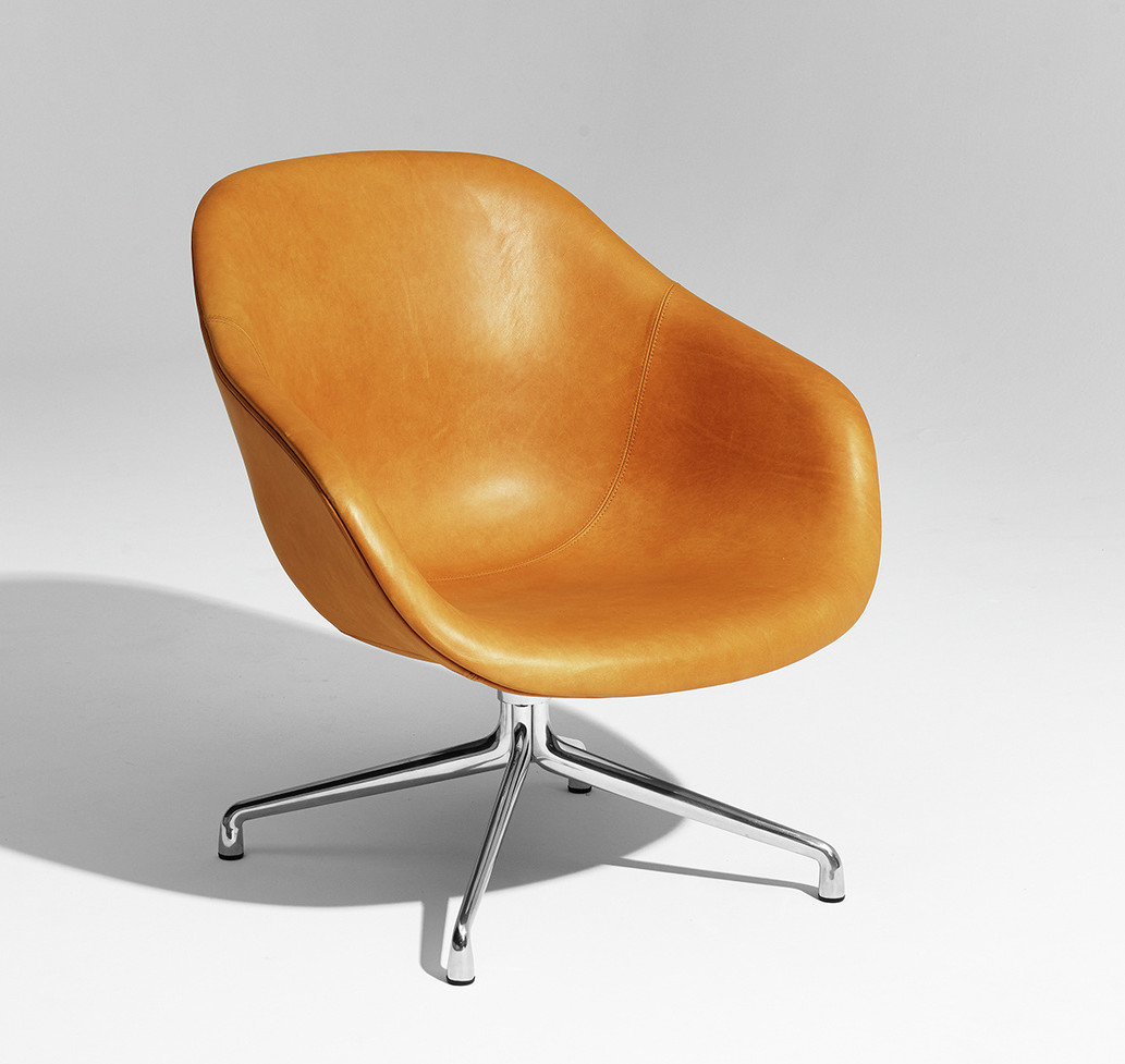 About a Lounge Chair High/Low fra Hay er en videreutvikling av den populære stolen About a Chair. Loungestolen har et flott organisk formet sete med med 2 ulike rygghøyder og armlen for god komfort. Bena fås i naturtre med enten kantede eller runde ben eller svingunderstell i polert eller lakkert aluminium. Stolen kan fås med eller uten ekstra setepute. I samme serie fås også en 2-seter sofa.