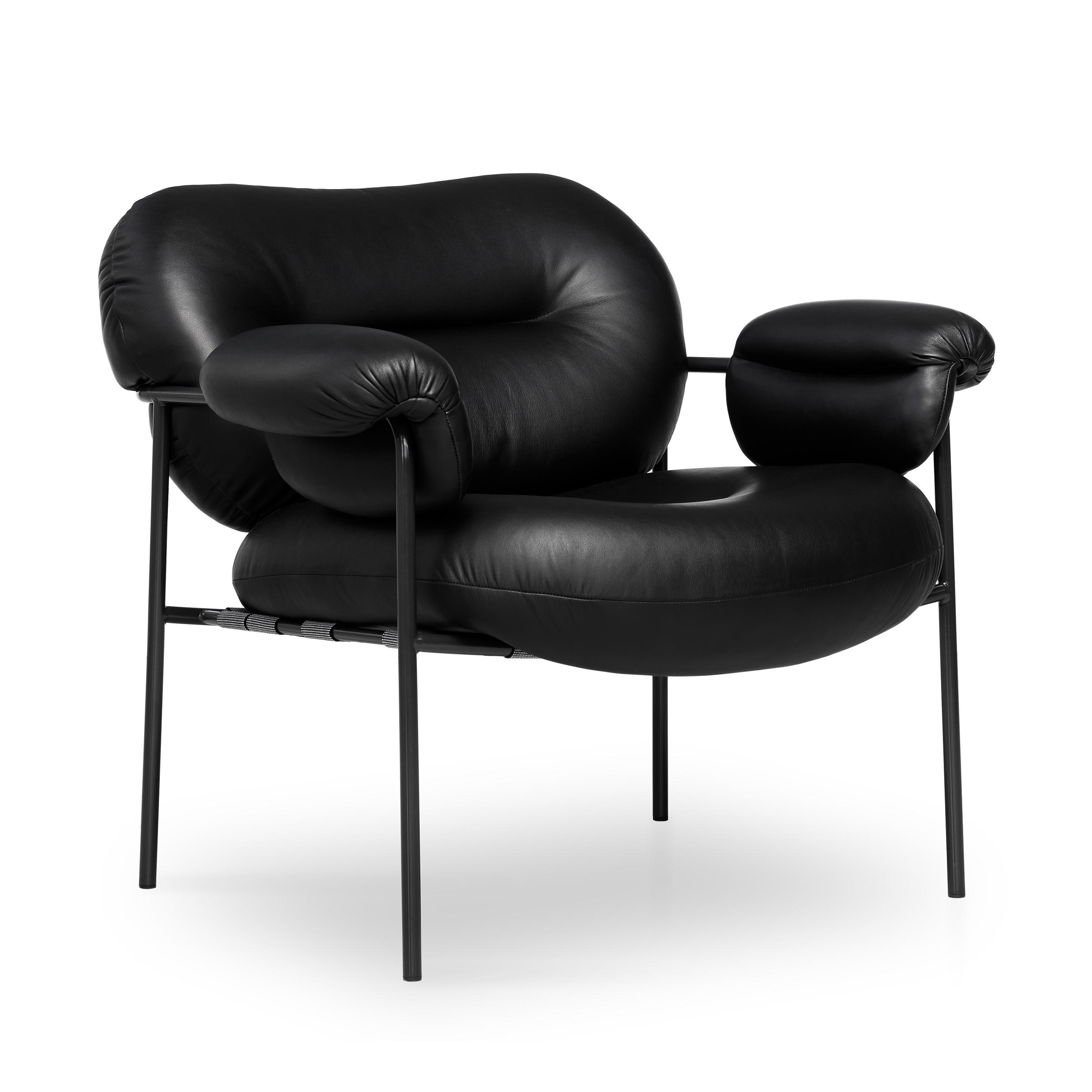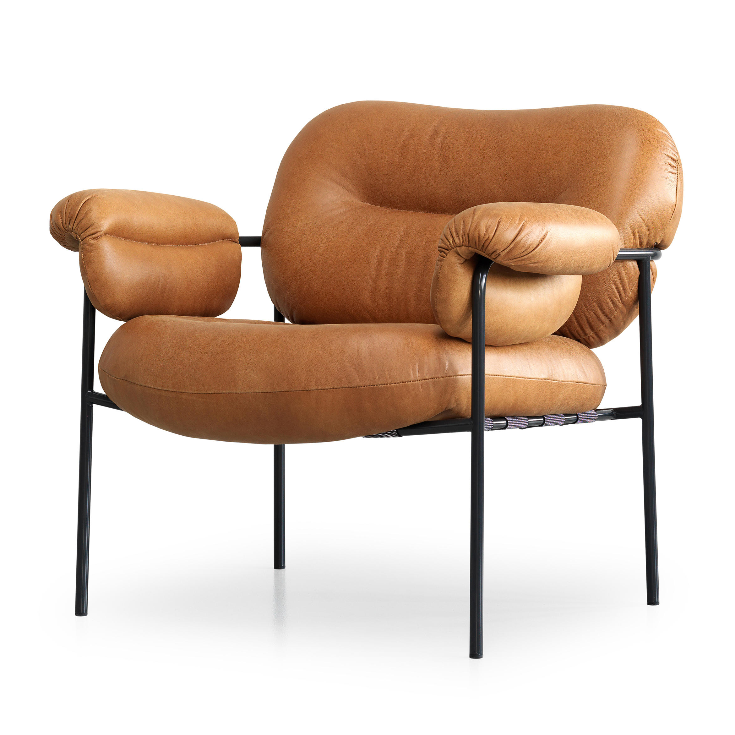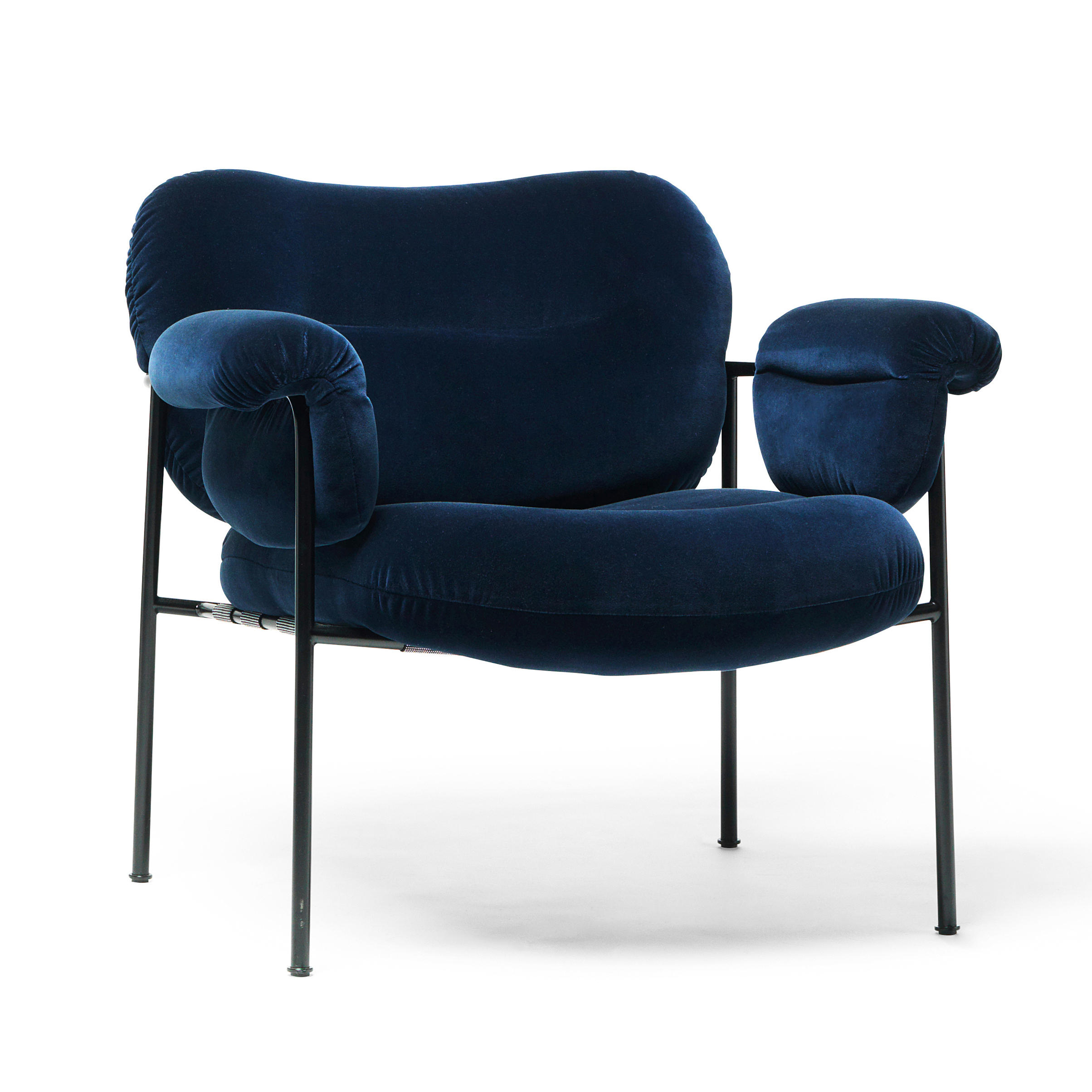 Komfort er inspirasjonen bak Bollos frekke karakter med sjenerøs polstring og lubne utseende. De myke volumene omfavner den smale basen i metall og danner en spenning mellom stolens konstruksjon og putene.