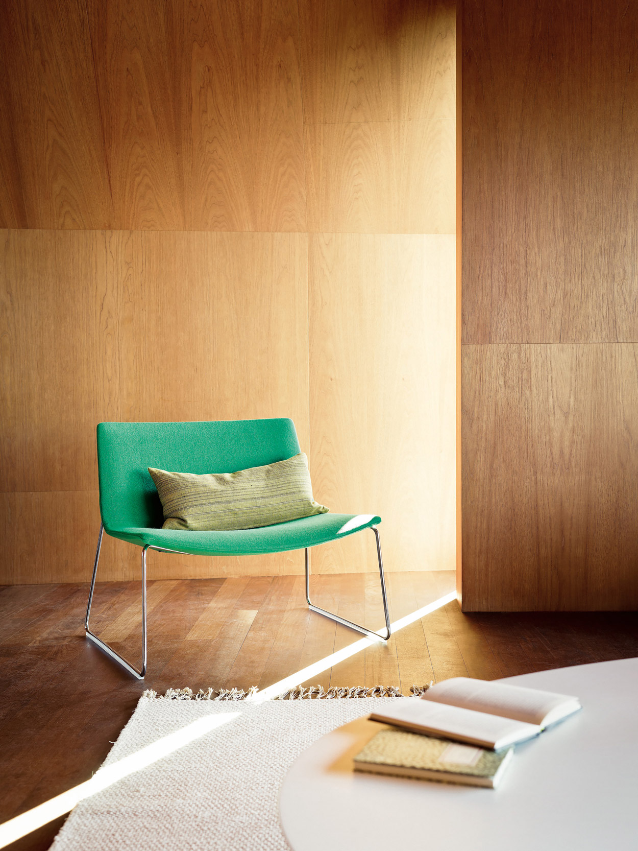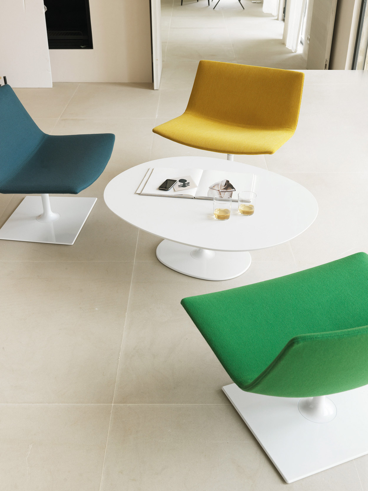 Catifa 80 er en lett, lav lenestol med en markert horisontal karakter. Dens lave profil og brede setet er raus uten å være tung eller klumpete. På egen hånd er det en rolig, behagelig hvilestol som passer perfekt til sosiale og stille soner. Finnes med tre forskjellige understell.