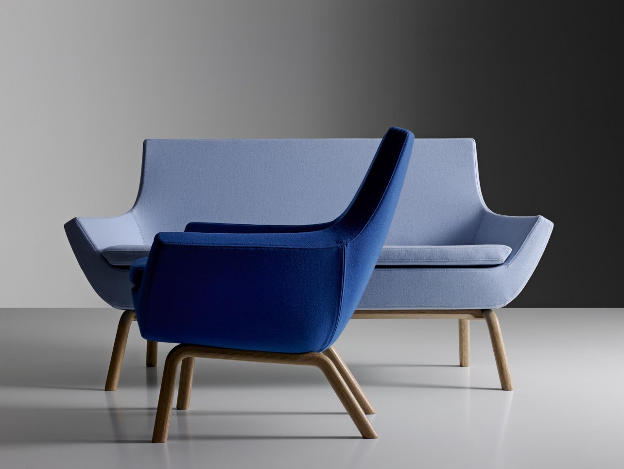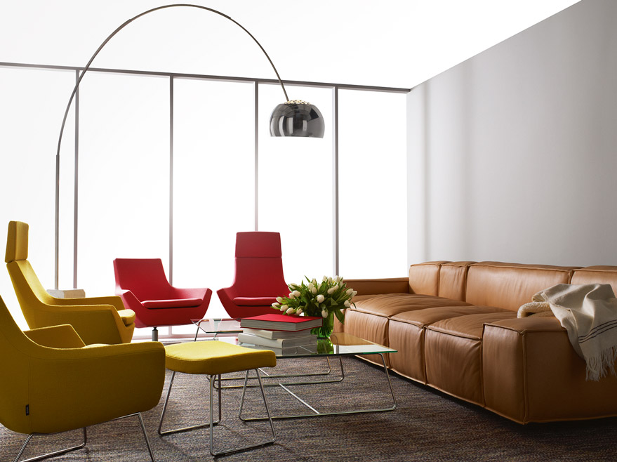 I Happy familien finnes både sofa, lenestol og stol. Happy lenestol har høy eller lav rygg, har flere typer stell og kan fåes med skammel og gyngemekanisme. Happy stol kan være fullpolstret med armlen, eller stabelbar med eller uten armlen.