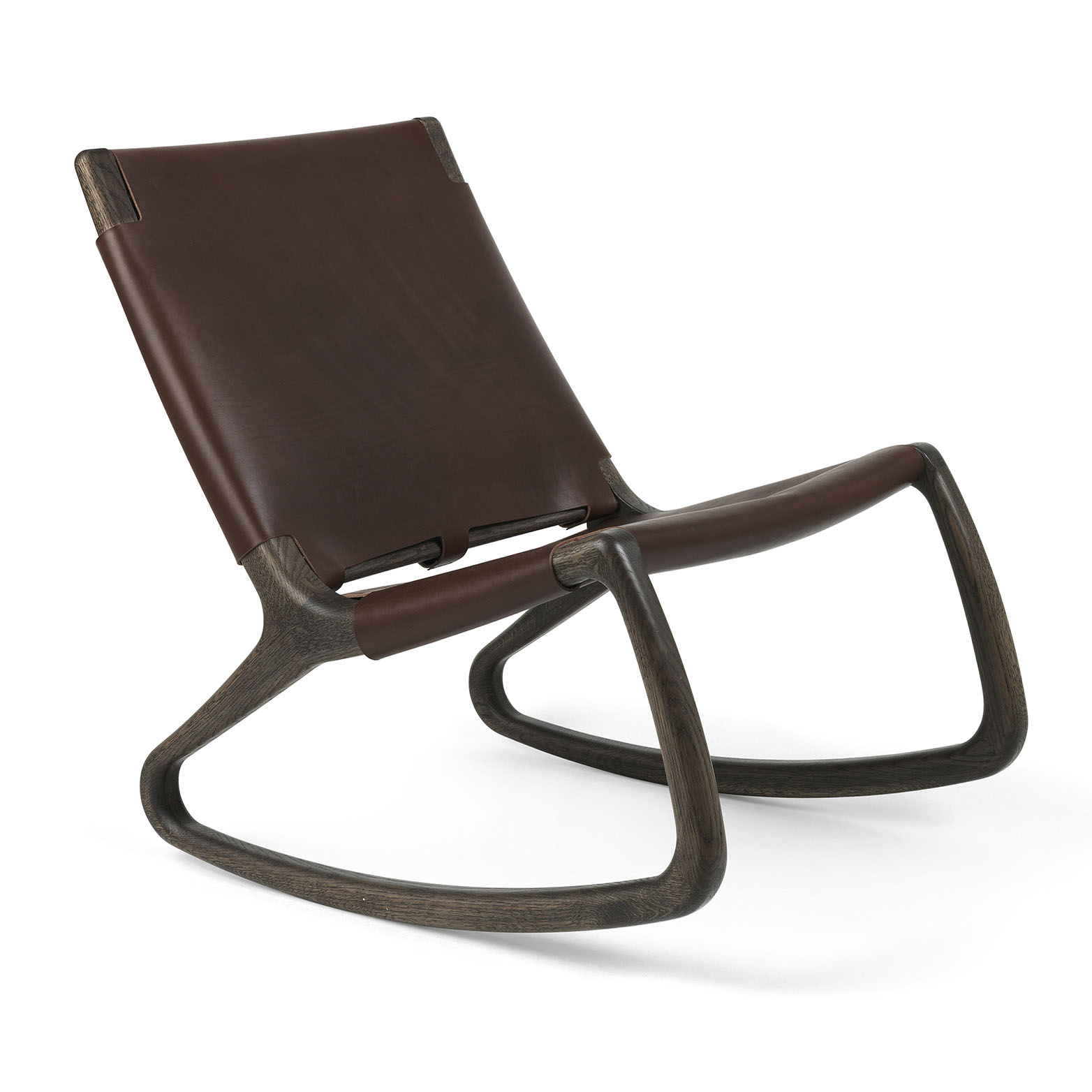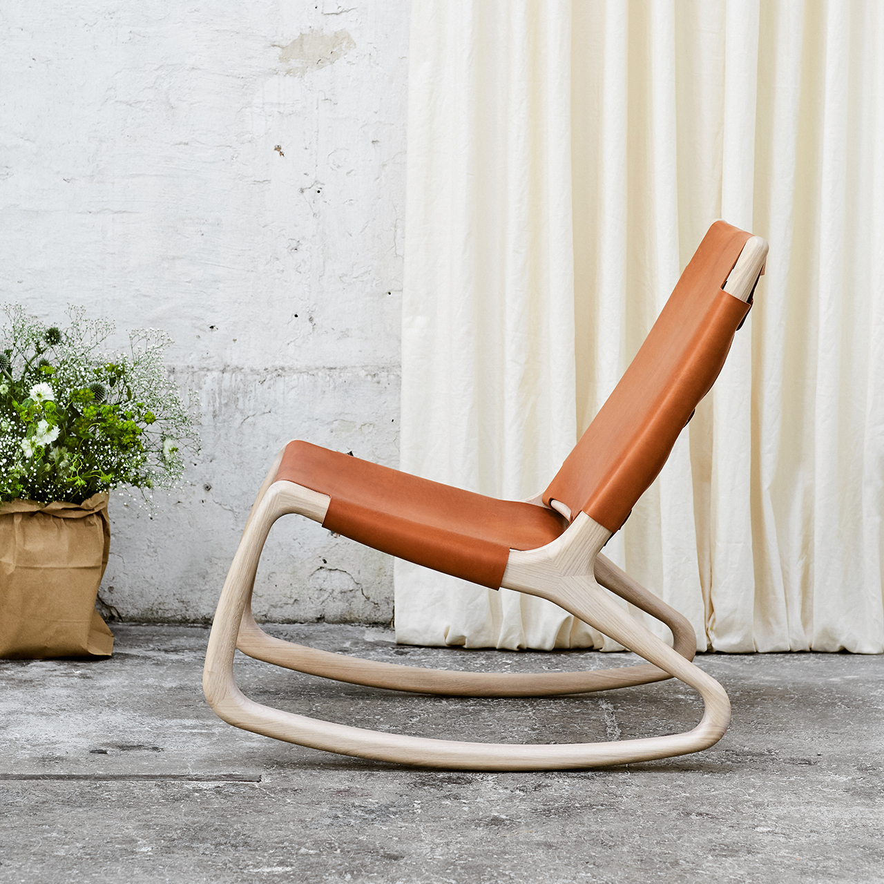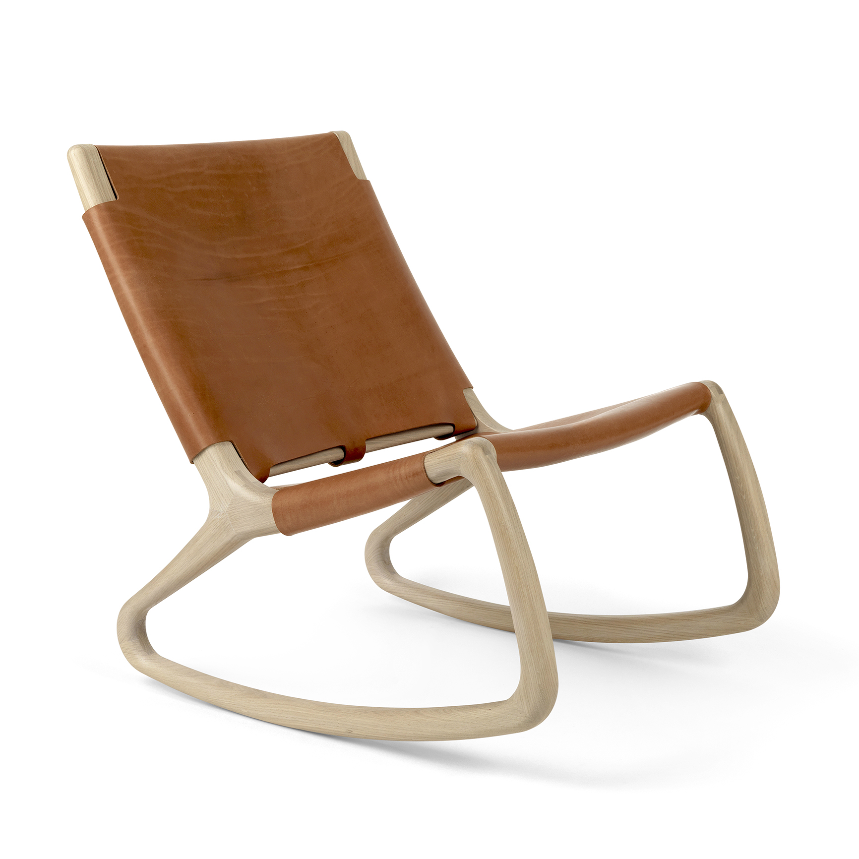 Rocker lenestol kombinerer gamle salbelte teknikker, med tradisjonell bearbeiding av tre, noe som gir stolen et tidløst og karakteristisk design. Kombinasjonen av høykvalitets skinn og den solide eiken med synlige detaljer, gir gyngestolen både komfort og slitestyrke. Skinnet er nøye utvalgt fra en serie av vegetabilske garvede skinn fra Sørensen Leather, som lages uten bruk av krom eller kjemikalier. Naturlige ufullkommenheter gir karakter og lar den eldes vakkert over tid.