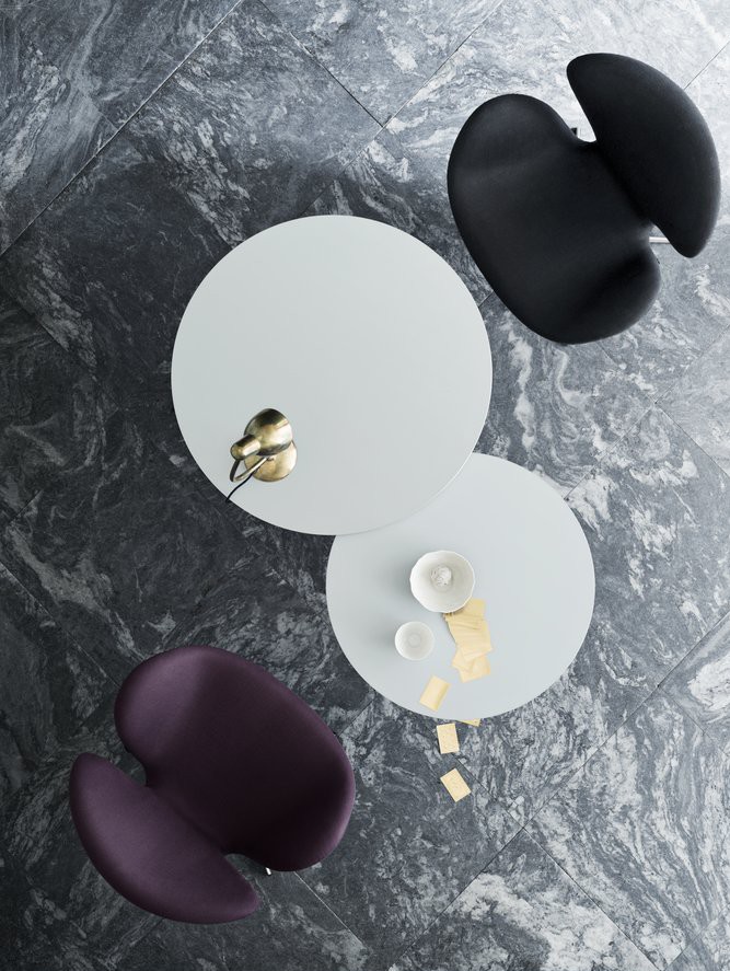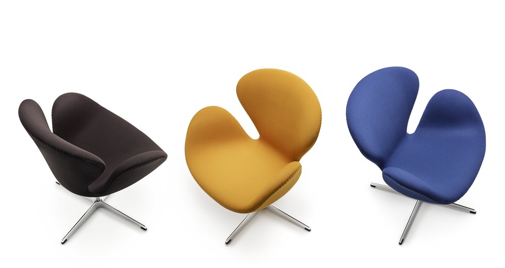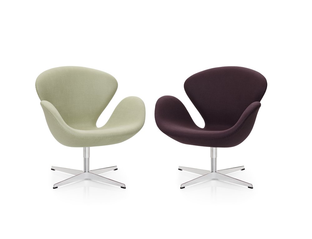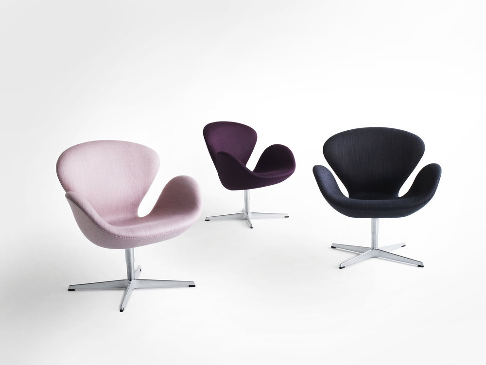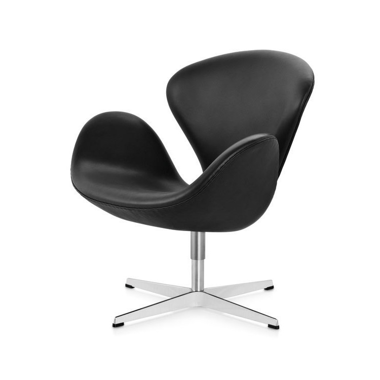 Arne Jacobsen designet Svanen™ samtidig som Egget til lobby og resepsjonsområdet til Royal Hotel i København i 1958. Svanen kan velges i et bredt utvalg av tekstiler og skinn kvaliteter. Kryssfot i satin aluminium med søyle i polert stål. Skall i syntetisk materiale, kledd med kaldskum. Lounge stolen er svingbar og fås i 2 høyder. Kan også fås med retur mekanisme mot pristillegg.