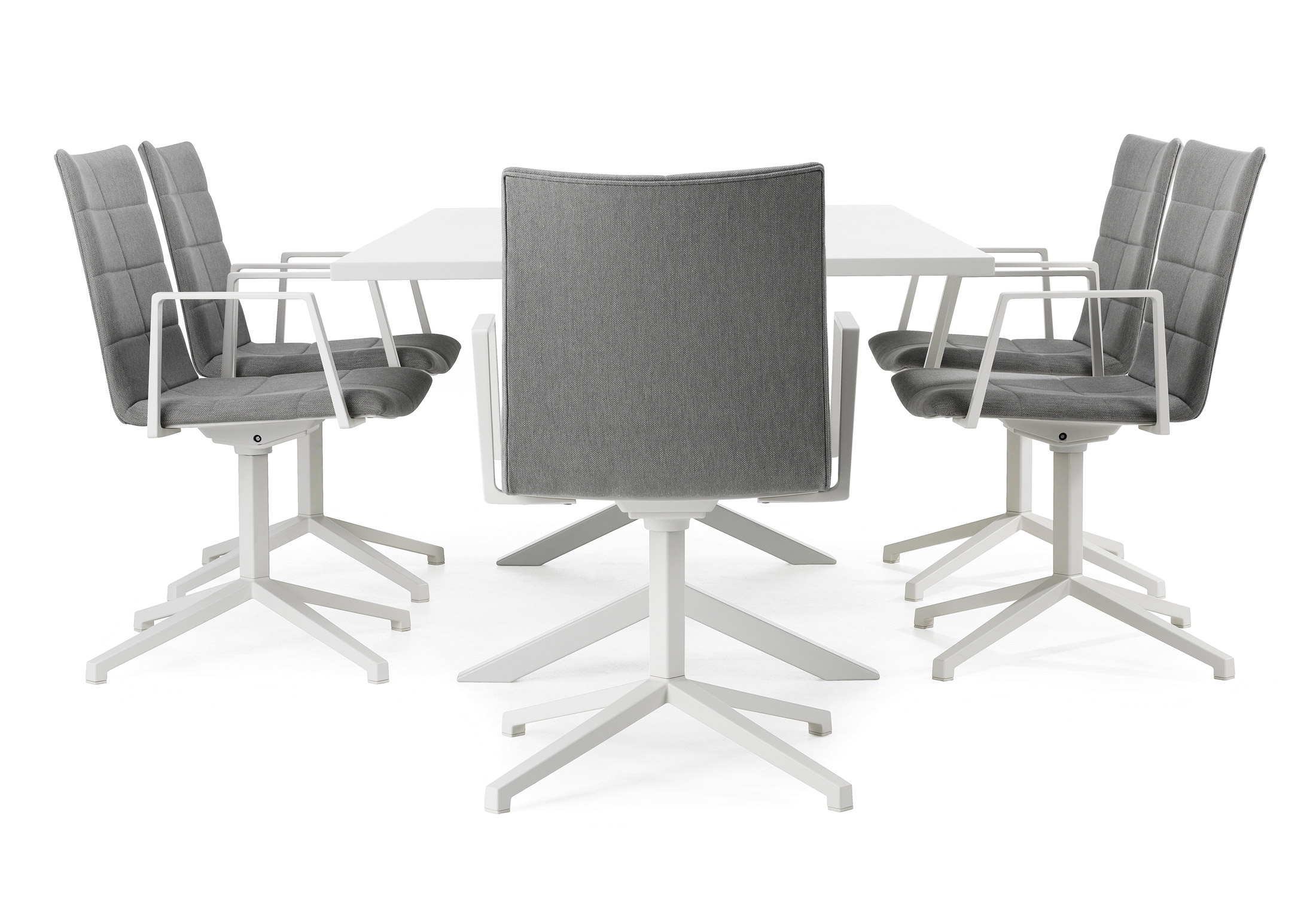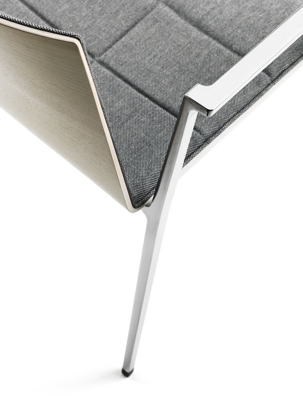 Armlener i støpt aluminium,strukturlakkert (NCS S1002-Y hvit, alt. S8000-N graphite) eller polert.