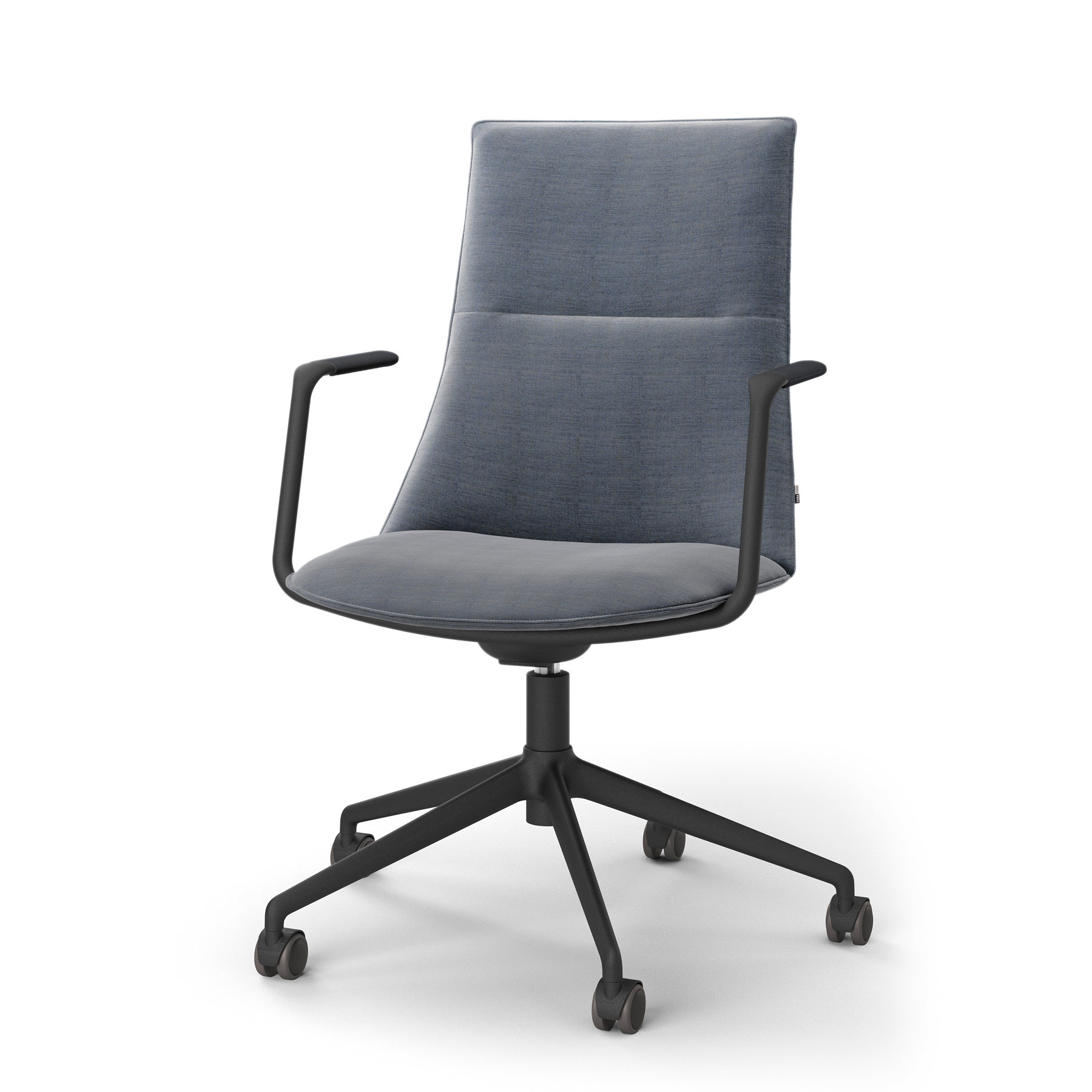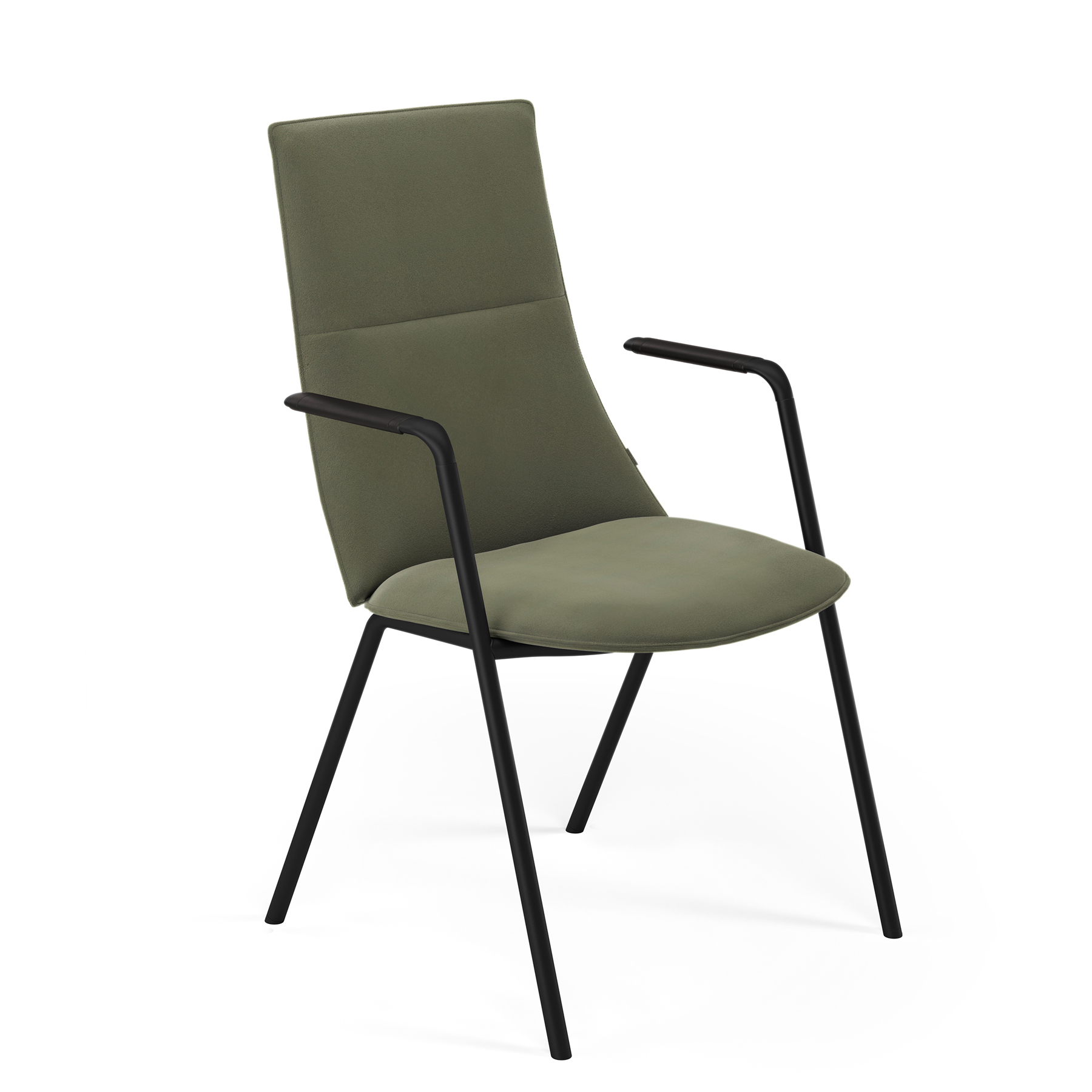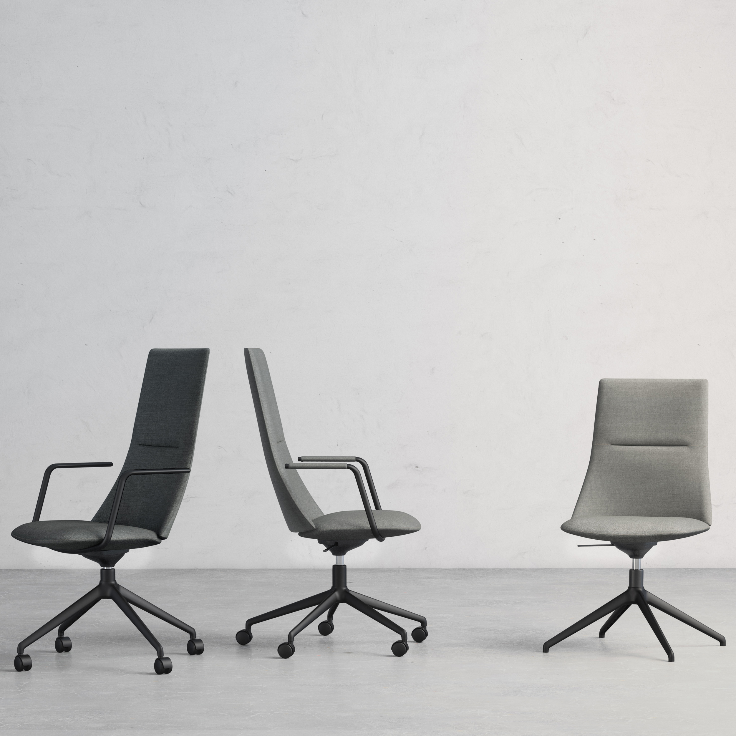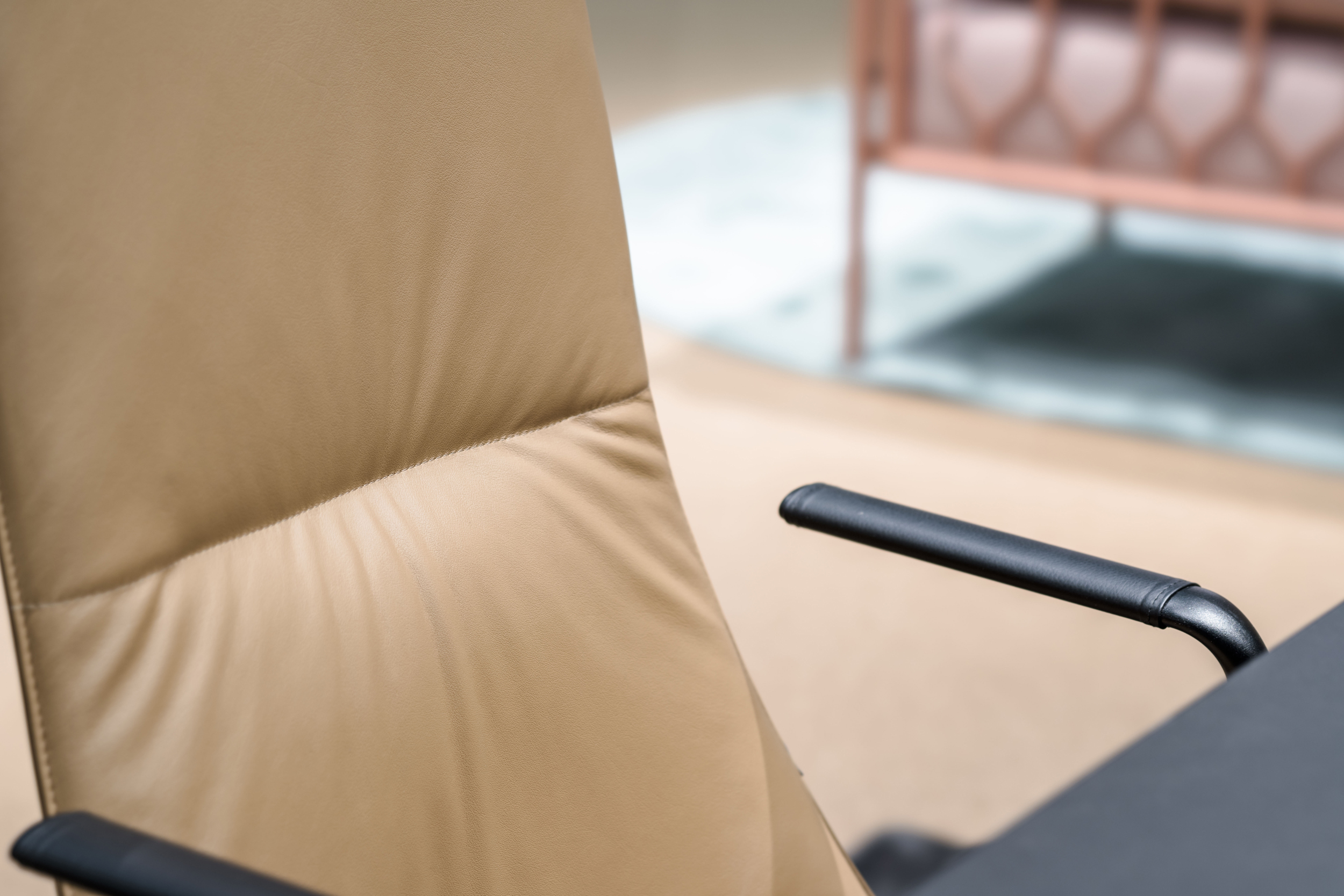 konferansestol med stramme konturer og myke flater.