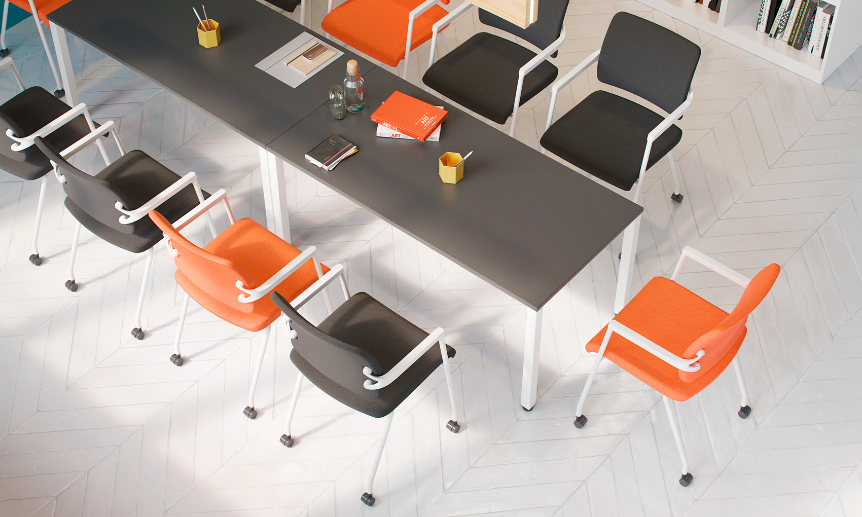 Ergonomi og komfort med design i særklasse – 2ME Conference fås med 5 ulike understell; frisvinger, 4 ben, 4 ben med hjul, 4-fotskryss og 5-fotskryss med hjul.