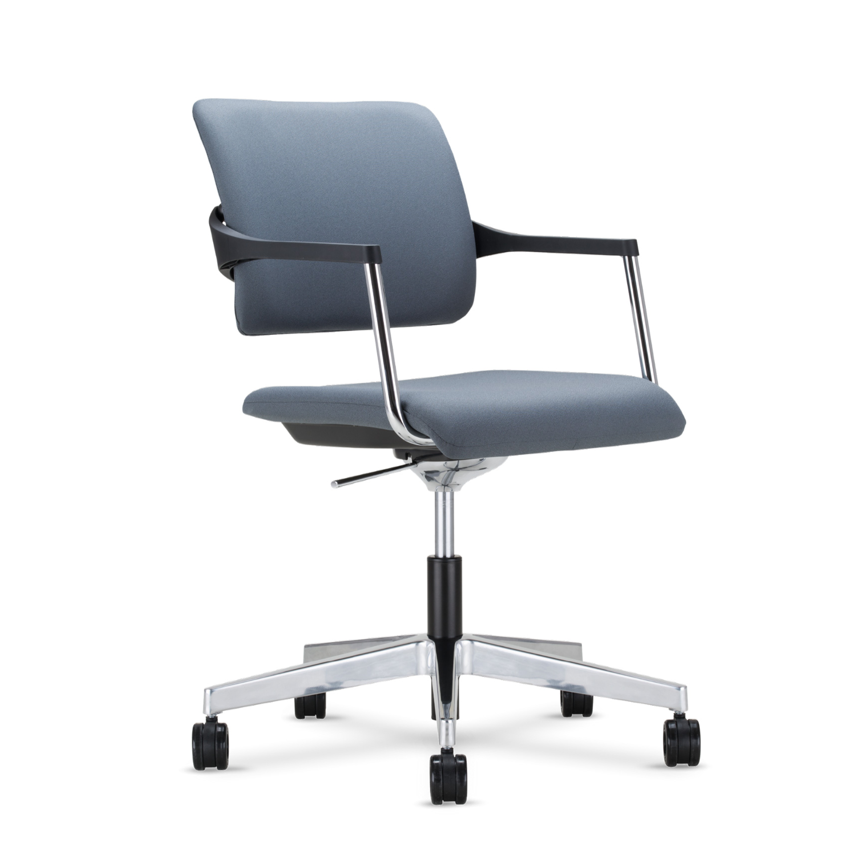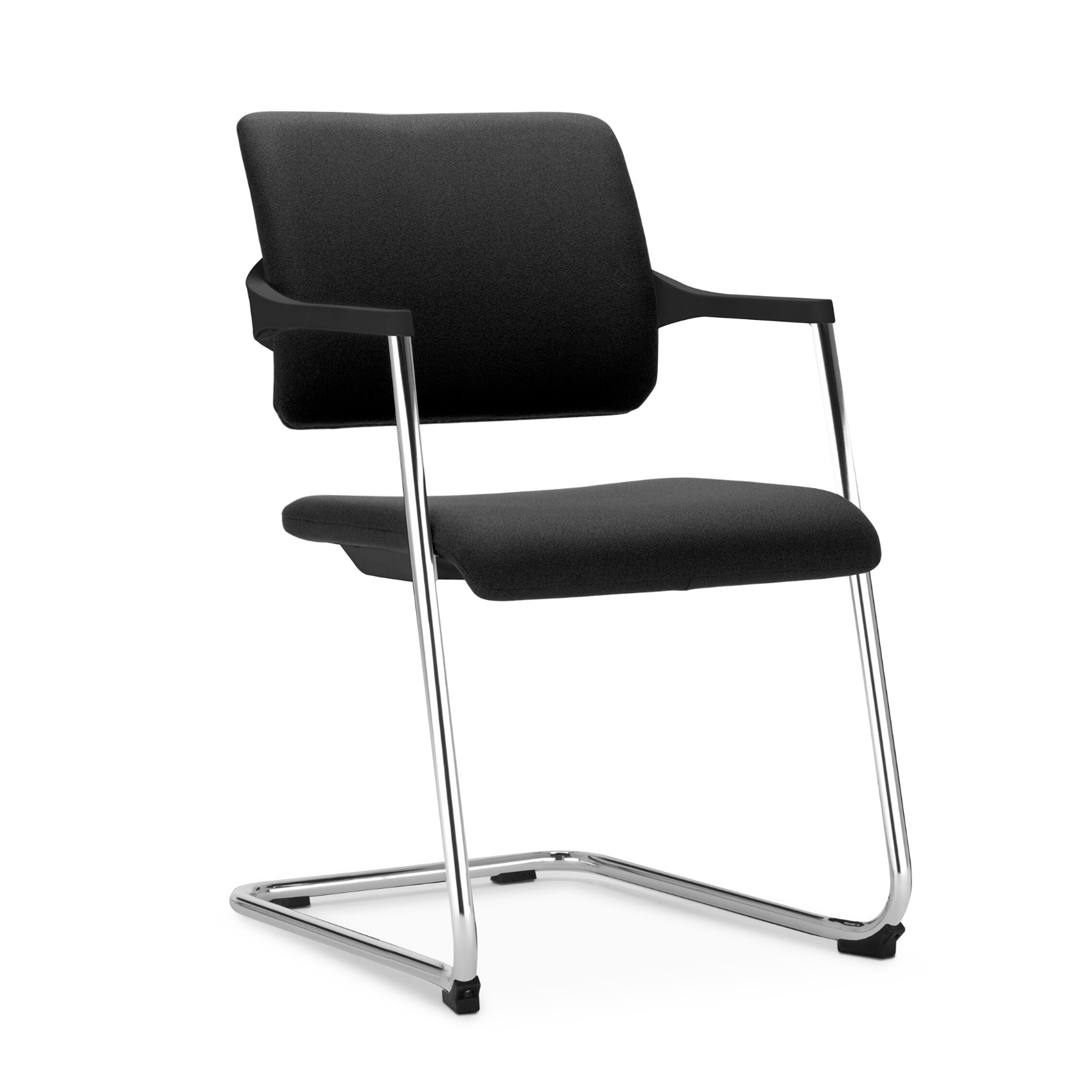 2ME-BL CFP-BL GB – møtestol med frisvingerunderstell med integrerte armlener.