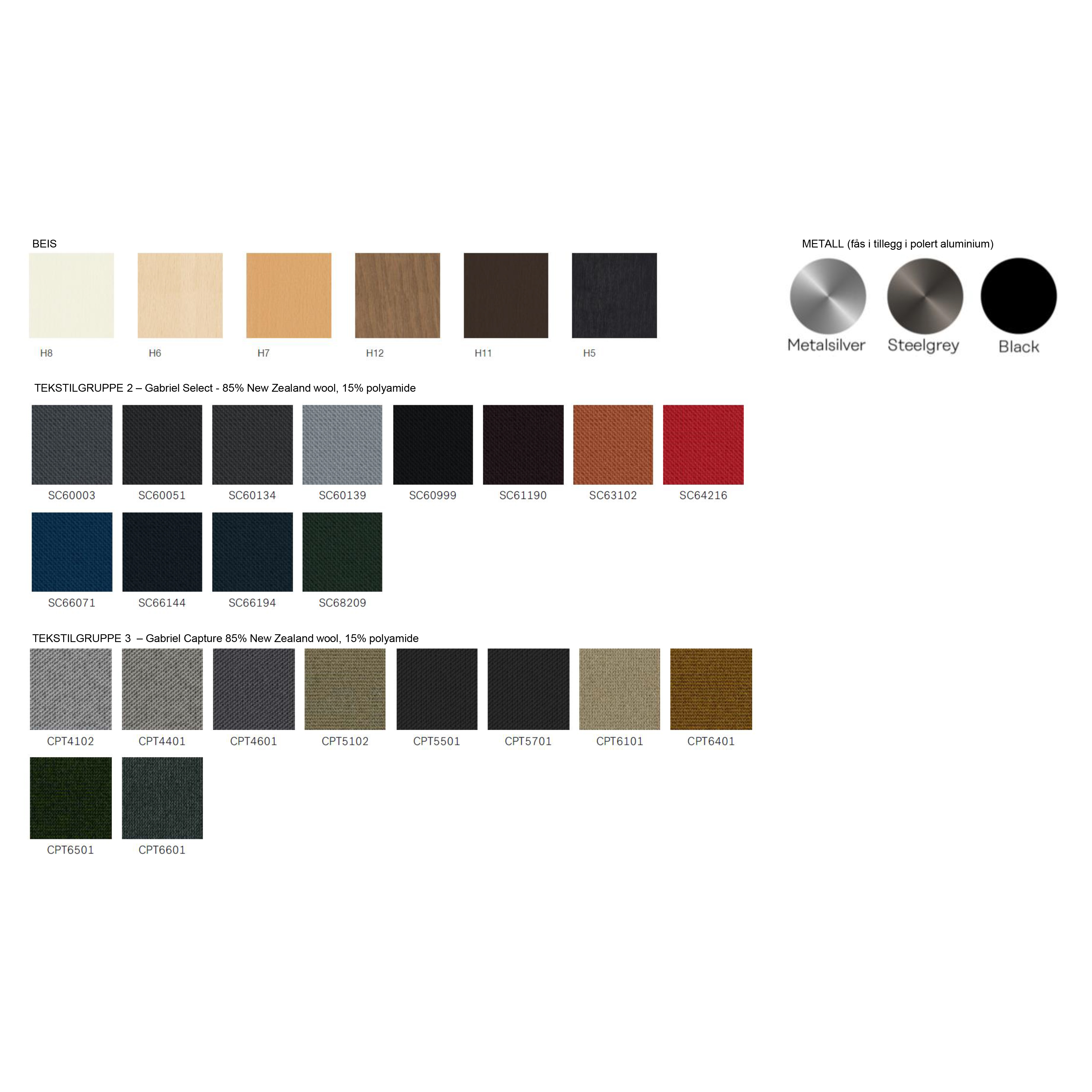 • Treben: tilgjengelig i 6 ulike beis-farger