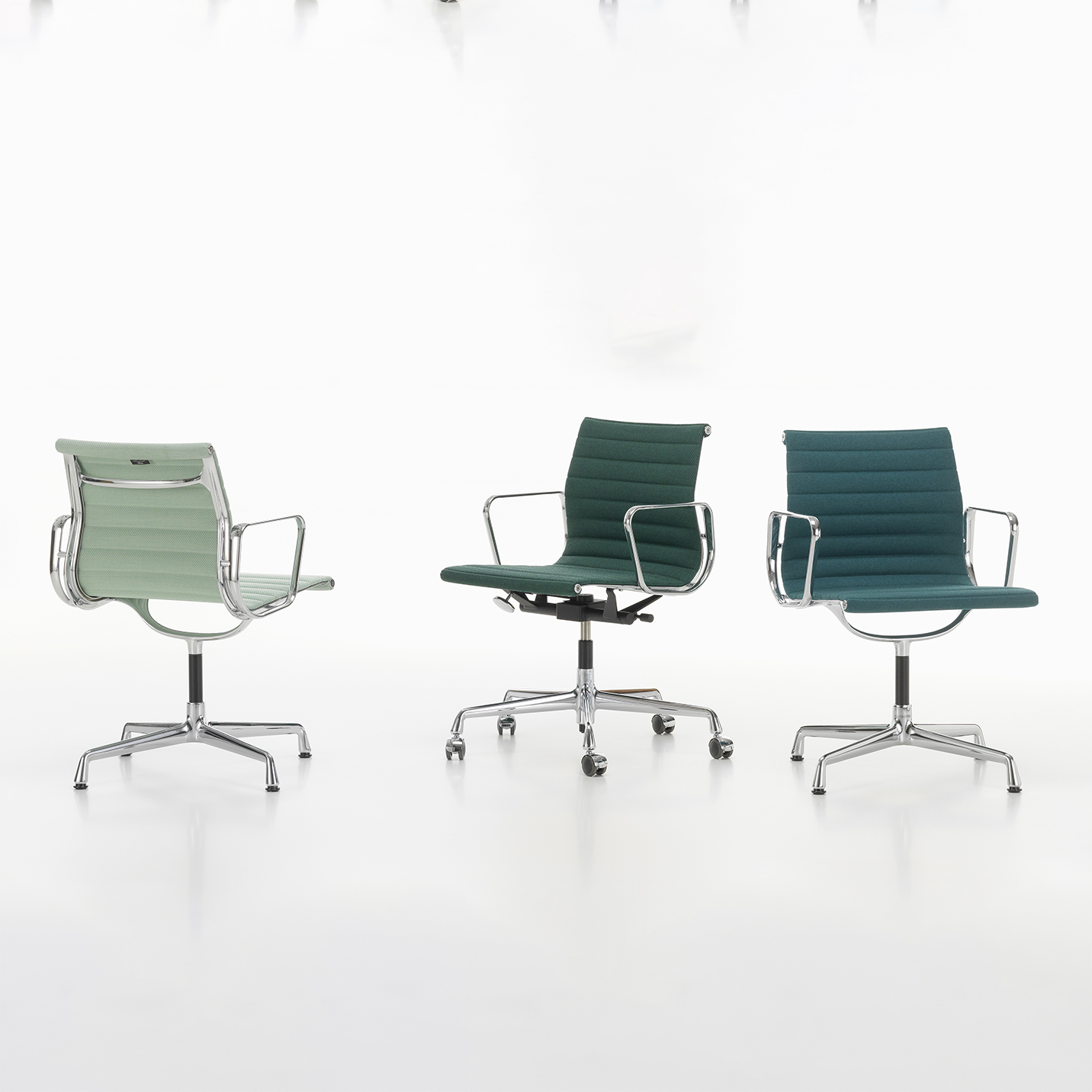 Aluminium Chair EA 117/118/119 er en av de flotteste designmøbler som har blitt laget i det tjuende århundre. Charles og Ray Eames designet denne stolen opprinnelig i 1958 til en privat bolig for en kunstsamler i Columbus, Indiana (USA). For å lage denne stolen, forlot paret alle prinsipper på hvordan skallet på en stol skulle lages. I stedet strakk de et panel av stoff eller skinn mellom to aluminium rammer og fikk dermed et stramt elastisk sete.