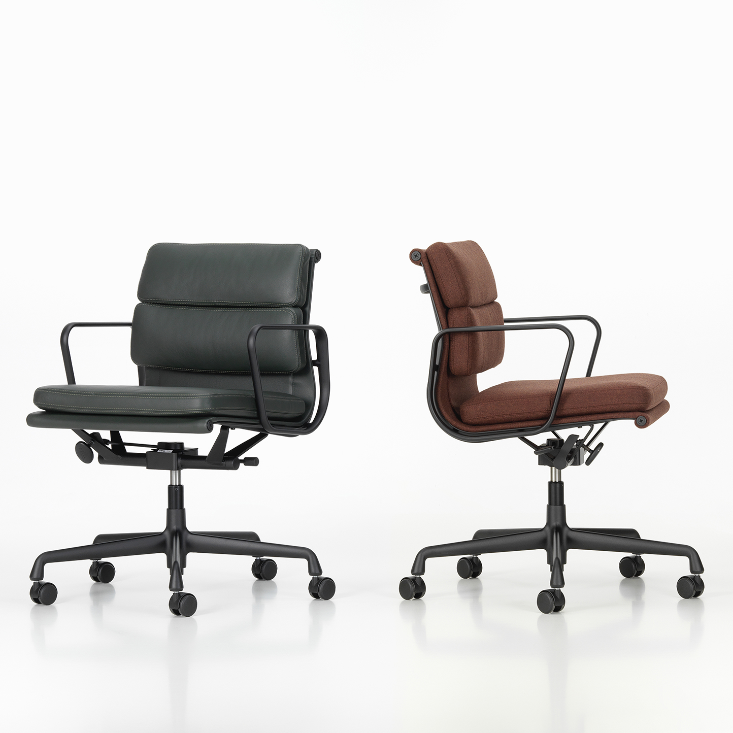 Designet til Soft Pad Chair dateres helt tilbake til 1969 da Soft Pad Chair ble designet av Charles & Ray Eames. Denne stolen har mange likheter med Aluminium Chair, som tydelig gjenspeiles i både konstruksjon og form.