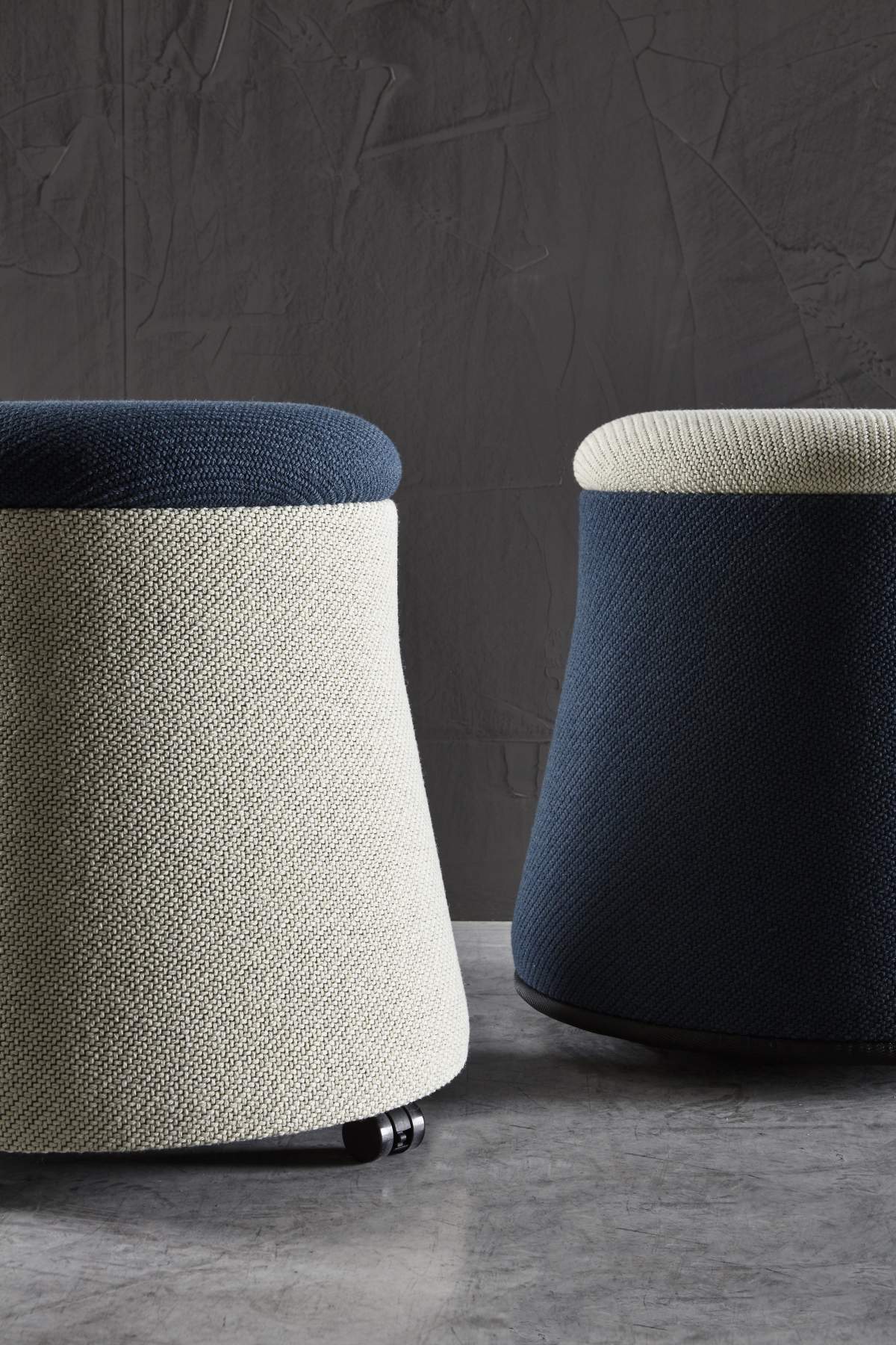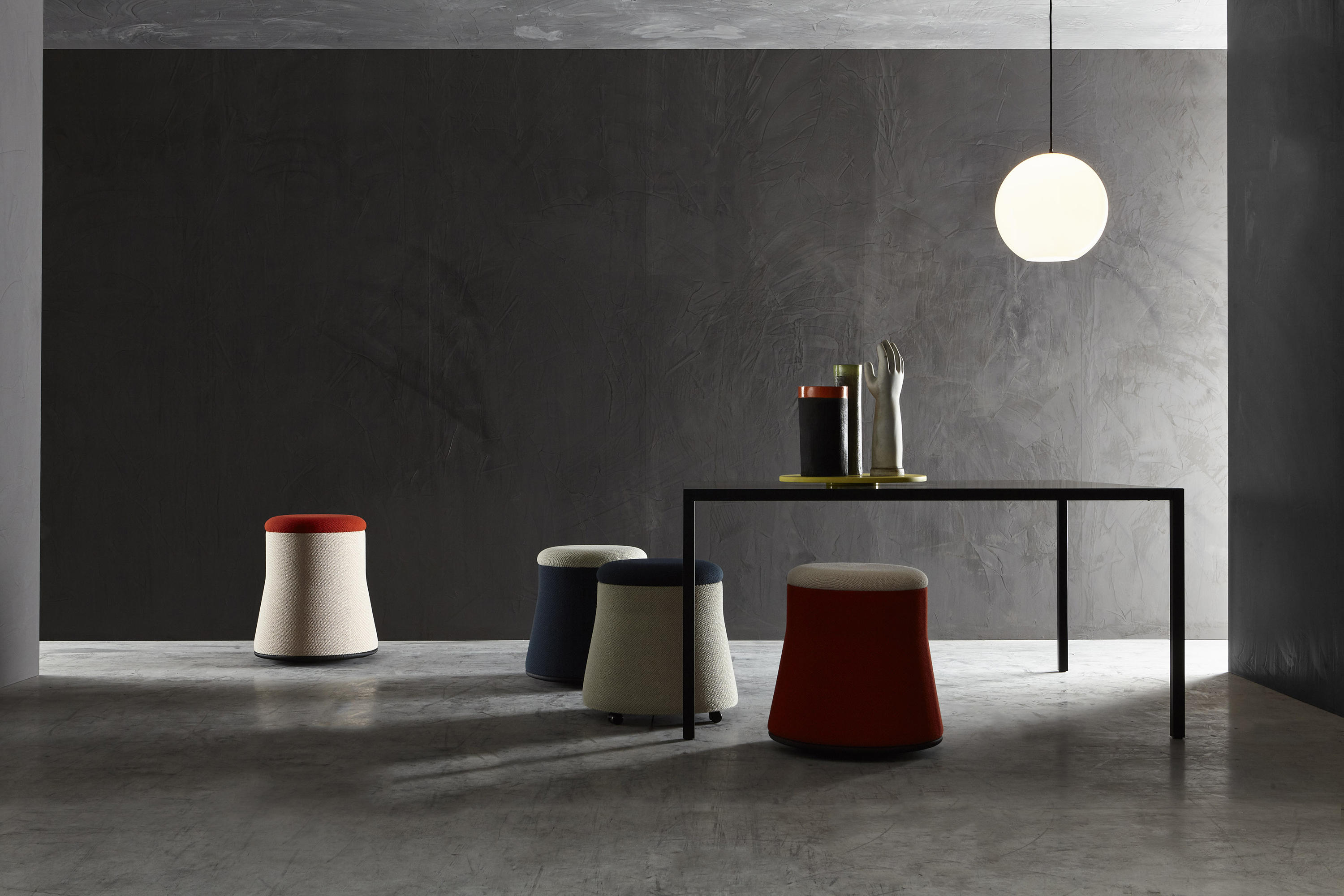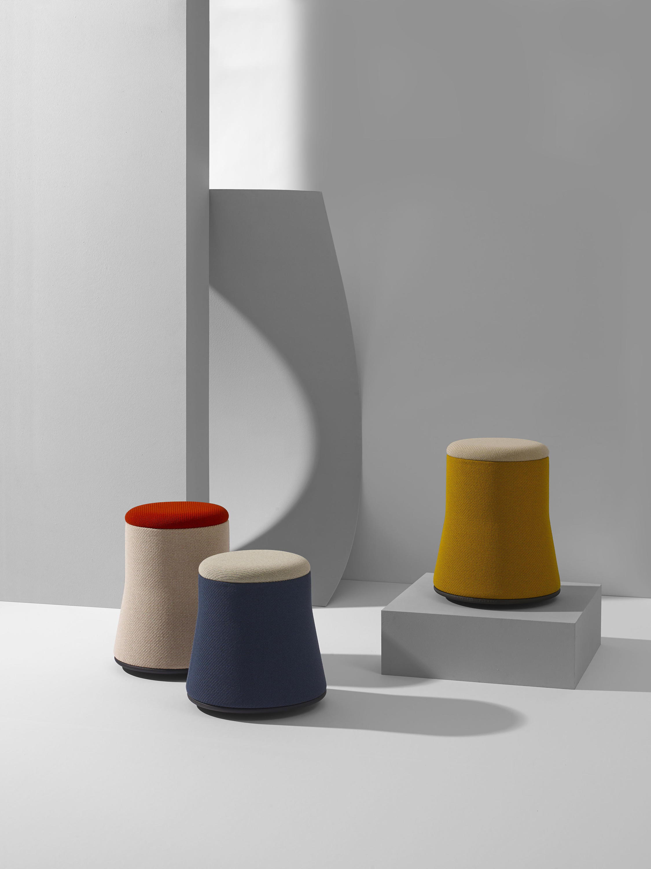 Joy puffen utgjør original geometrisk linearitet, spilt ut på smale proporsjoner og målte skråninger, forbedret av en behagelig fargekontrast. Et produkt til flere bruksområder med sitt funksjonelle og dekorative design. Tilgjengelig i forskjellige versjoner med to ulike størrelser og to ulike understell (hjul og balanse versjon).