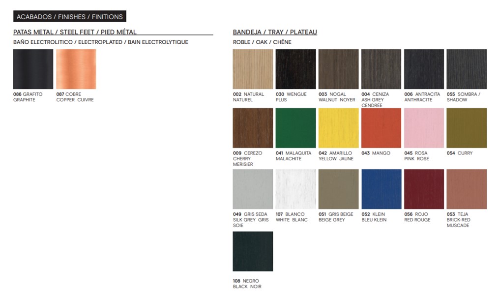Bordplaten er i eik. Velg mellom eik natur eller beiset i 19 ulike farger!