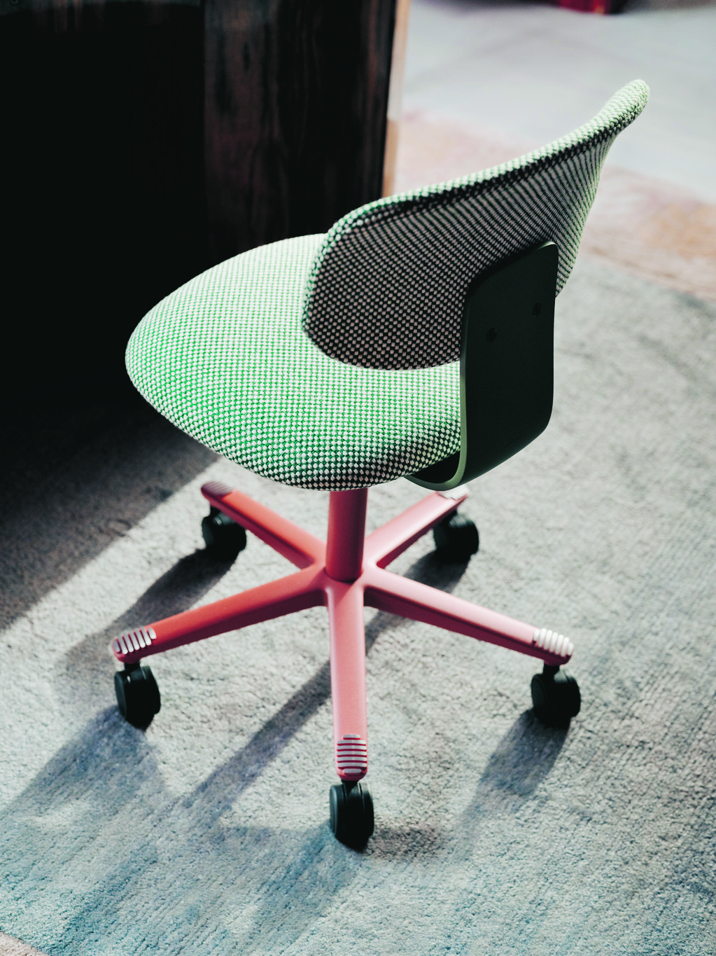Rygg og sete i plast fås i 7 farger; (Black, Mist, Harvest, Moss, Blush, Chestnut, Crowberry)