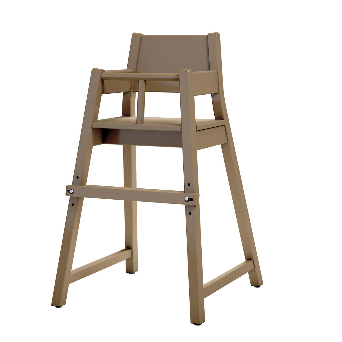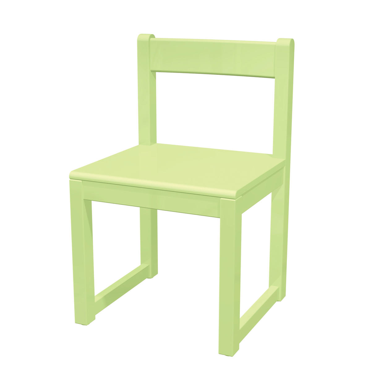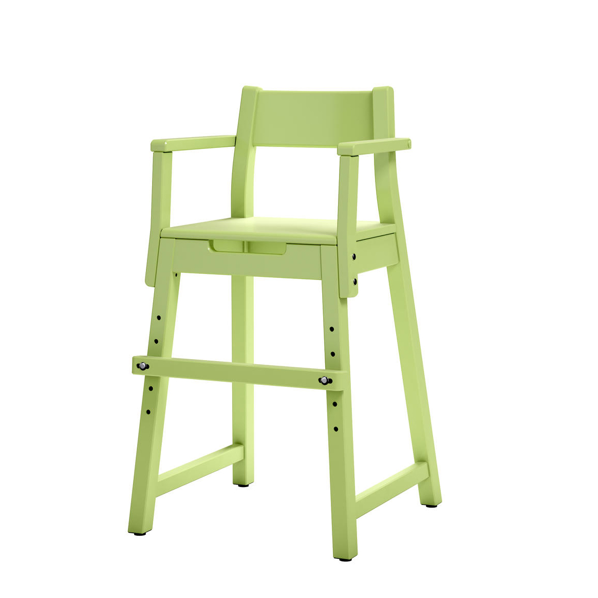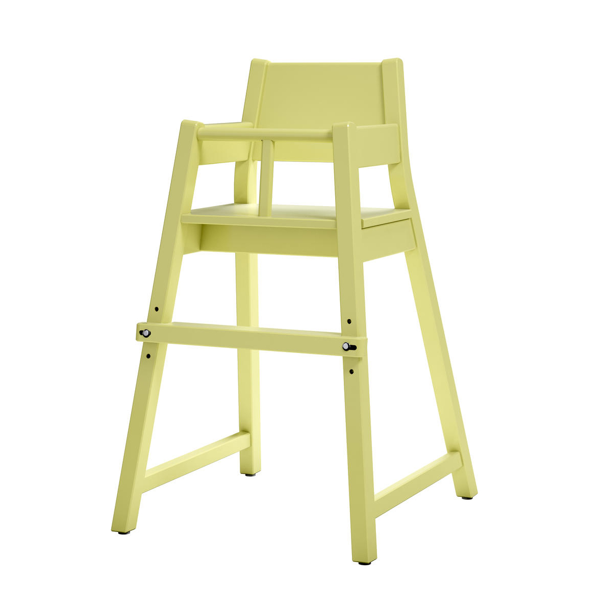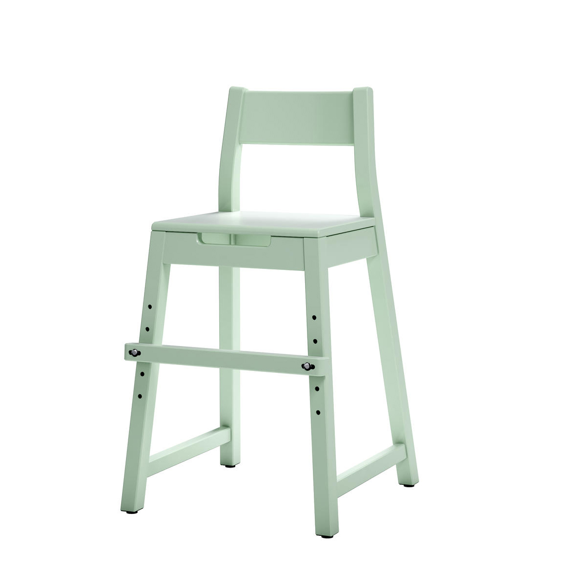 Massiv bjørk. Fås med eller uten bøyle og i flere lakkfarger. Stolen finnes også i lav variant. Sittemål: 26x21x53 cm. Høyde til bøylens overkant 61 cm, totalhøyde 80 cm. Vekt 5 kg
