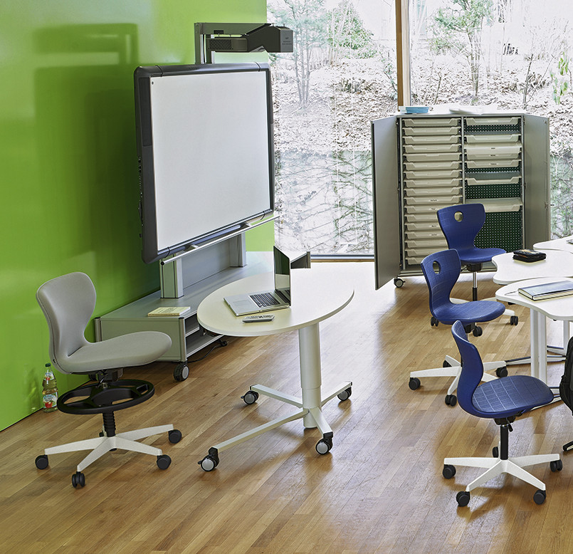 Modell Kiga optimalisert for barnehagepedagoger. Med ekstra lav justerbar setehøyde for arbeid med barn i øyehøyde.