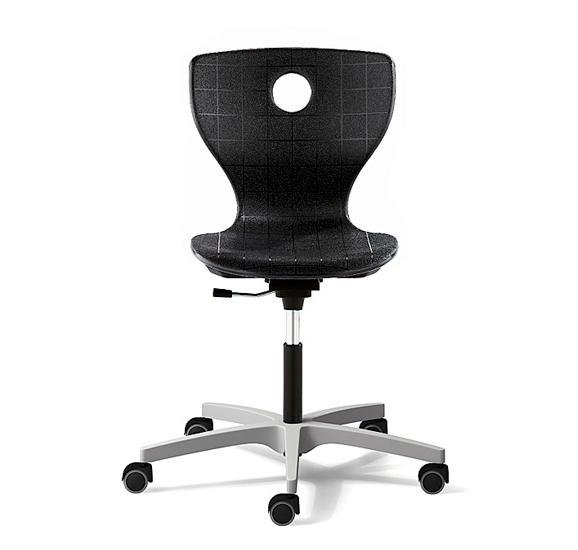 Utstyr og alternativer: Glider eller hjul for harde og myke gulv eller 2K-universalglider. Valgfritt med fotring eller med spesielt ergonomisk 3-D-vippemekanikk med mykere eller mer dempet sideveis helling.