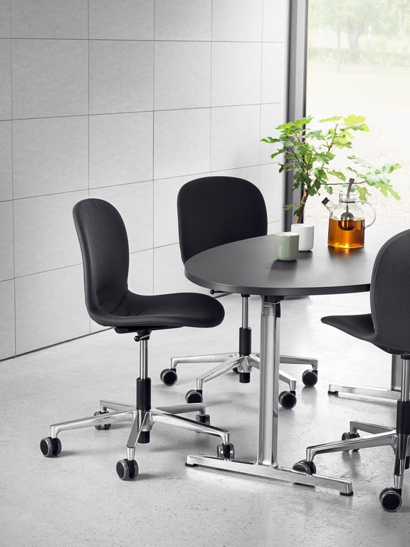 Noor-modellen med fotkryss er designet som en allsidig stol for alt fra utdanningsinstitusjoner og biblioteker til stilige møterom og hjemmekontor. Det rene og rolige uttrykket til fotkrysset kombinert med den kurvede formen på skallet gir en stol som løfter interiøret og som er komfortabel å bruke.