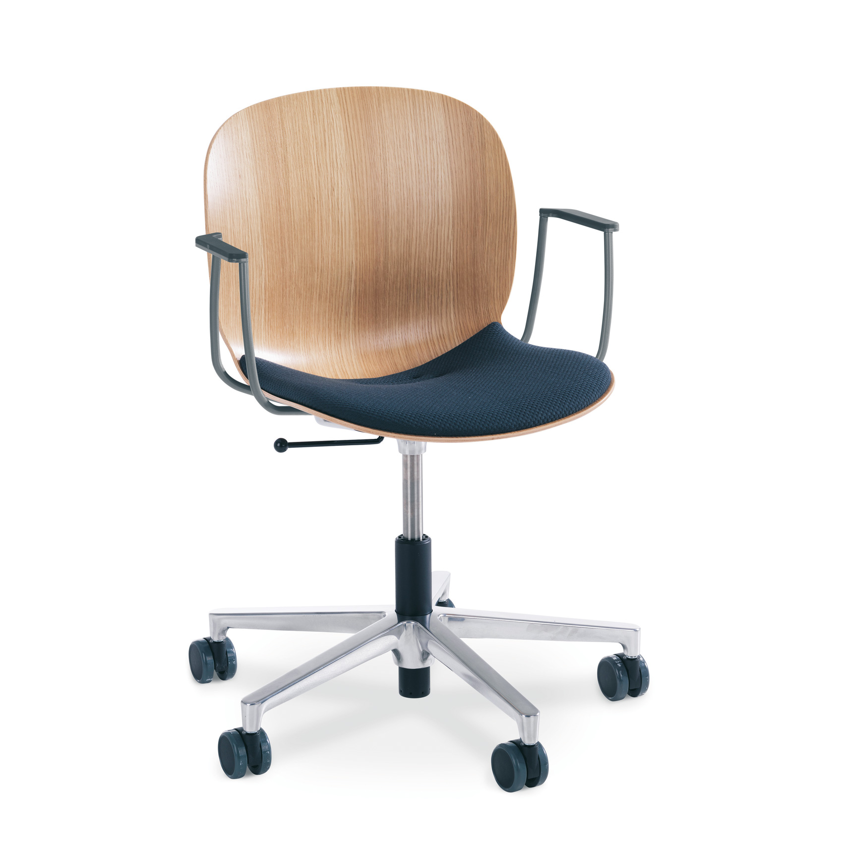 Modellen er tilgjengelig i plast og tre. Den ene leveres med et fleksibelt og ergonomisk formet PP-skall i 5 farger og en glatt overflate som gir en komfortabel og optimalisert sitteopplevelse. Den andre finnes i to typer eksklusiv og naturlig 3D-finer – eik og mørkbeiset eik. Det er mulig å velge trekk for både plast- og tremodellene. Fotkryss og setemekanisme leveres i sort lakk eller polert aluminium. Stolen har en lett tilgjengelig hendel for høydejustering og standard høyde på gasslift. Armlener er tilgjengelig som ekstrautstyr.