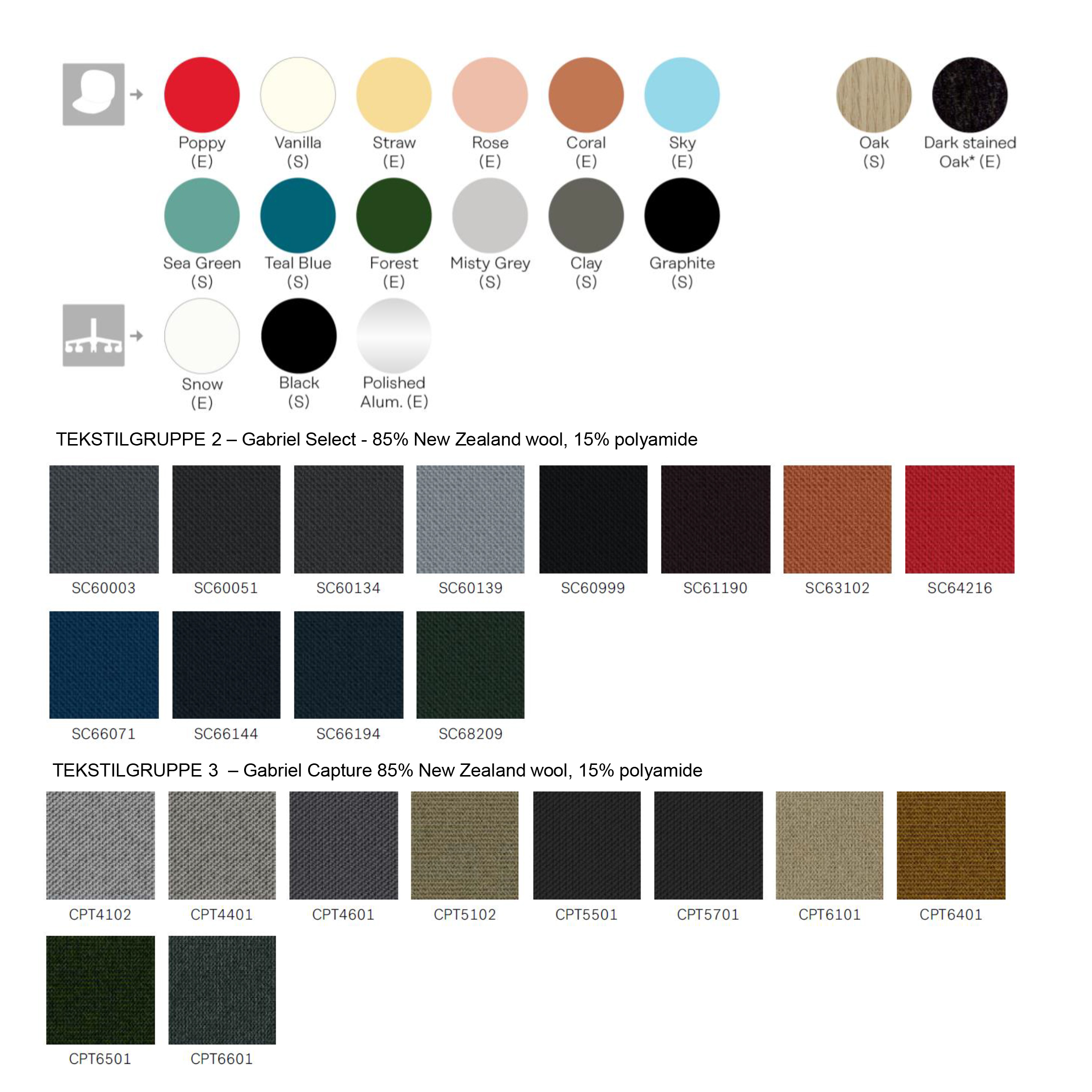 Se vedlegg for materialer og et utvalg tekstiler.