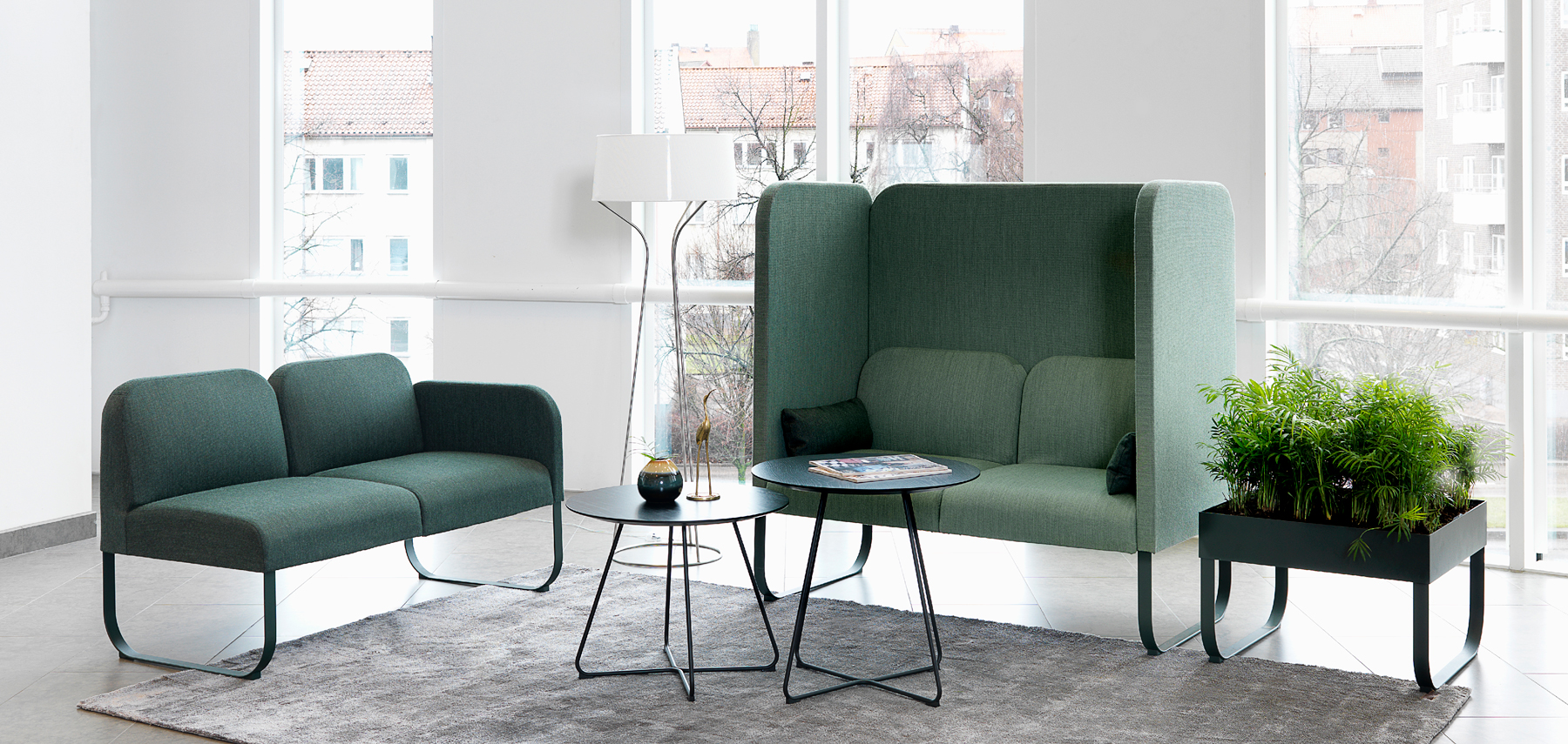 Bail består av ulike moduler, med og uten rygg. Velg også om du vil ha et høyt bakpanel. Koble også sammen med bord eller planteholder. Det kan også monteres på strømmuttak med USB.