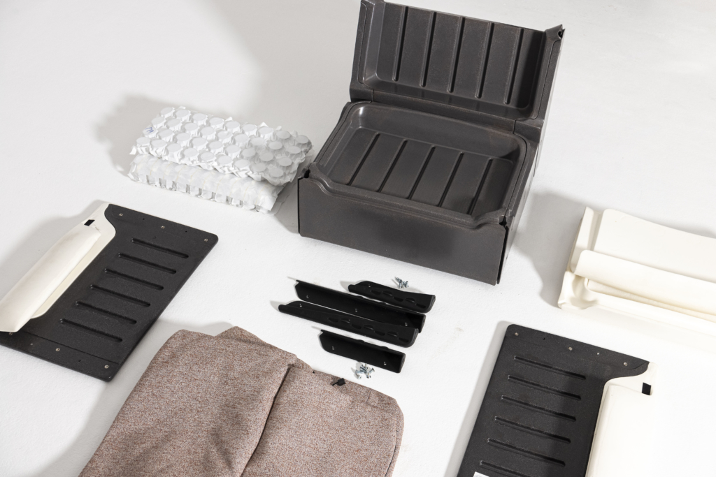 Den største delen av sofaen – kjernekroppen – er en hul struktur laget av en resirkulert og resirkulerbar plast, hentet fra møbel- og bilindustriavfall.