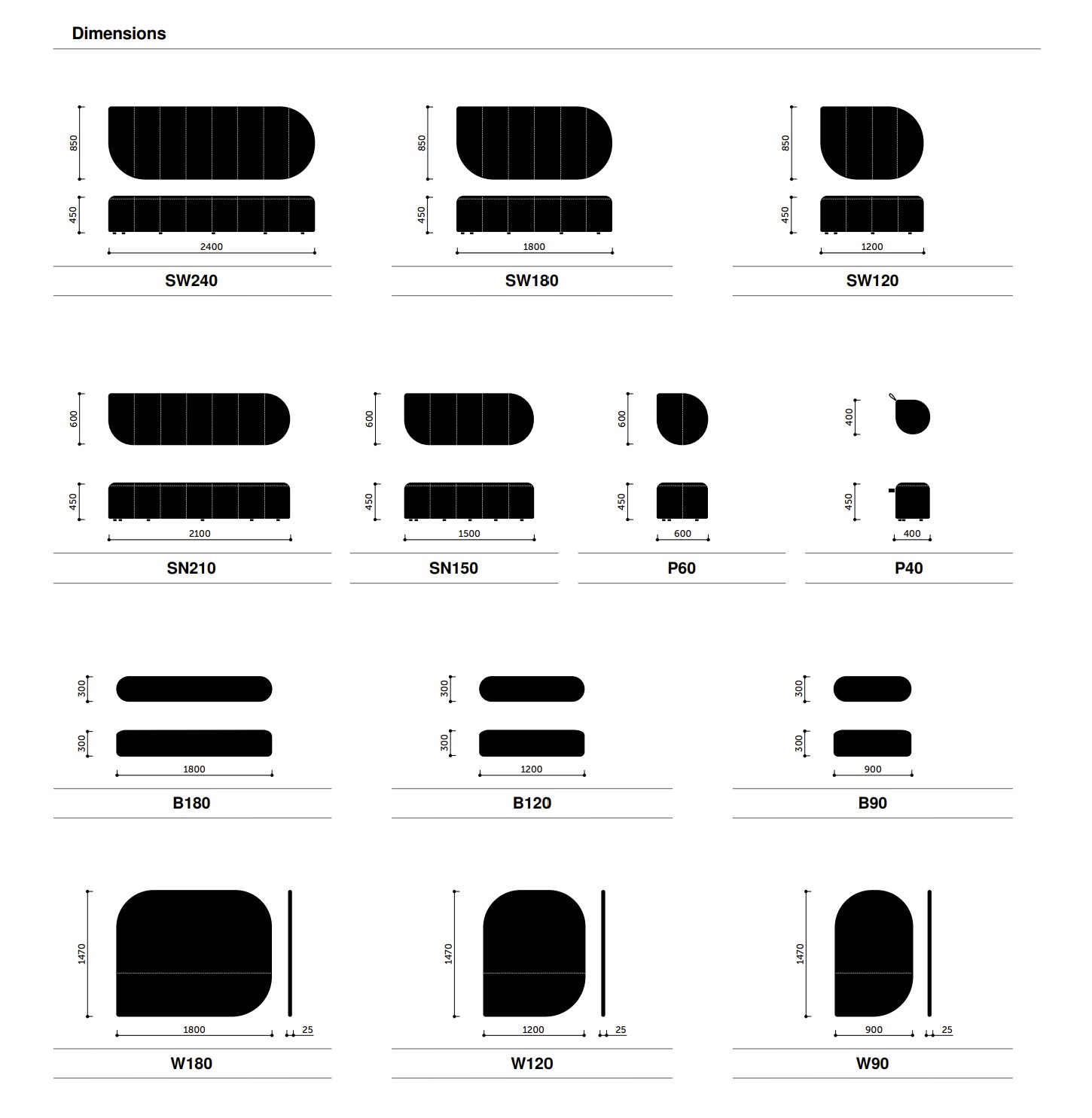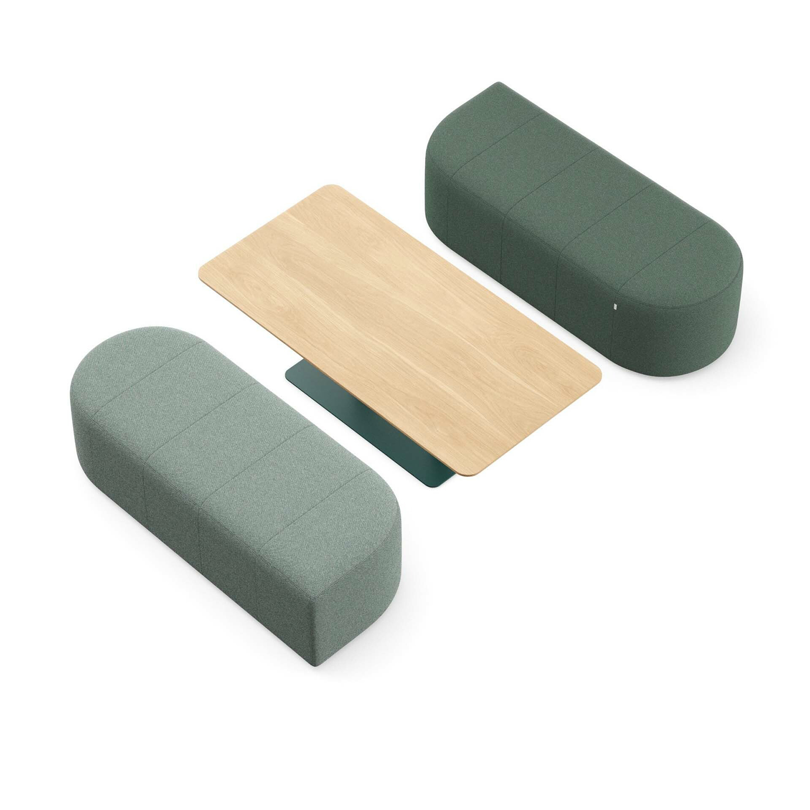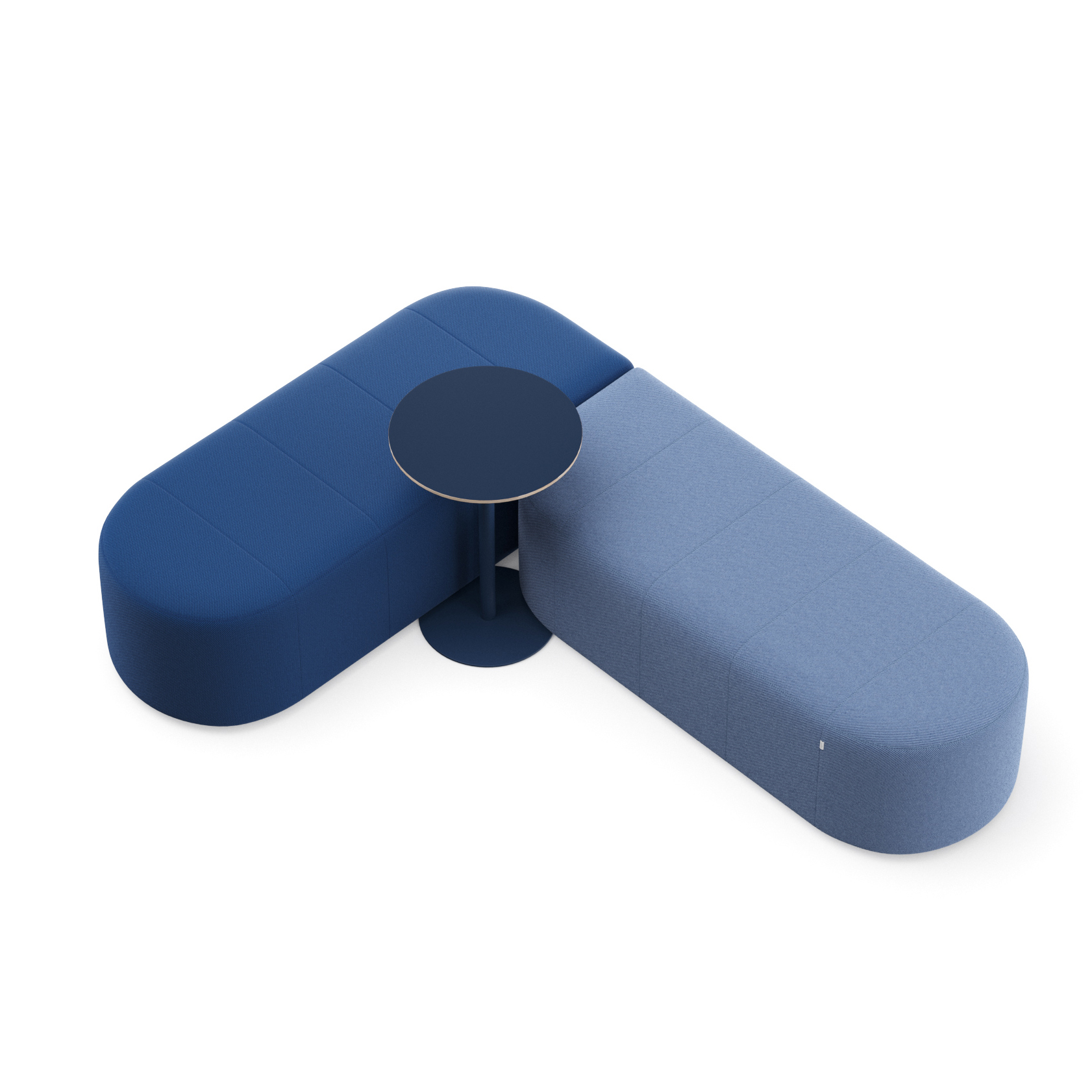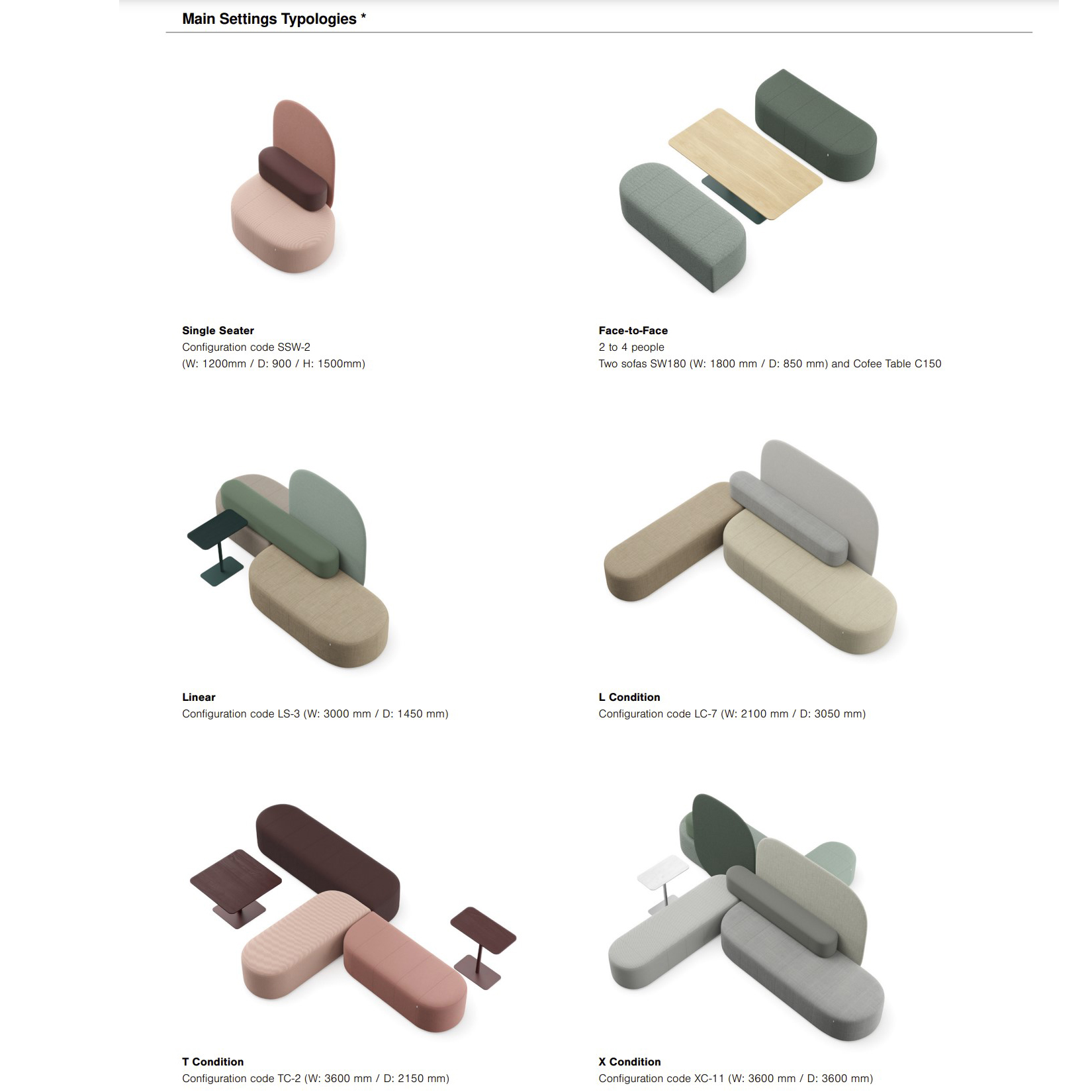 Revo-familien inkluderer sofaer, benker, skjermer, puffer og bord i myke, organiske former.