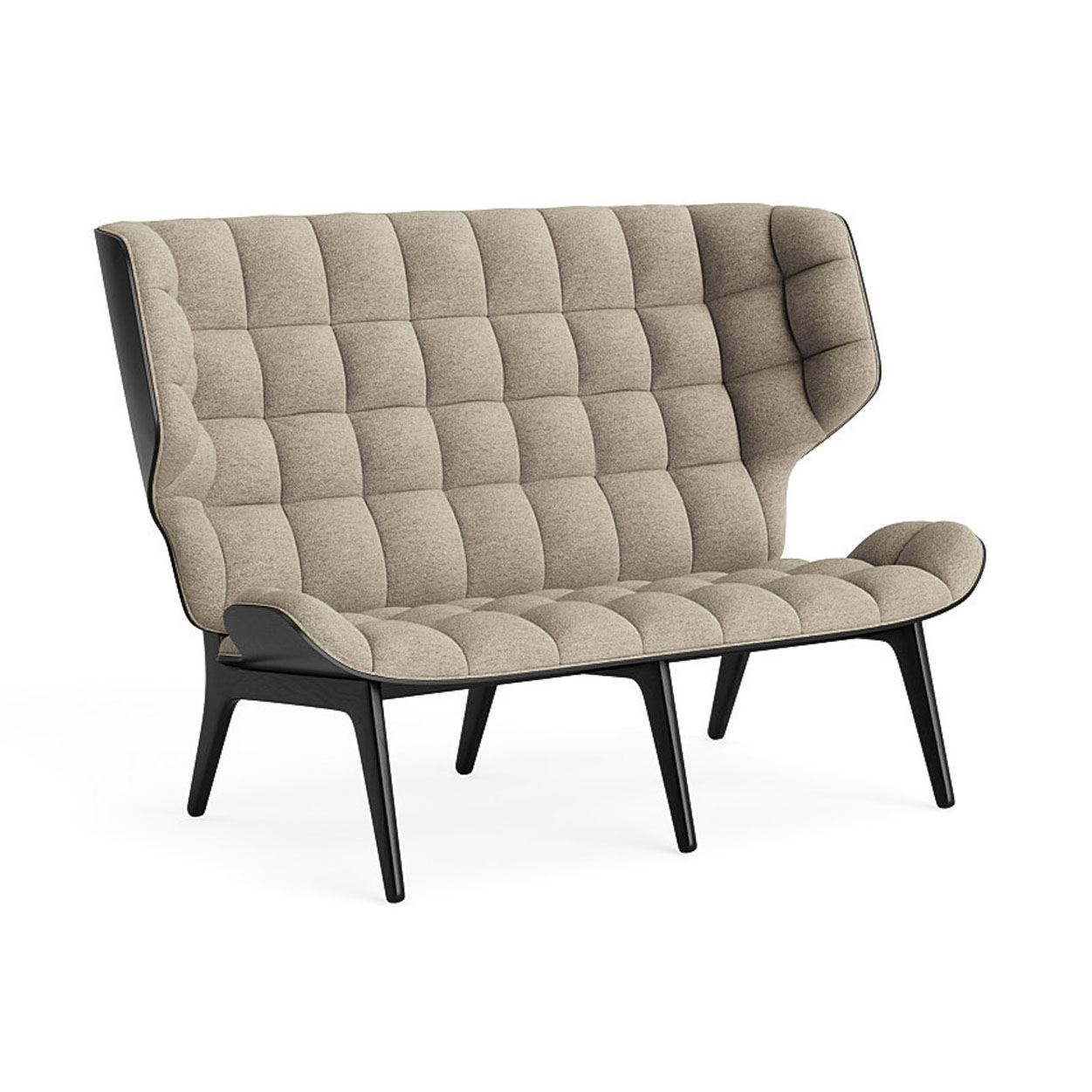 Mammoth Sofa kjennetegnes av den høye ryggen med vinger og myke møbeltrekk som gir overlegen komfort og en følelse av privatliv. Setet og ryggen er formet av samme kompresjonsform, noe som gir sofaen dens signatur og rene, minimalistiske utseende.