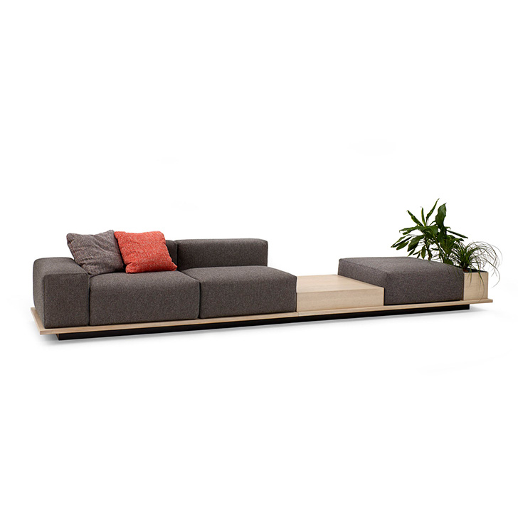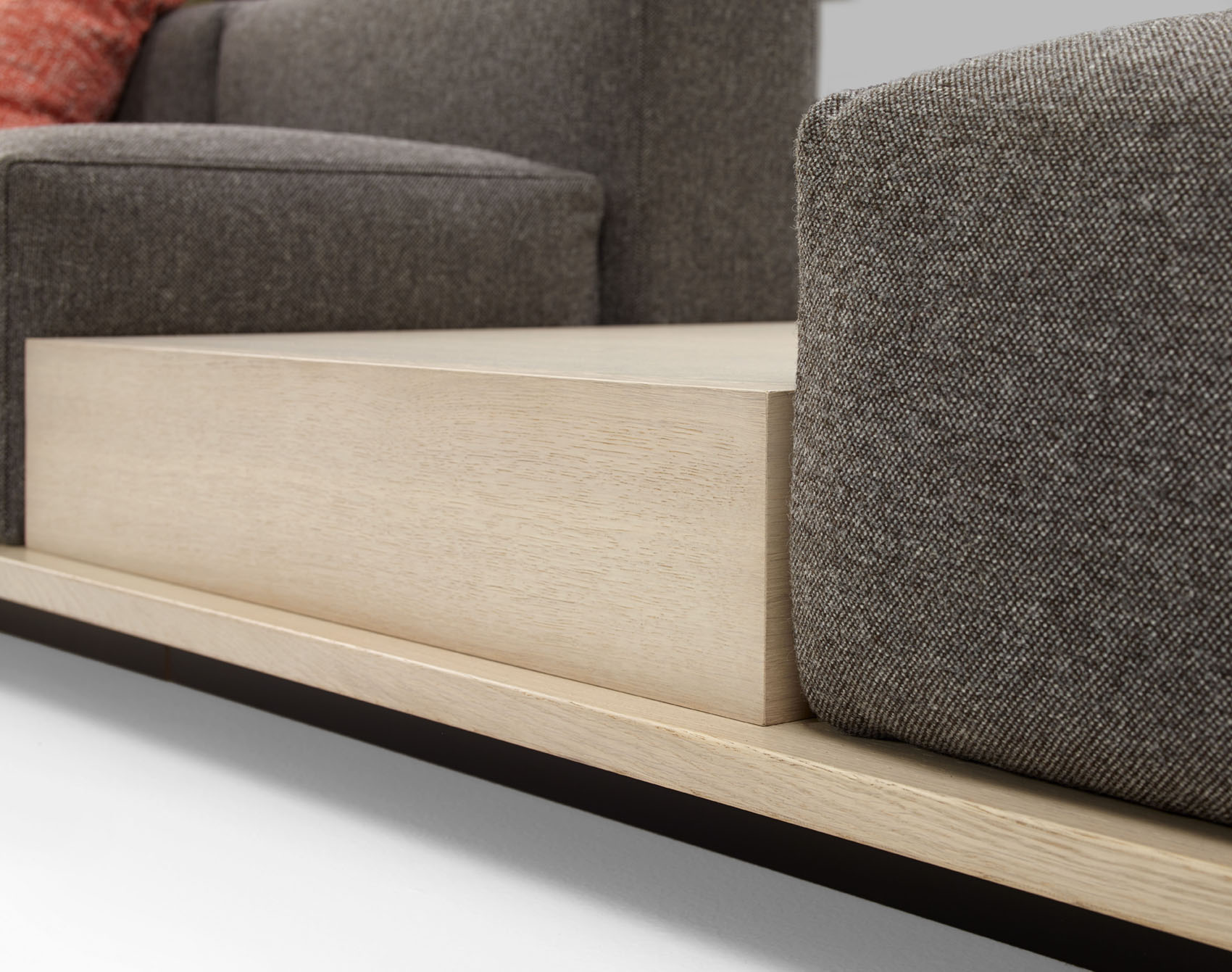 Uansett om du befinner deg i et møterom eller i et hverdagsrom behøver ikke innredningen være spesialtilpasset en type aktivitet. Det har dagens teknologi sørget for. Tanken bak Meet var å skape en sofa som gir deg følelsen av at du befinner deg hvor som helst, som et behagelig sentrum med alle funksjoner tilgjengelig for å kunne jobbe, holde møter og for å koble av. Meet er skapt for nettopp dette og møblets myke komfort som hviler på en stødig plattform er resultatet av et samarbeid mellom OFFECCT og den italienske studioet Fattorini+Rizzini+Partners. Meet kan settes sammen etter eget ønske ut ifra ulike moduler, med ulike egenskaper. Helkledd sofa med plattform i hvitpigmentert eik og sort sokkel i MDF. Velg blant mange standard tekstil og skinn kvaliteter. Sofaen kan også leveres iht. NORSOK-standard.