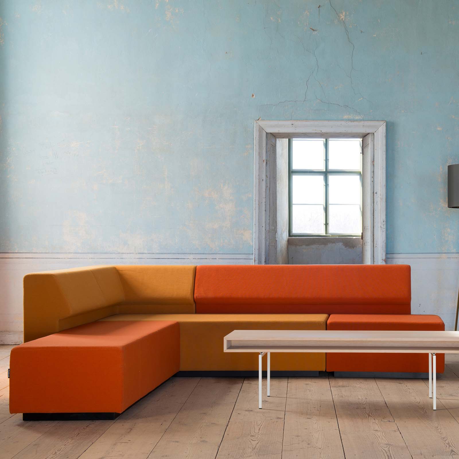 Modulsofa med tusenvis av muligheter. Tar utgangspunkt i en sitteseksjon utstyrt med det unike og komfortable CSS-setesystemet og en mulighet til å sitte fra alle fire sider på grunn av det flate setet. Dette er starten på et system med sokkel eller ben i to ulike høyder, dvs. en setehøyde på 400 eller 450 mm. Deep Lounge-rygg som festes på setet. Mange størrelser og former på moduler og hyller.