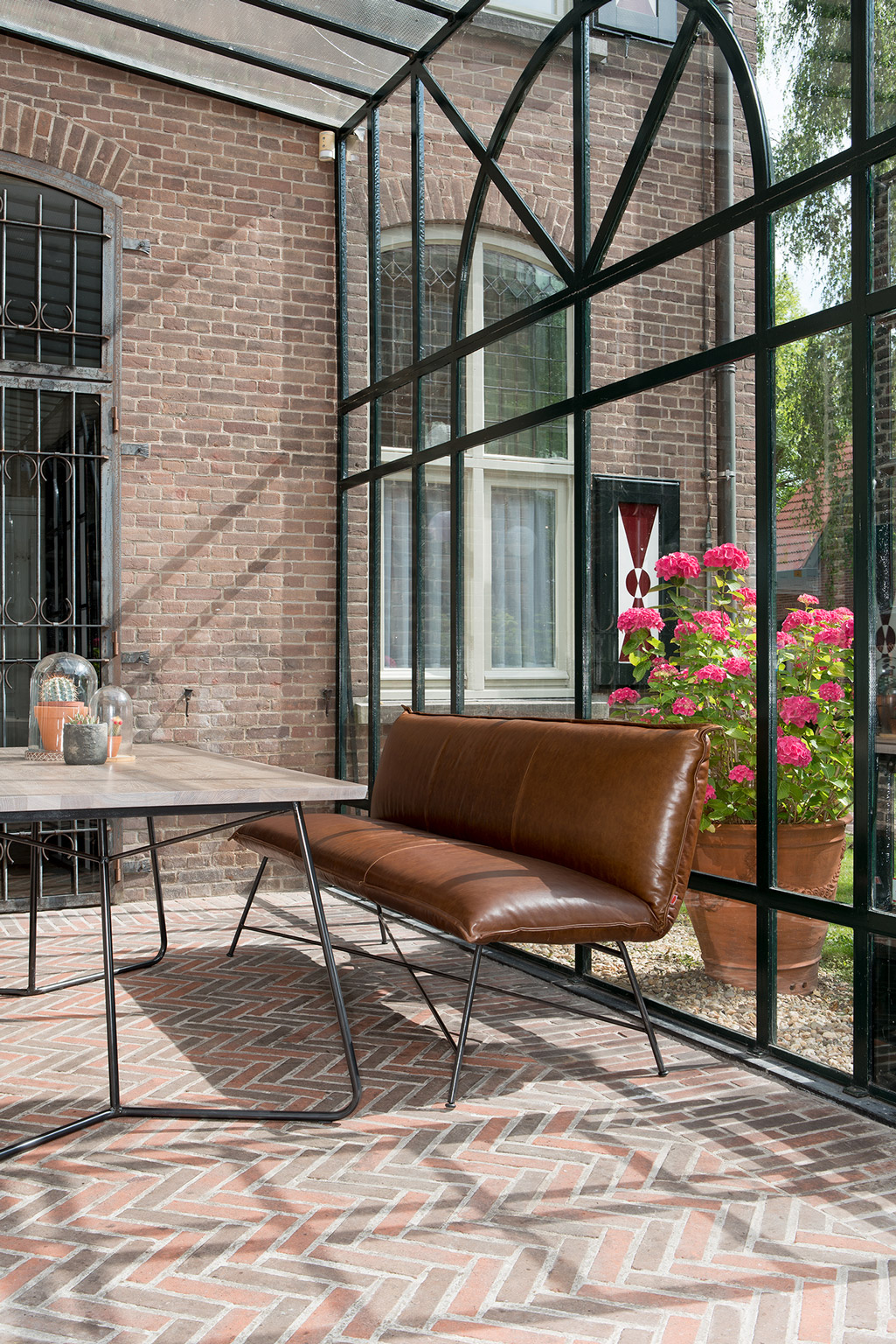 Vidar spisesofa fås i 2 lengder; 135cm og 195cm og leveres med Old glory stålunderstell.