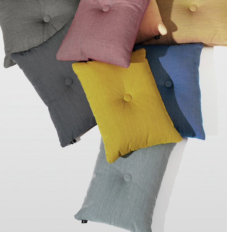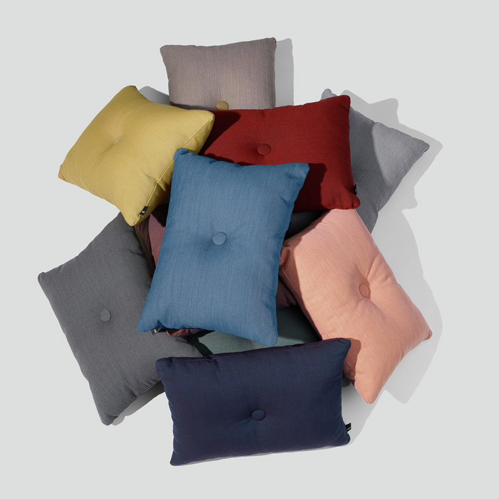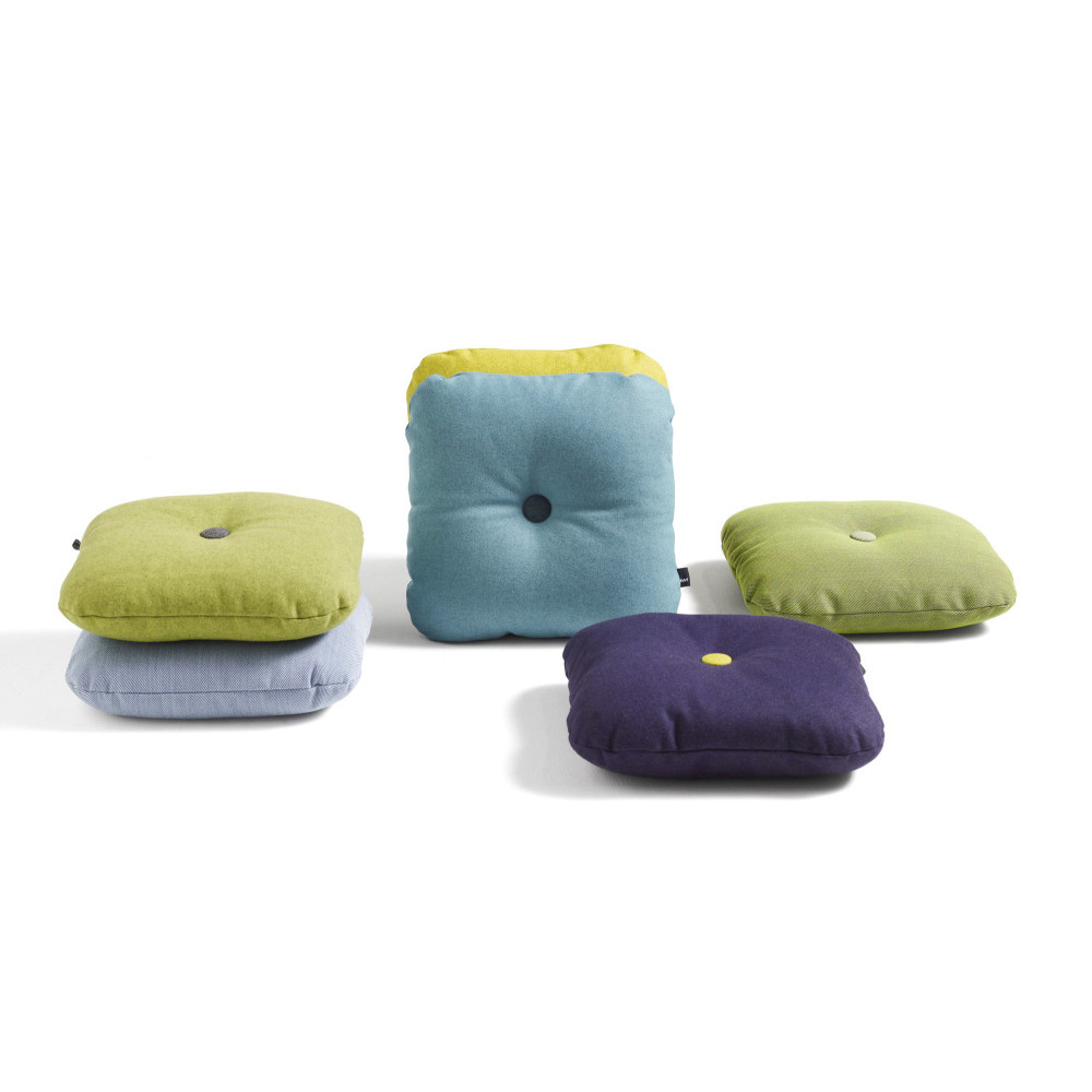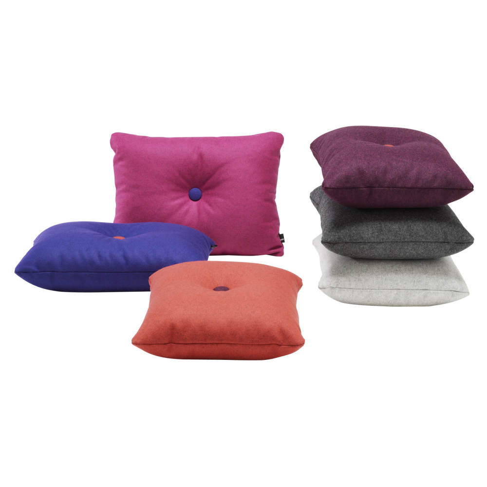 Dot Cushion har blitt et gjenkjennelig pute ikon for HAY. Puten er polstret i ull av høy kvalitet med kontrastkledde knapper i forskjellige farger på forsiden og baksiden