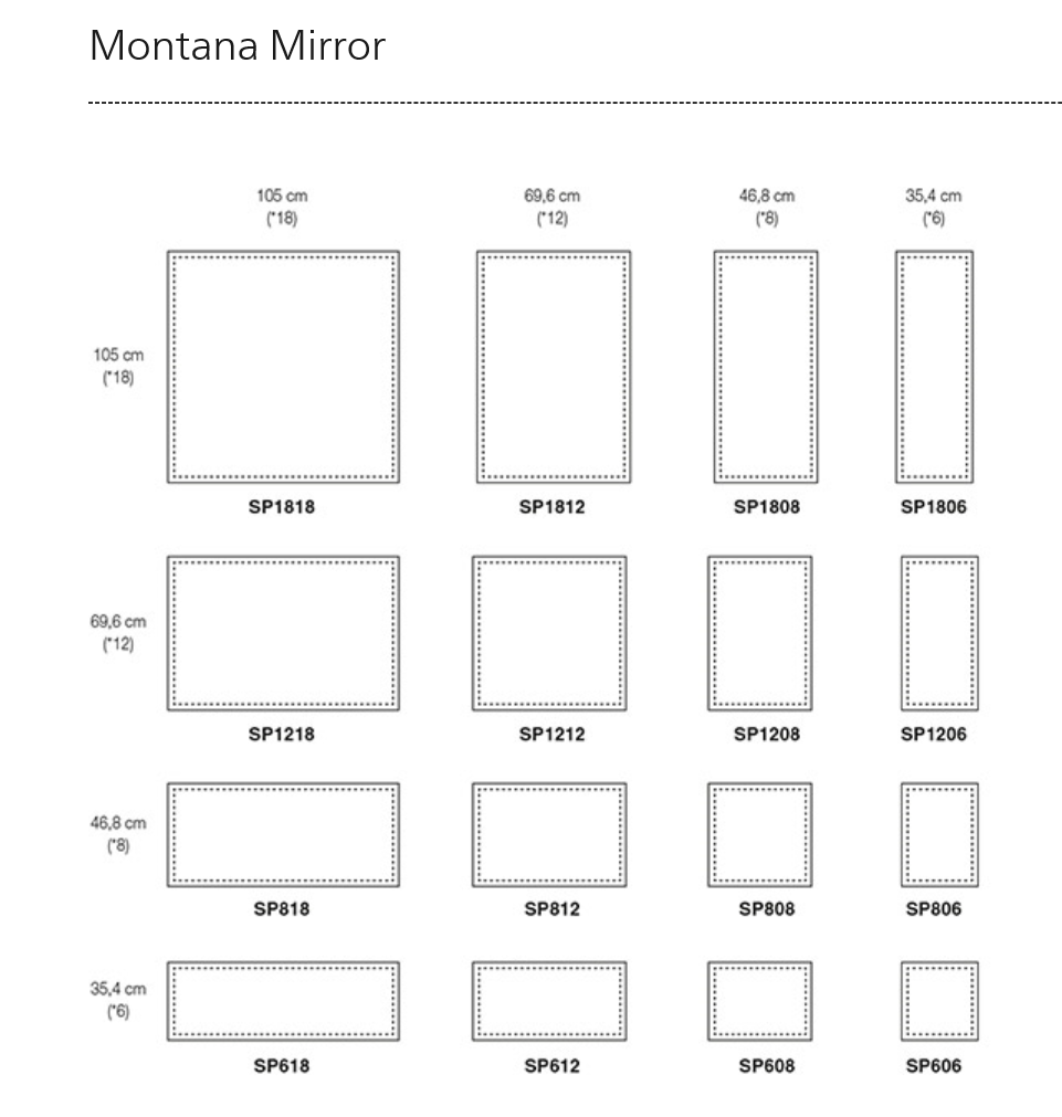 Dekorative og stilrene Montana Mirror passer like godt i sammenheng med Montana reolsystem, som alene. Speilet er av 4 mm sølvglass-speil på 12 mm MDF plate med en ramme på 12 mm. Leveres inkl. skuer for oppheng. Fås i alle 42 standard lakkfarger.