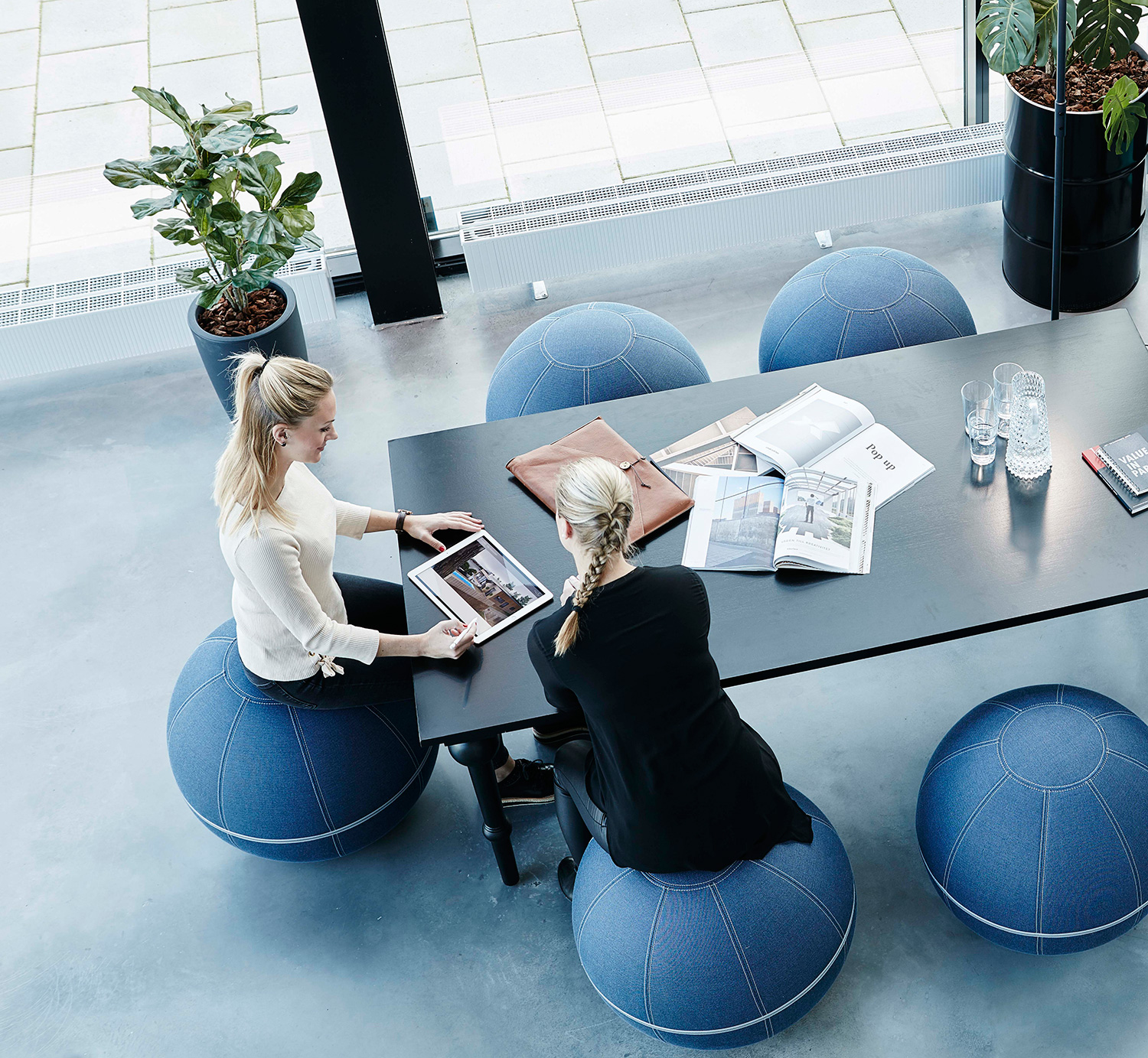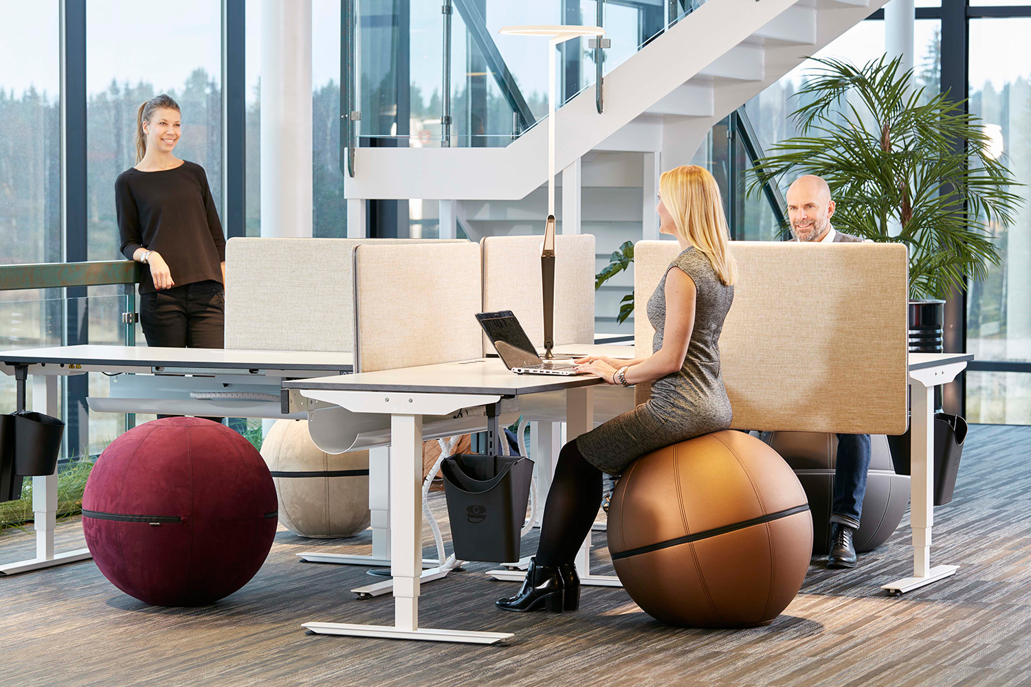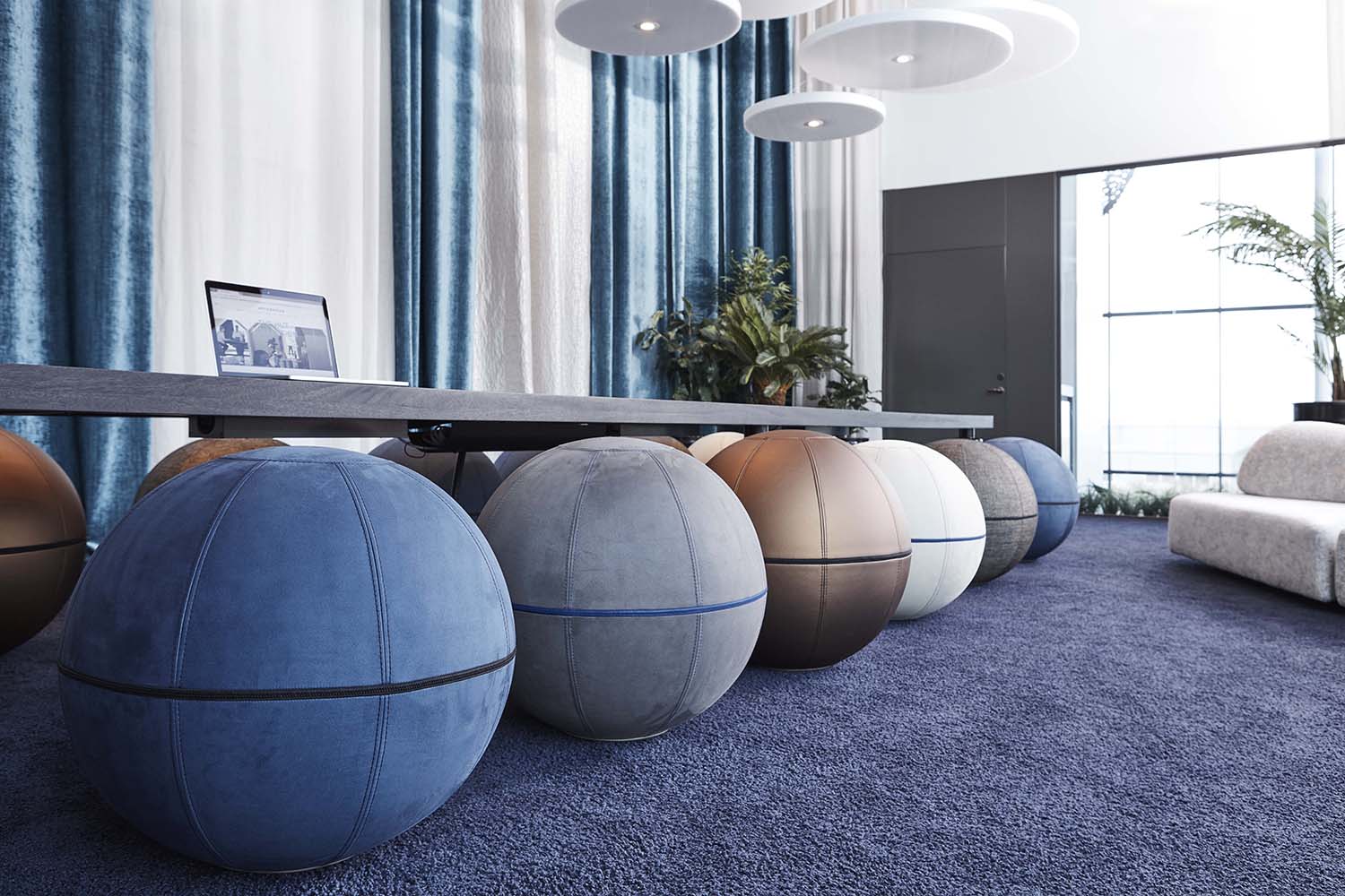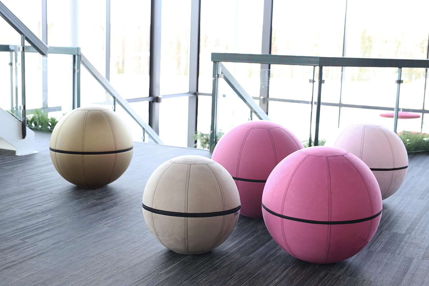 Office Ballz er et ergonomisk sittemøbel med innebygd pilatesball som gjør at man må balansere for å sitte rett, og på den måten trener og styrker man deler av rygg, bak og ben samt at man får en bedre holdning. Ballen fås i to ulike størrelser med mange valg av tekstil-typer og glidelås-farger. Sømmene blir som glidelåsen. Ballen har en forsterket bunn og en metallplate for stabilitet. Pumpe medfølger.
