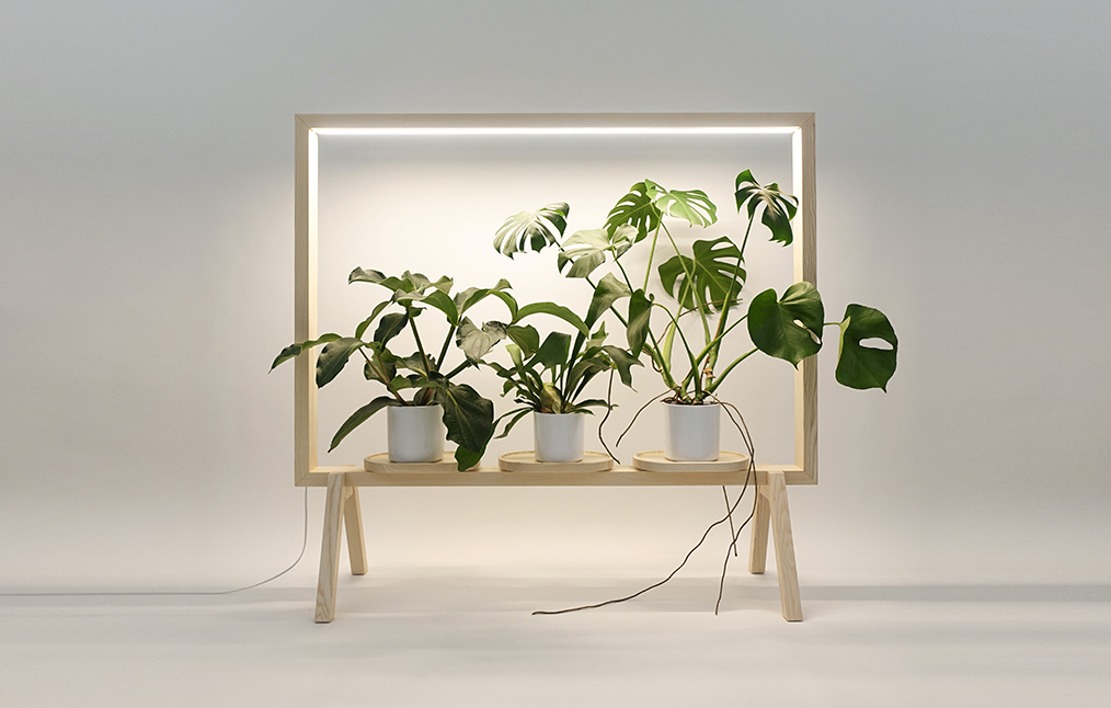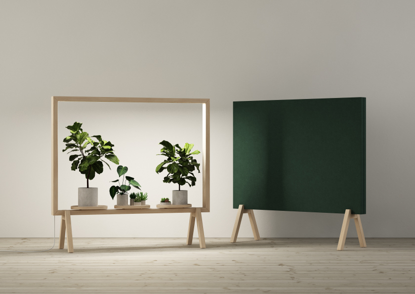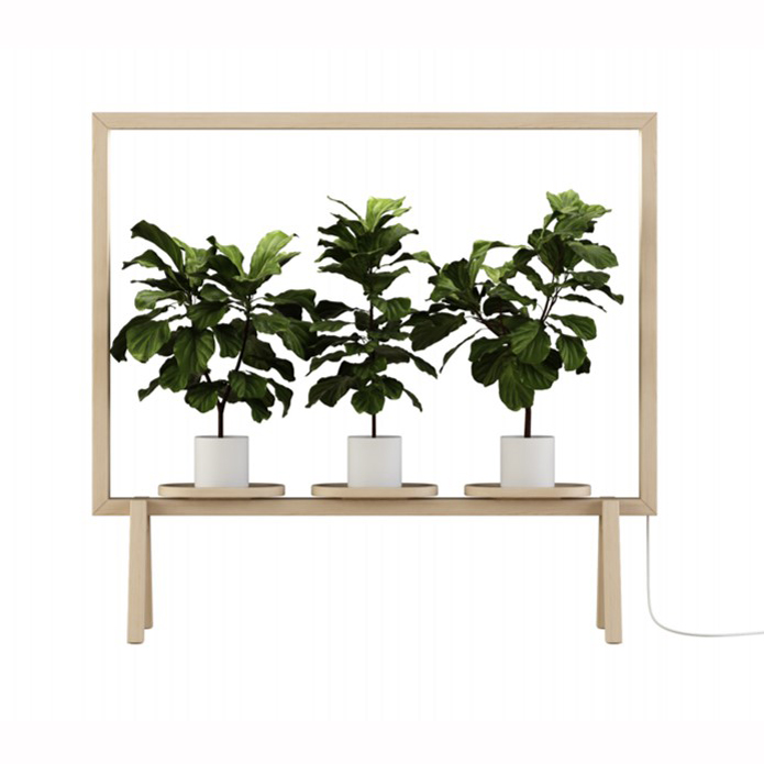 Green Frame er en gulvskjerm med belysning som gir planter en fremtredende rolle i interiøret, også der hvor dagslyset kanskje ikke er tilstrekkelig. Green Frame bidrar til bedre innendørsklima, triveligere arbeidsplasser og lykkeligere planter.