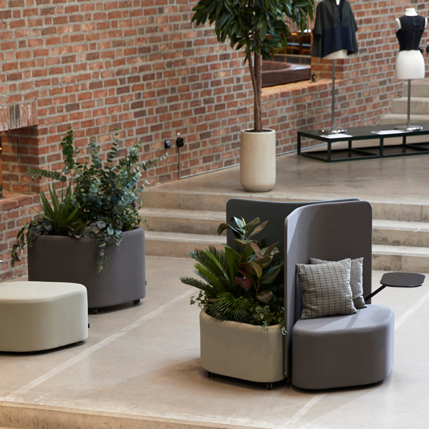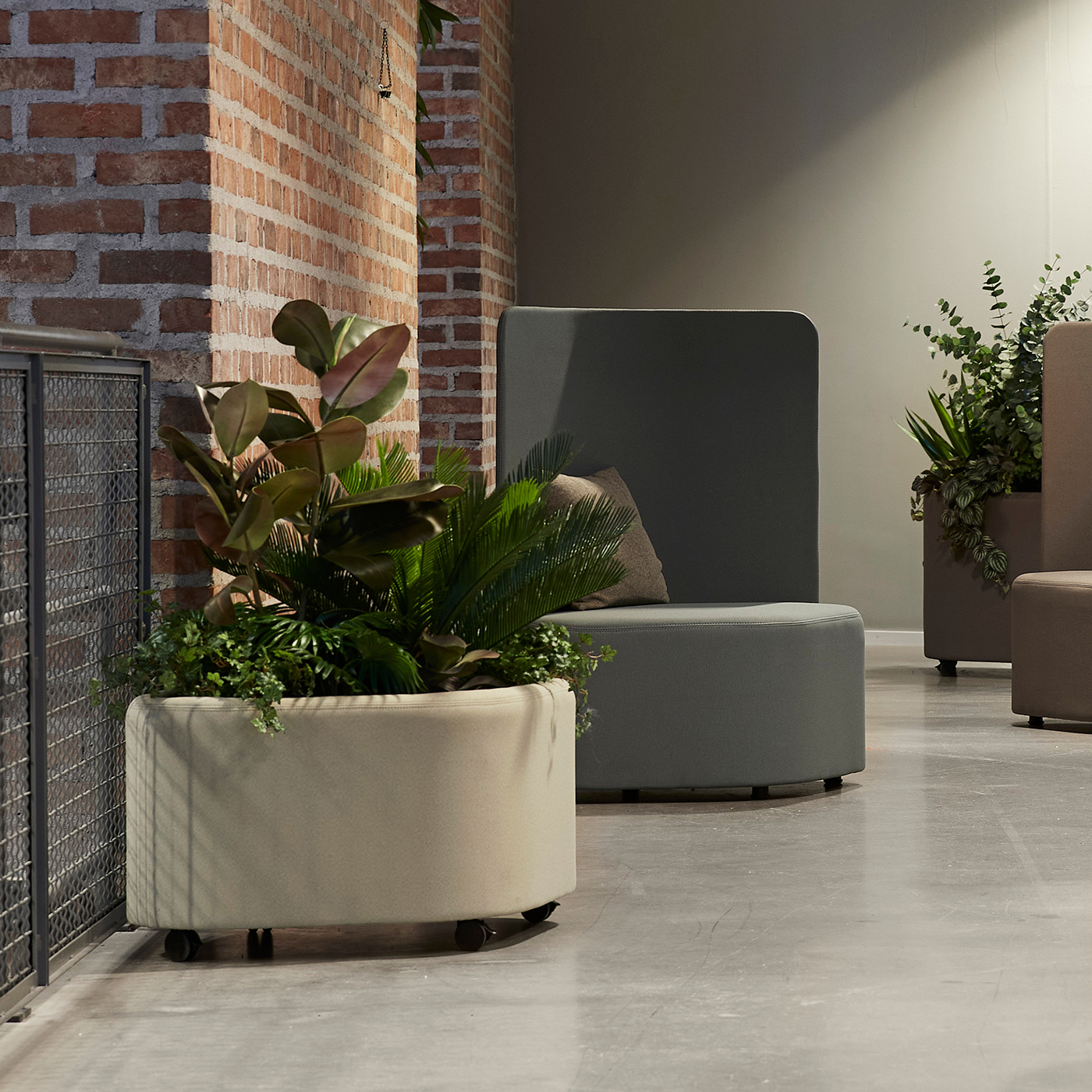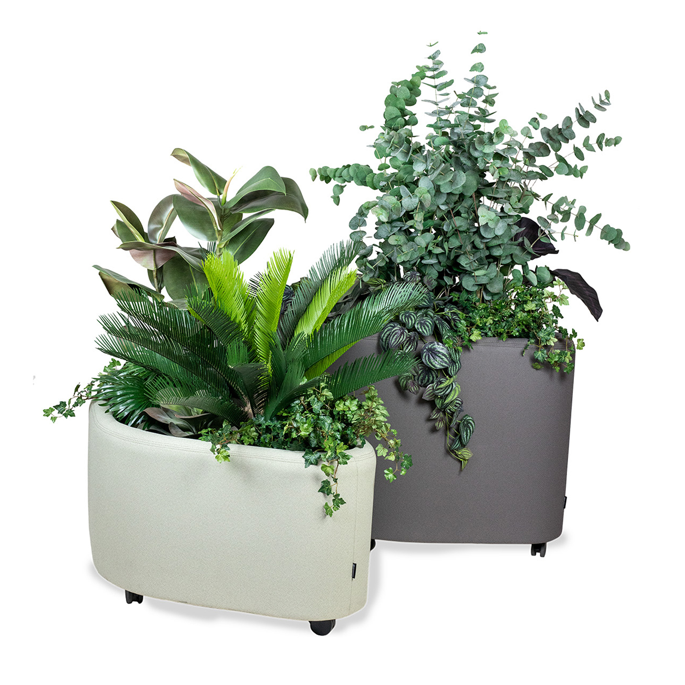 Rombo Planter er en tekstilkledd puff som kombineres med planter. Den fås i to forskjellige høyder som gjør det enkelt å skape pene arrangement. Innergryte medfølger. Tilgjengelig med hjul eller justerbare føtter.