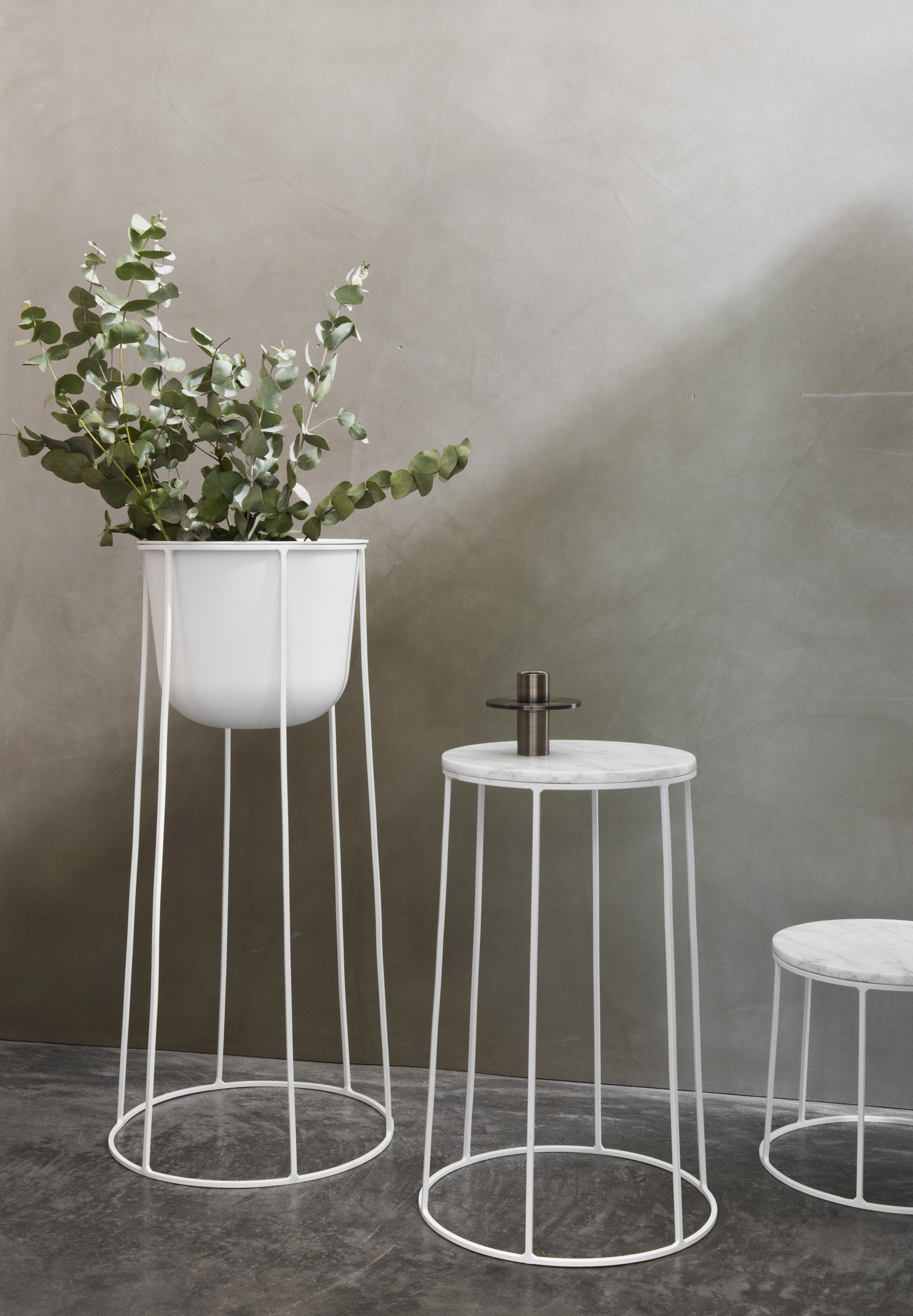 Til Wire base kan man velge tilhørende blomsterpotte eller bordplate.
