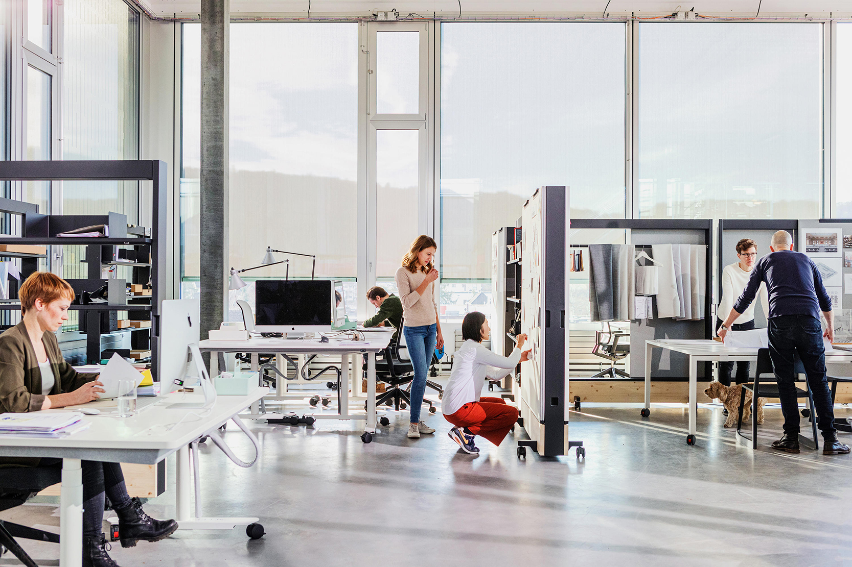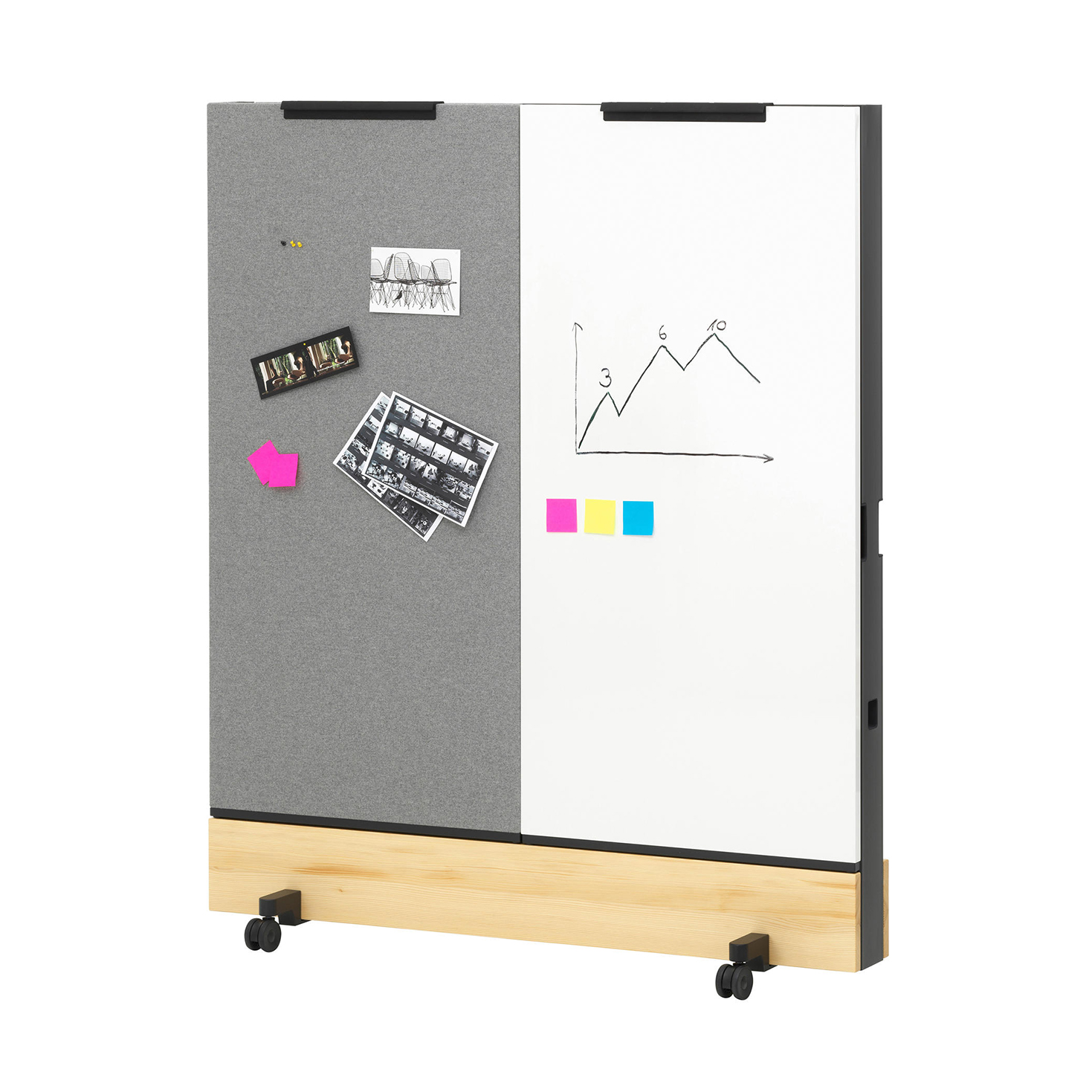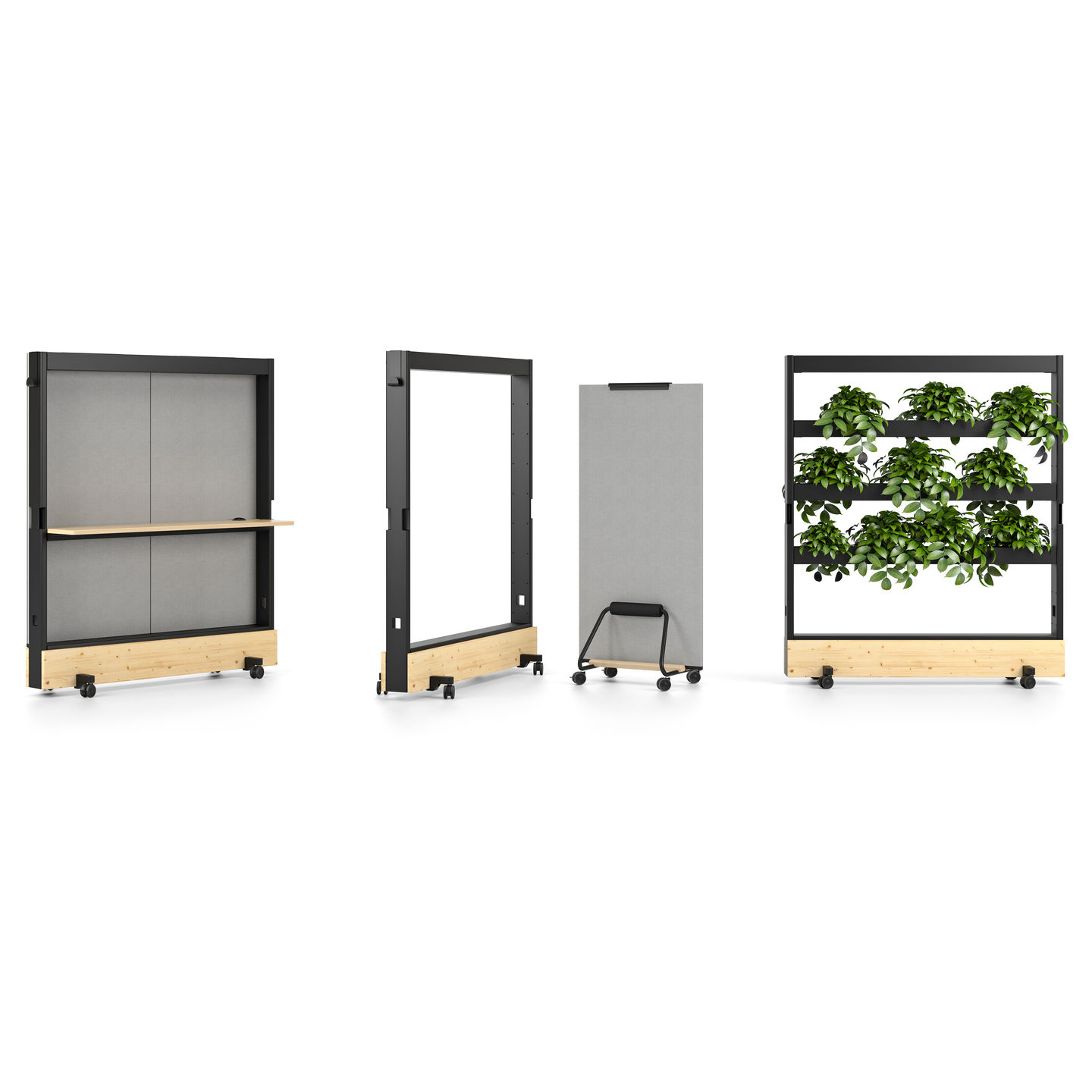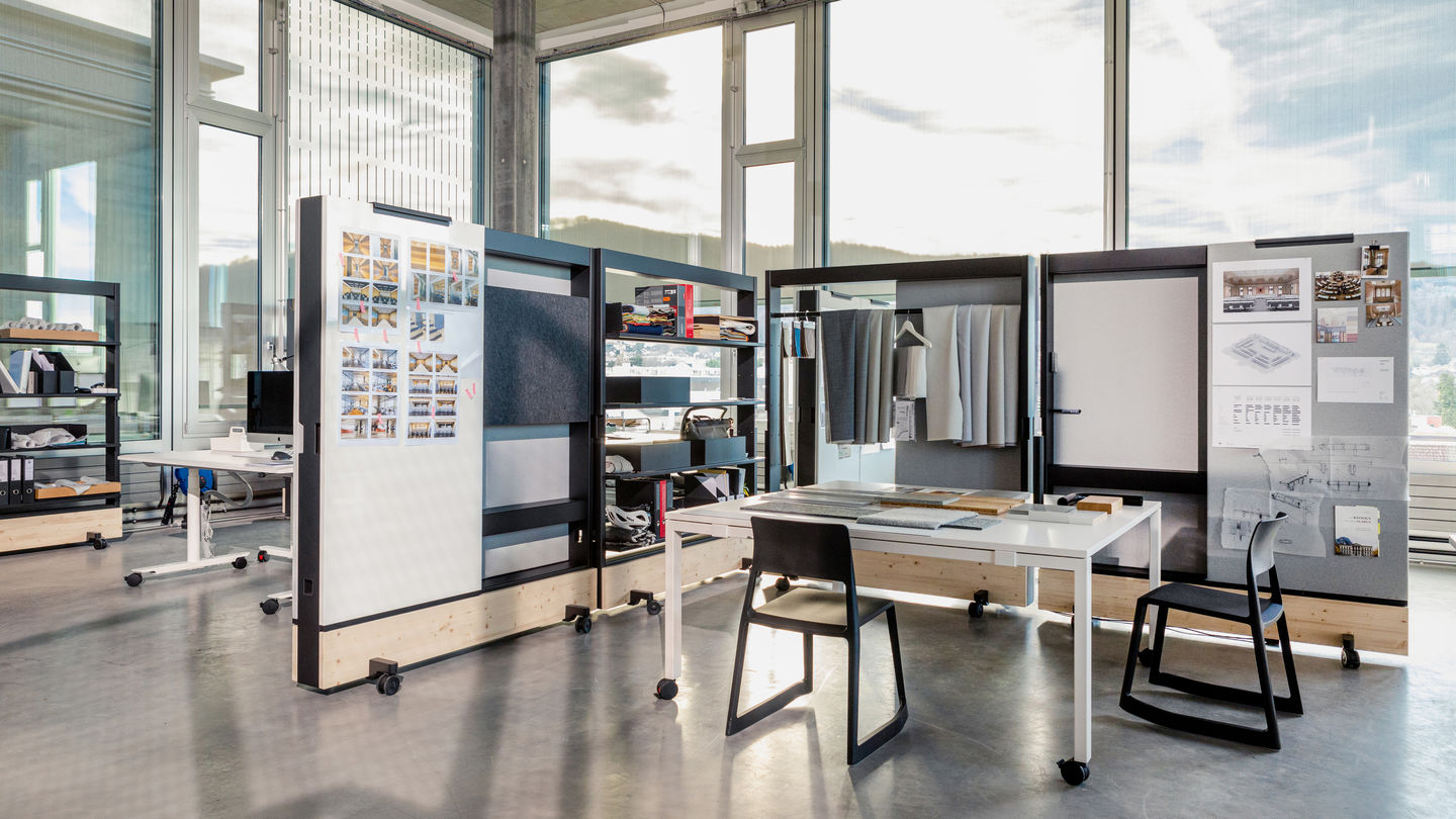 Den grunnleggende funksjonen til Dancing Wall er en mobil skillevegg som kan brukes til å fleksibelt dele kontorer inn i soner, samtidig som det gir vertikal og horisontal arbeidsplass.