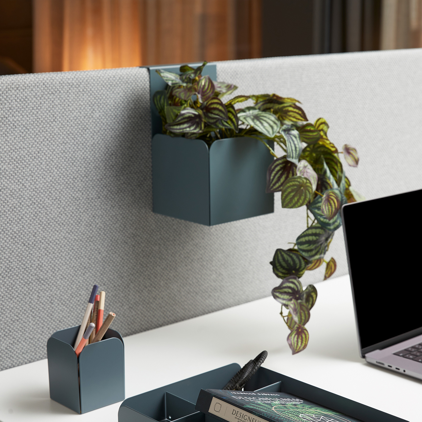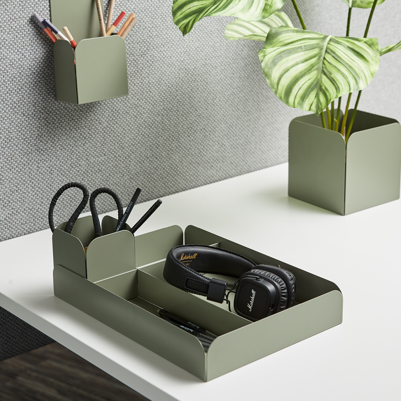 Skuff+ i lakkert metall for oppbevaring av kontorrekvisita på skrivebordet. Brukes alene eller sammen med skillevegger og blyantstativ i samme serie. Tilgjengelig i de matte fargene grønn, blå, svart eller hvit.