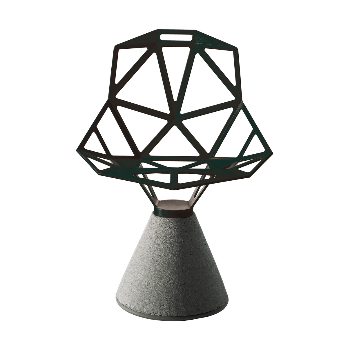 Stol med sete i støpt aluminium – titanbehandlet og polyesterlakkert. Fot i klarlakkert betong.