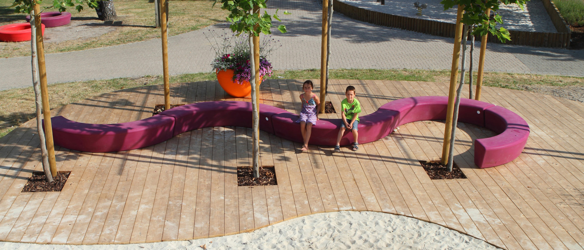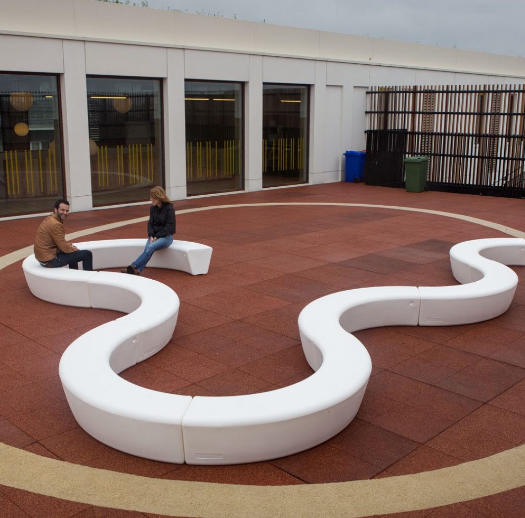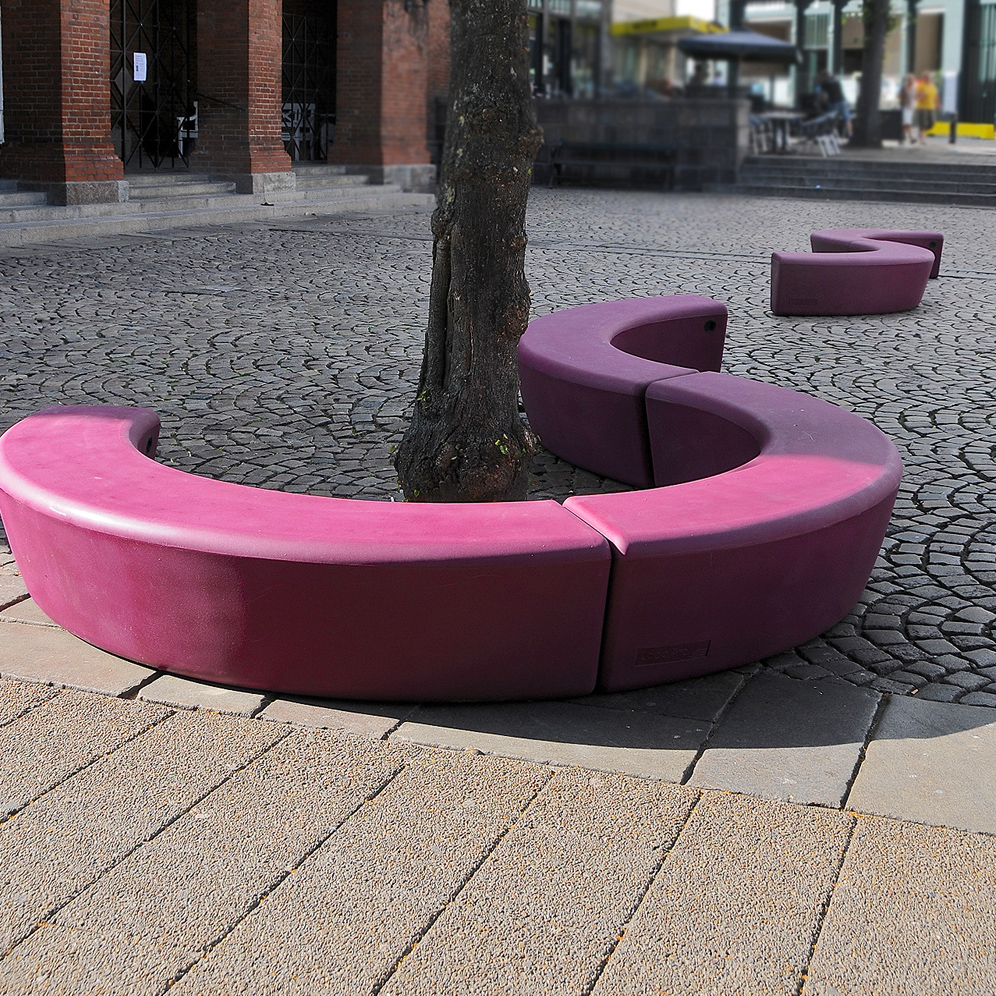 Sitte- og samværsmodul med mange anvendelses og plasseringsmuligheter. Rundt et tre, som sandkasse, eller som buet eller rund benk. Modulene kobles sammen med beslag under. Ved bruk av tre moduler kan man lage rund benk med Ø 270 cm. Fylles med sand for mer vekt utendørs, innendørs kan man bruke vann eller monteringsbeslag. Kan brukes sammen med Loop Line. Standard farger: Rød,limegrønn og oransje. Andre farger mot pristillegg.
